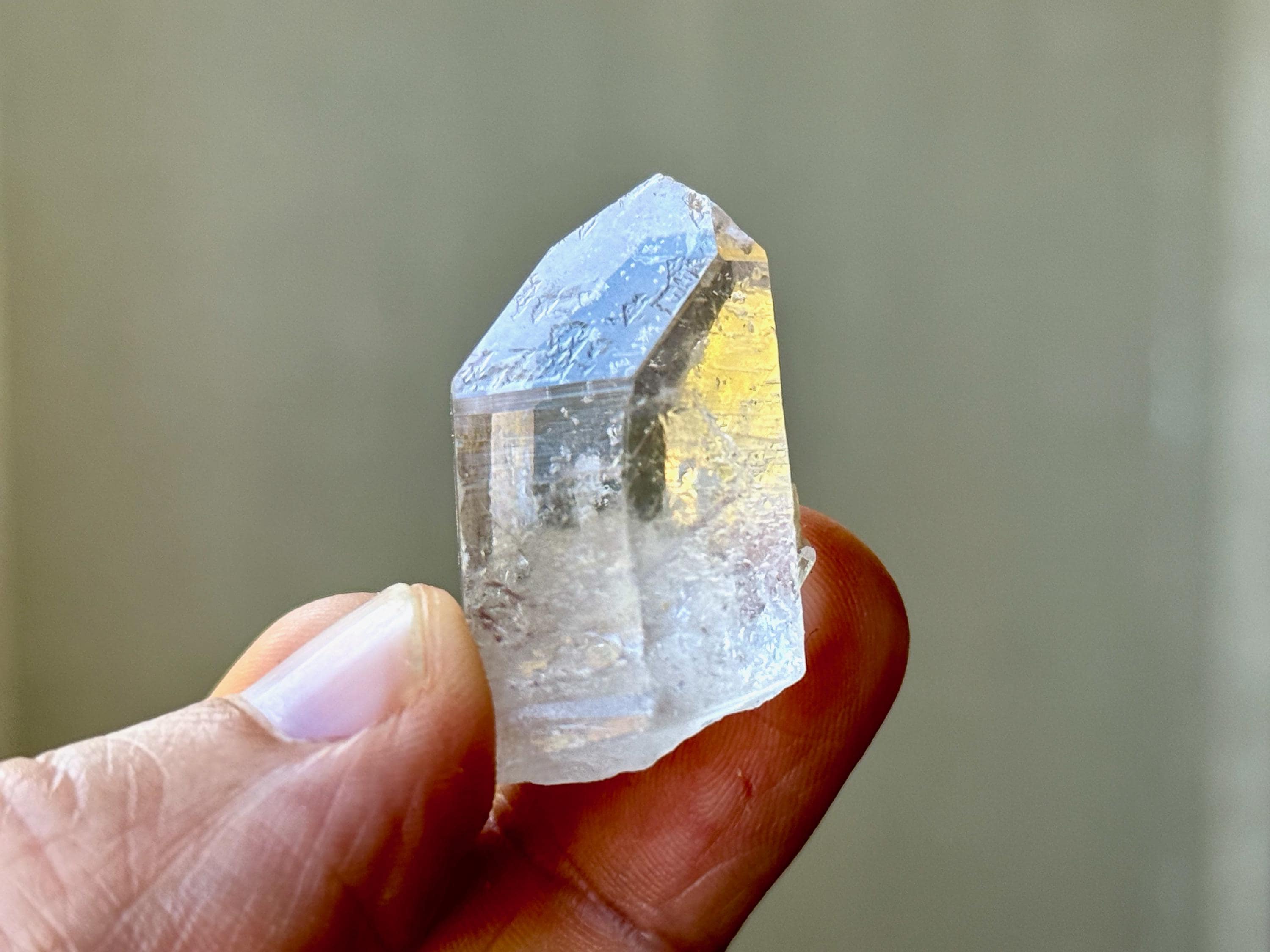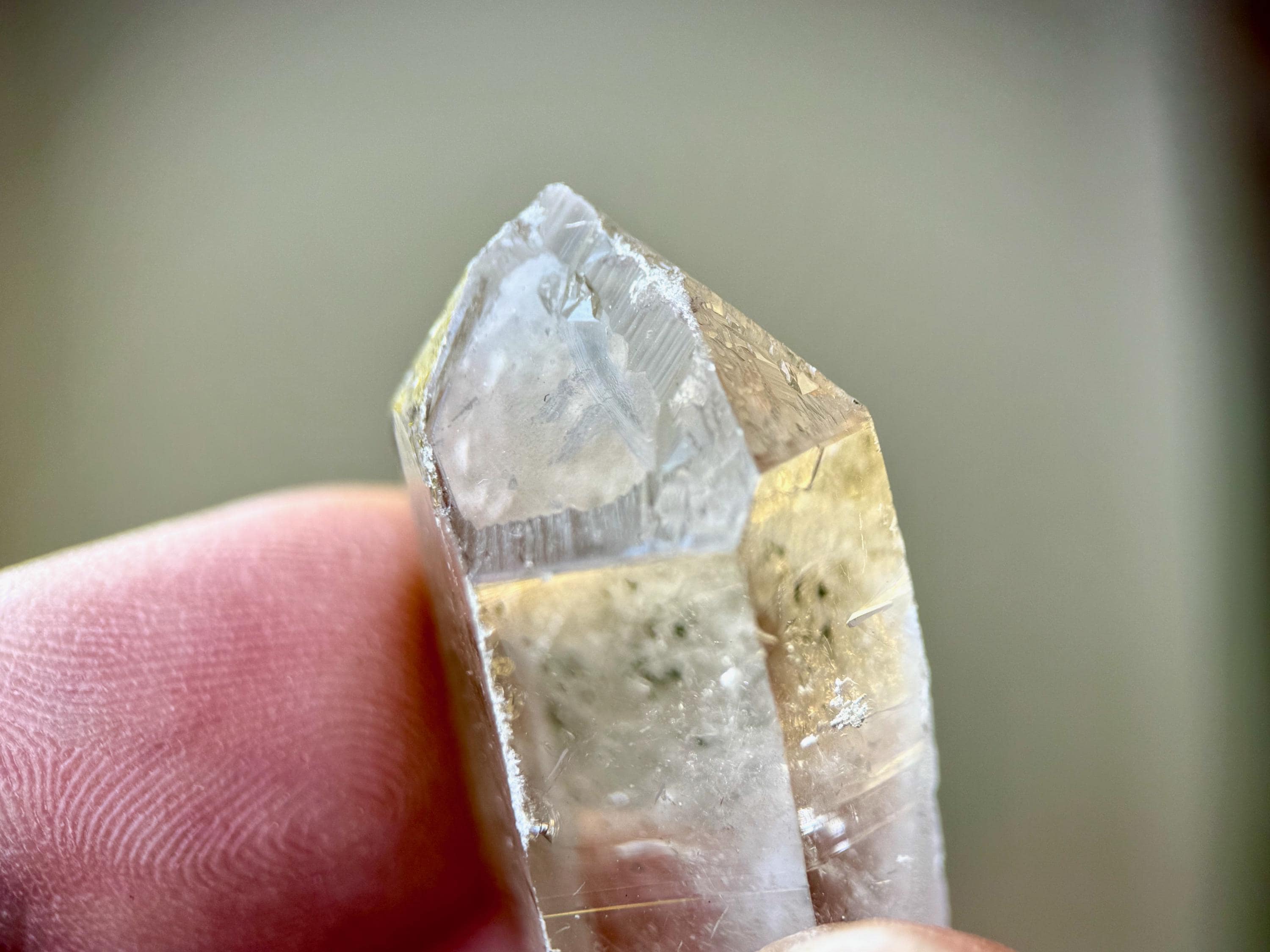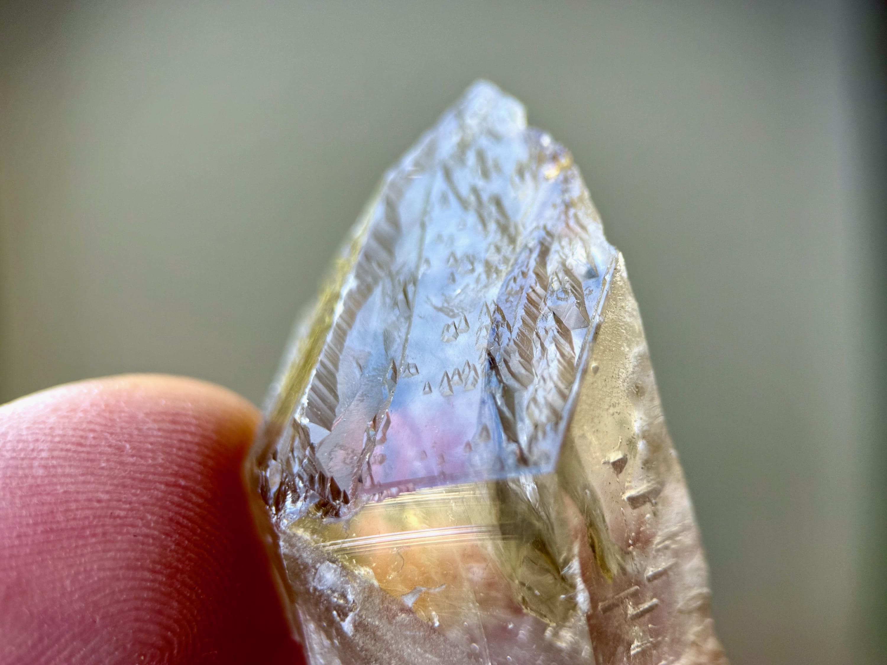 However, the special element to these are the multitude of etchings on the main facets. Some possess tiny "raised" Record Keepers. These natural, raised indications are very clearly defined but small in size and best appreciated with a jeweler's loupe or magnifying glass. We've included a few photos here with a macro lens to show them off.