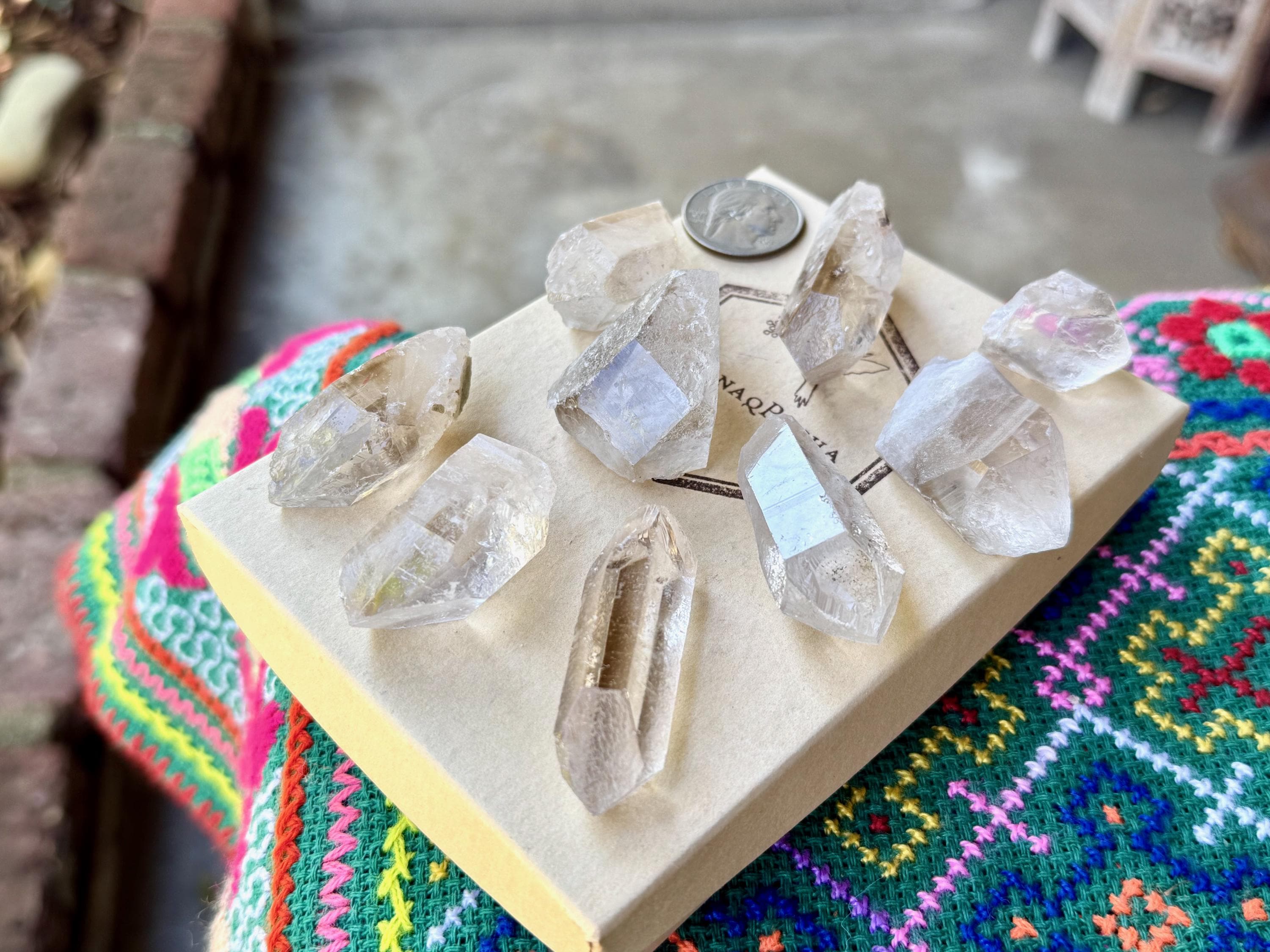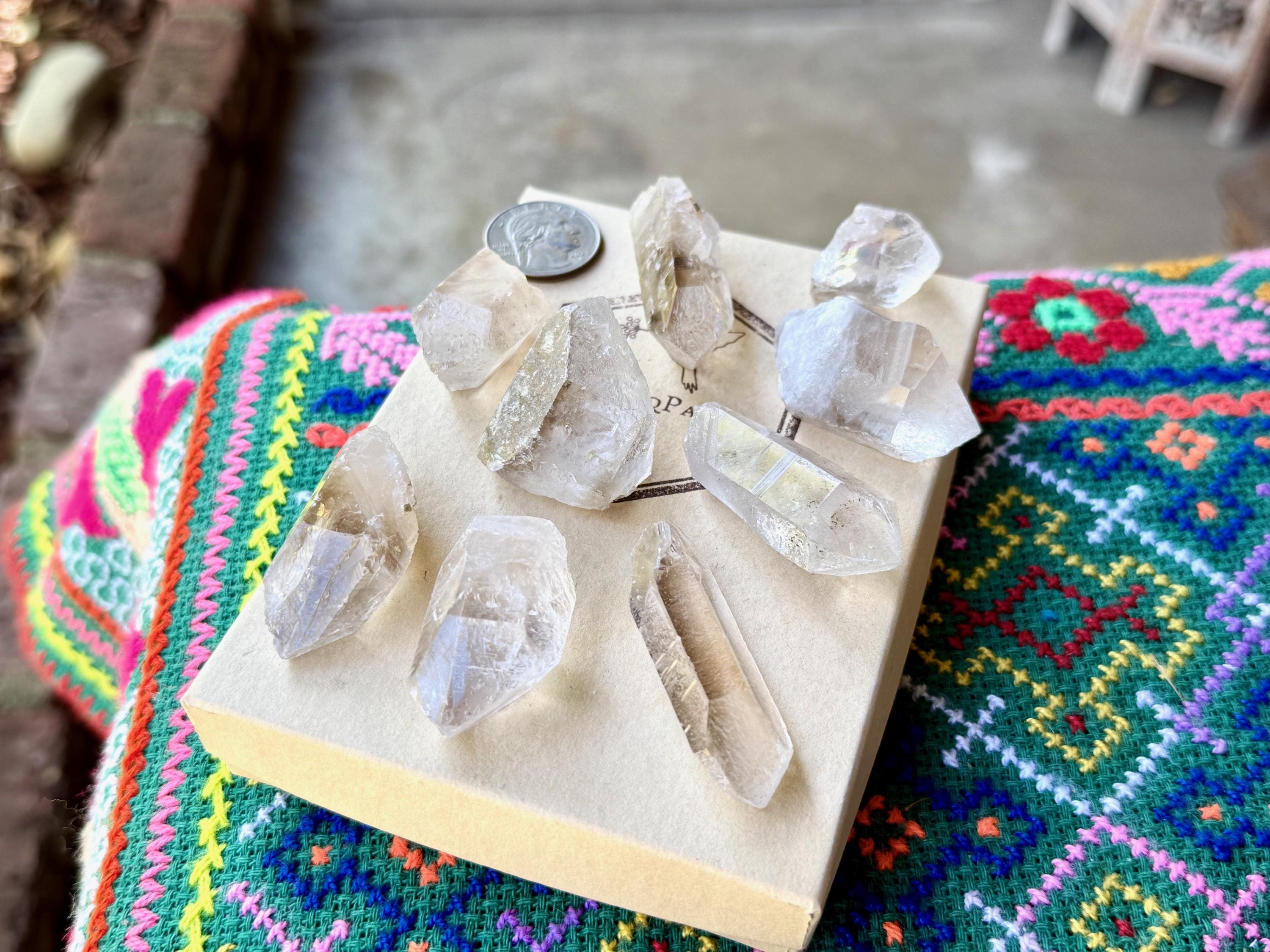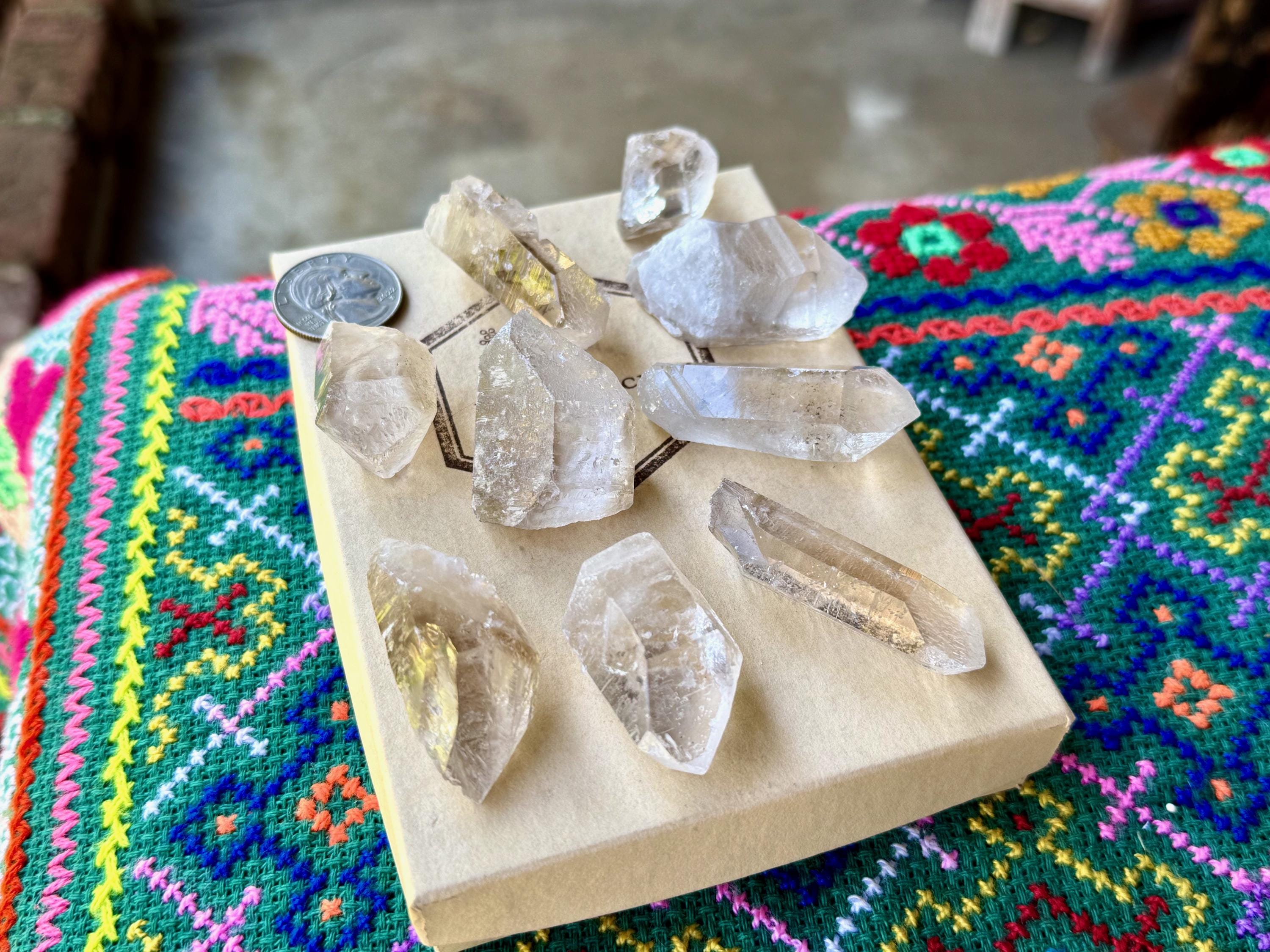 This lot of unique Golden Healer Starbrary Quartz crystals comes from a recent find in Corinto, Minas Gerais, Brazil. The crystals from this particular pocket are quite special in that they many feature unique etched facets which include all kinds of imprints like Record Keepers and other unique "coded" etchings.