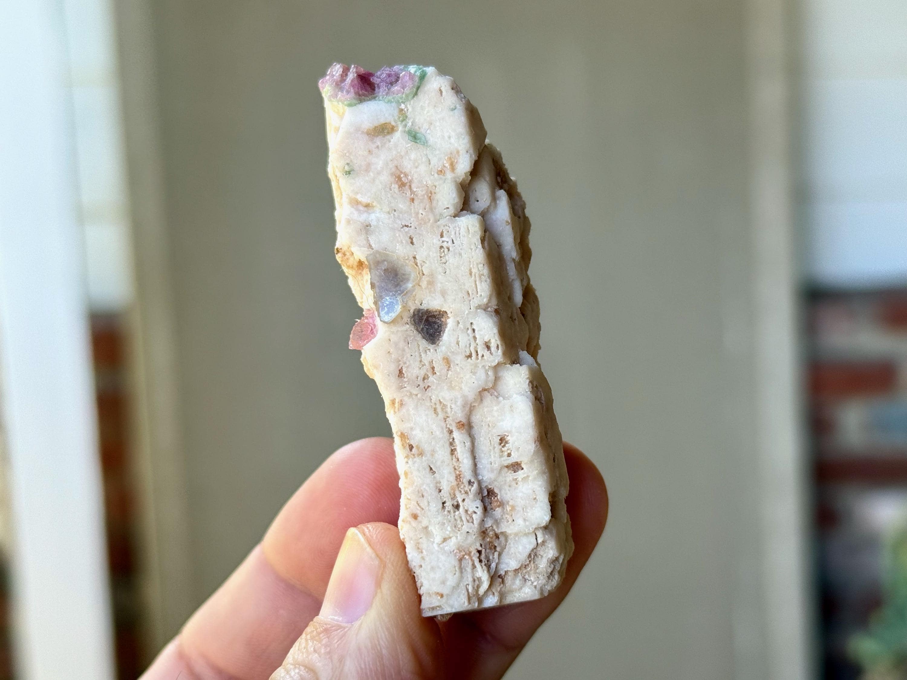 This unique Unicorn Stone with Feldspar and Pink Tourmaline comes from a recent find in the area of Coronel Murta, Minas Gerais, Brazil.