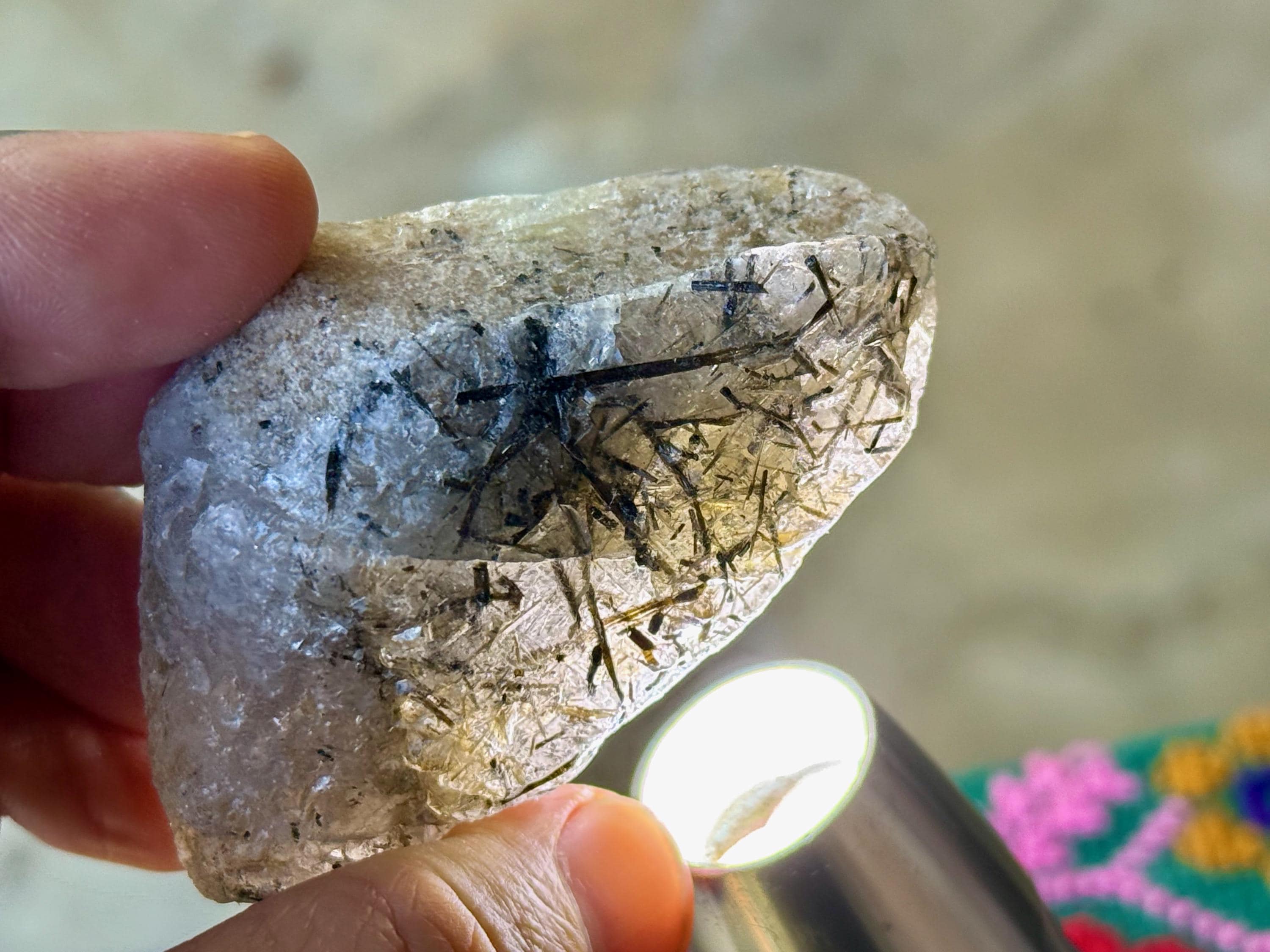 The whole piece has a lot of sparkle to it due to the gorgeous luster of the tourmalines. This piece is entirely intact and complete all around.