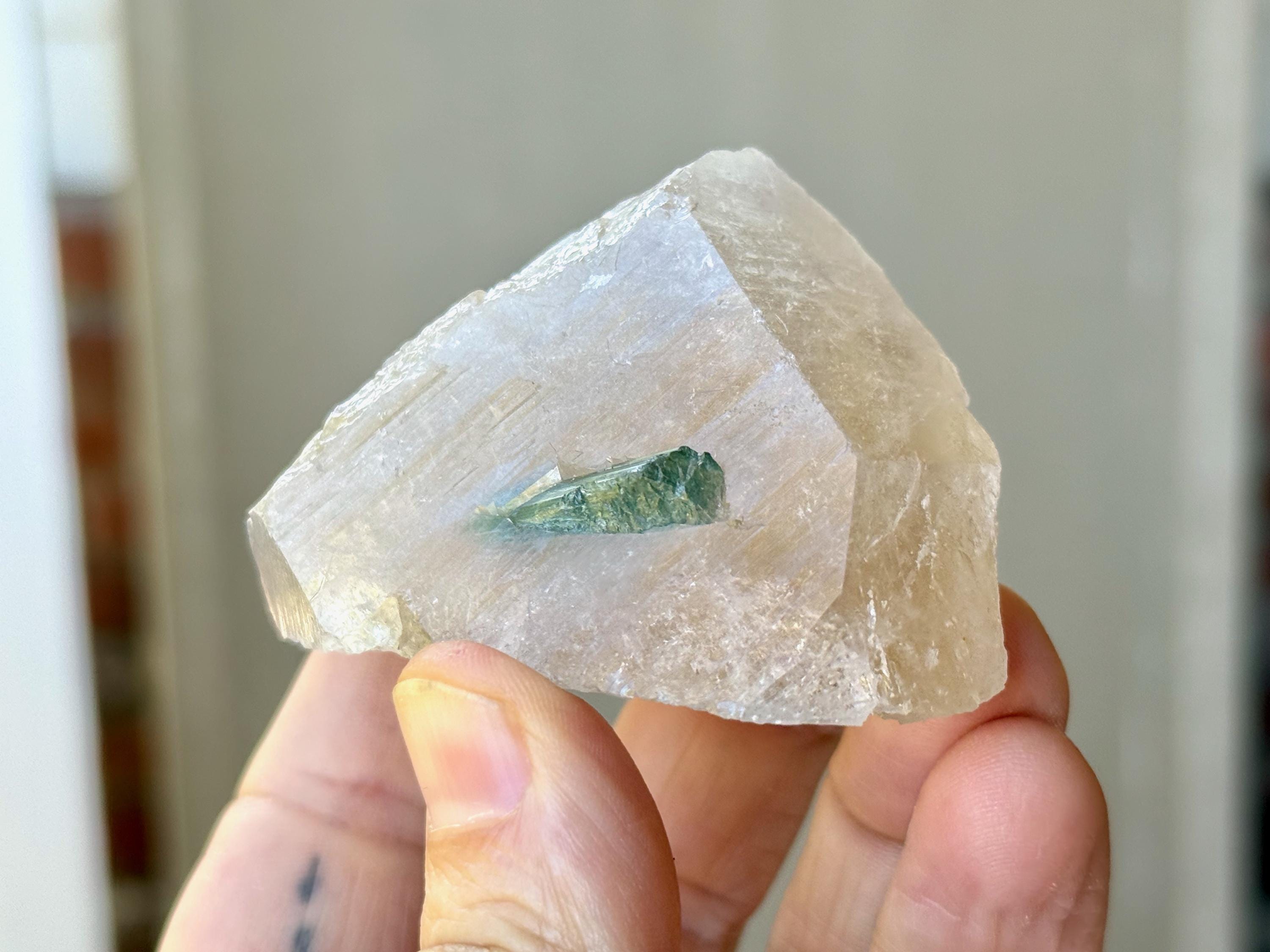 This natural Citrine with Teal Blue Tourmaline comes from a recent find in Coronel Murta, Minas Gerais, Brazil. Citrine activates, opens, and energizes the Solar Plexus and Navel Chakras, releasing personal power, creativity and most importantly the ability to manifest.