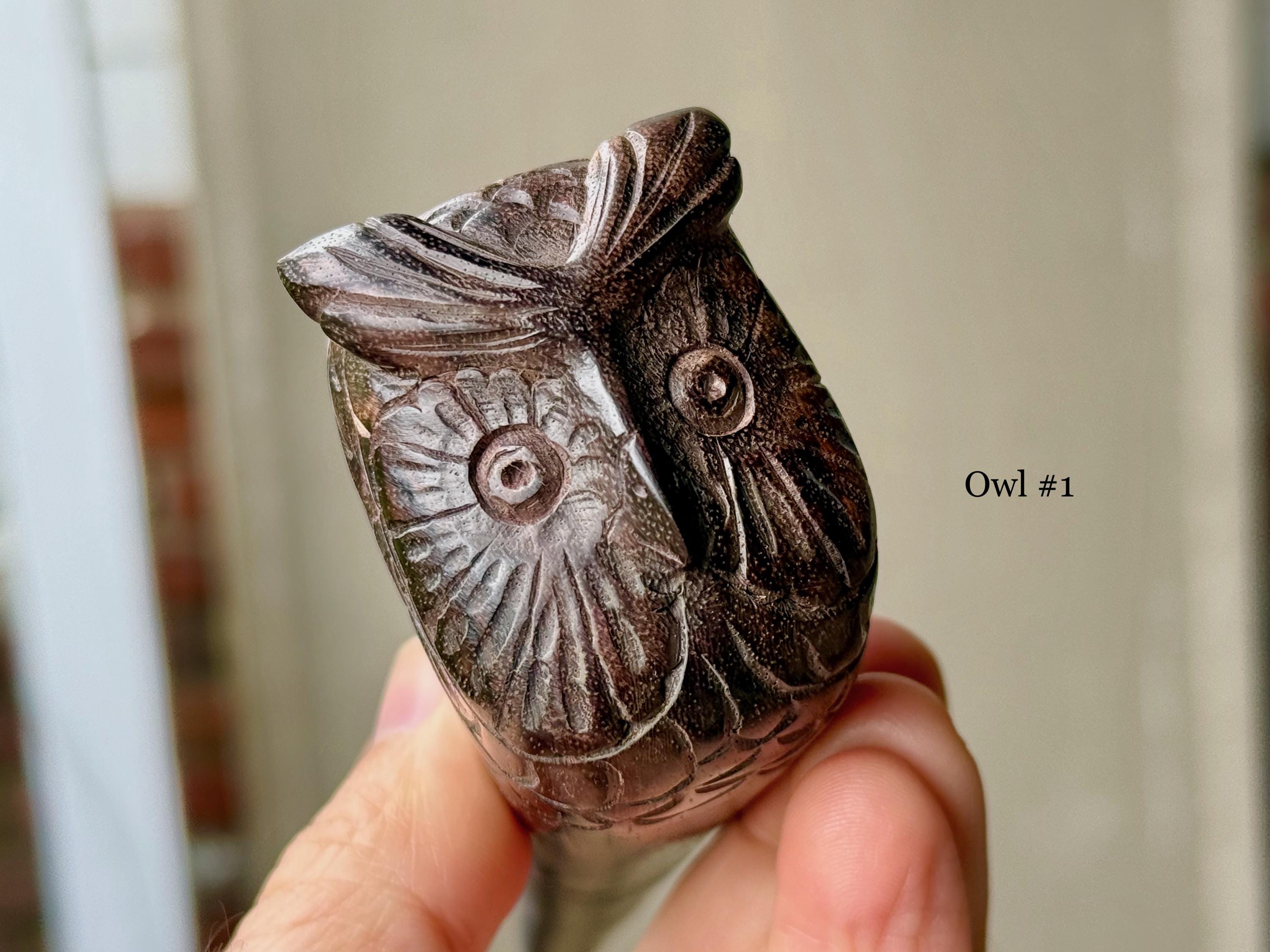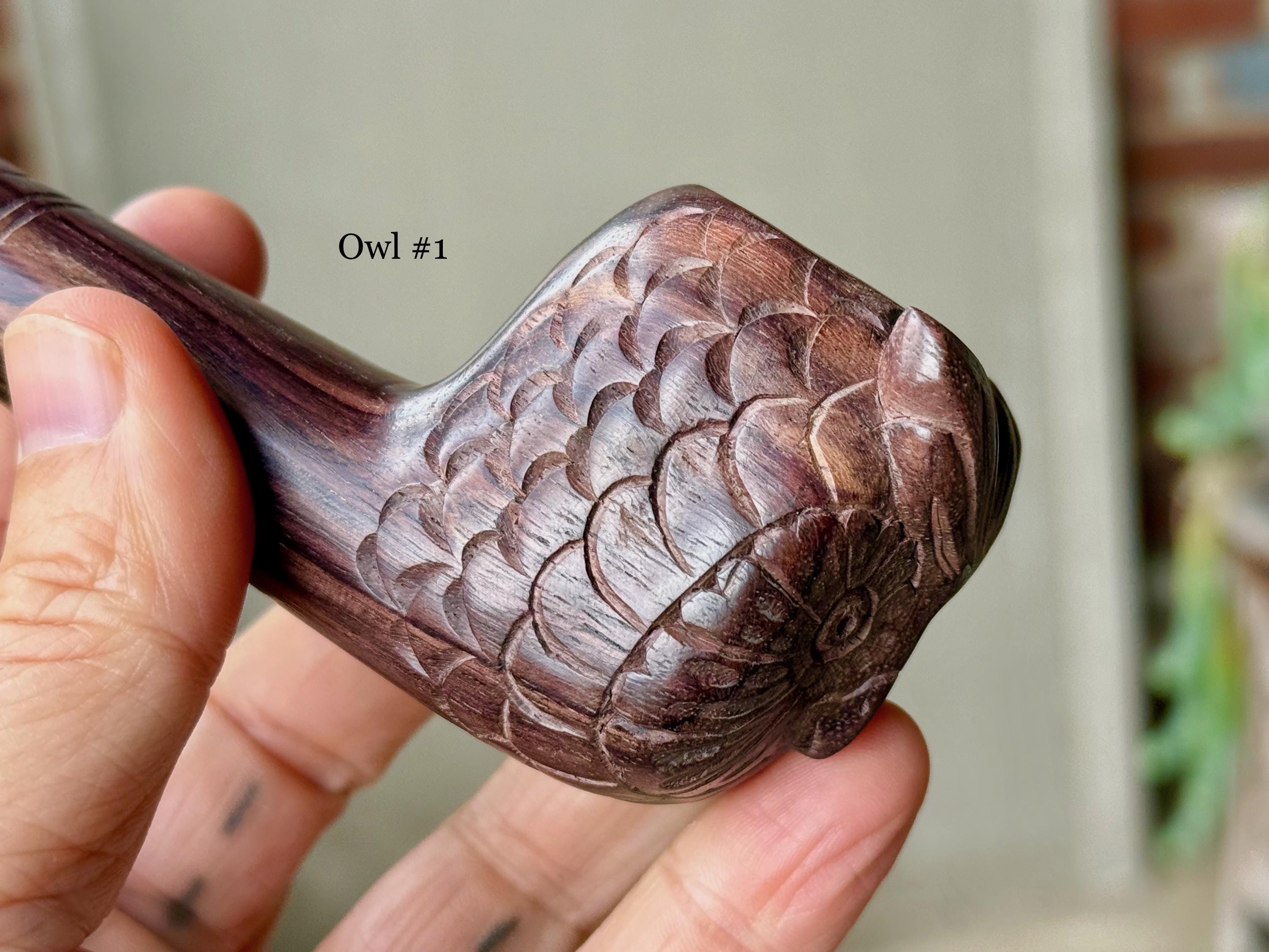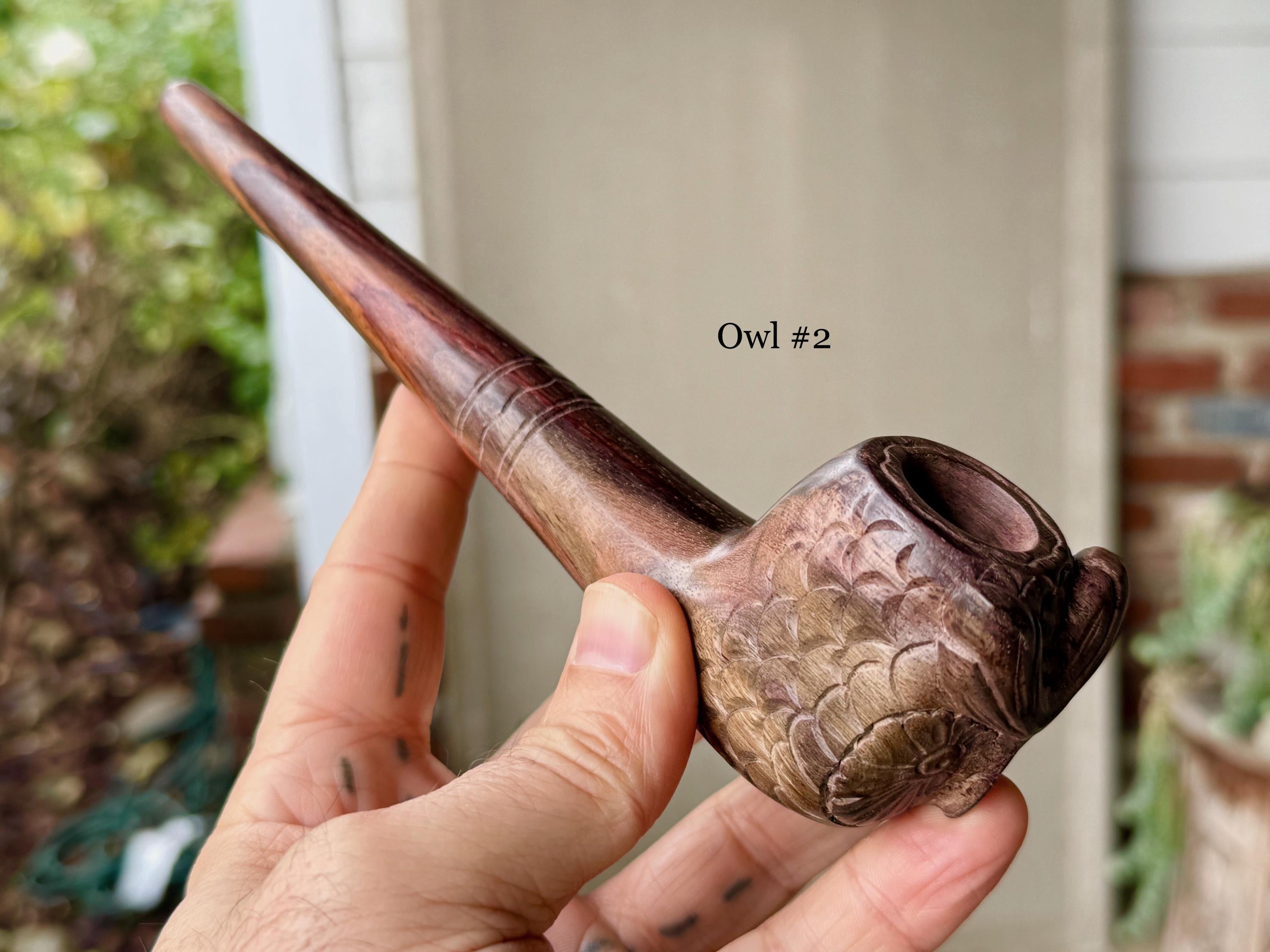 The wise and gentle Owl watching over us! These elegant ceremonial pipes feature this most beloved animal protector, hand carved with meticulous attention to detail.
