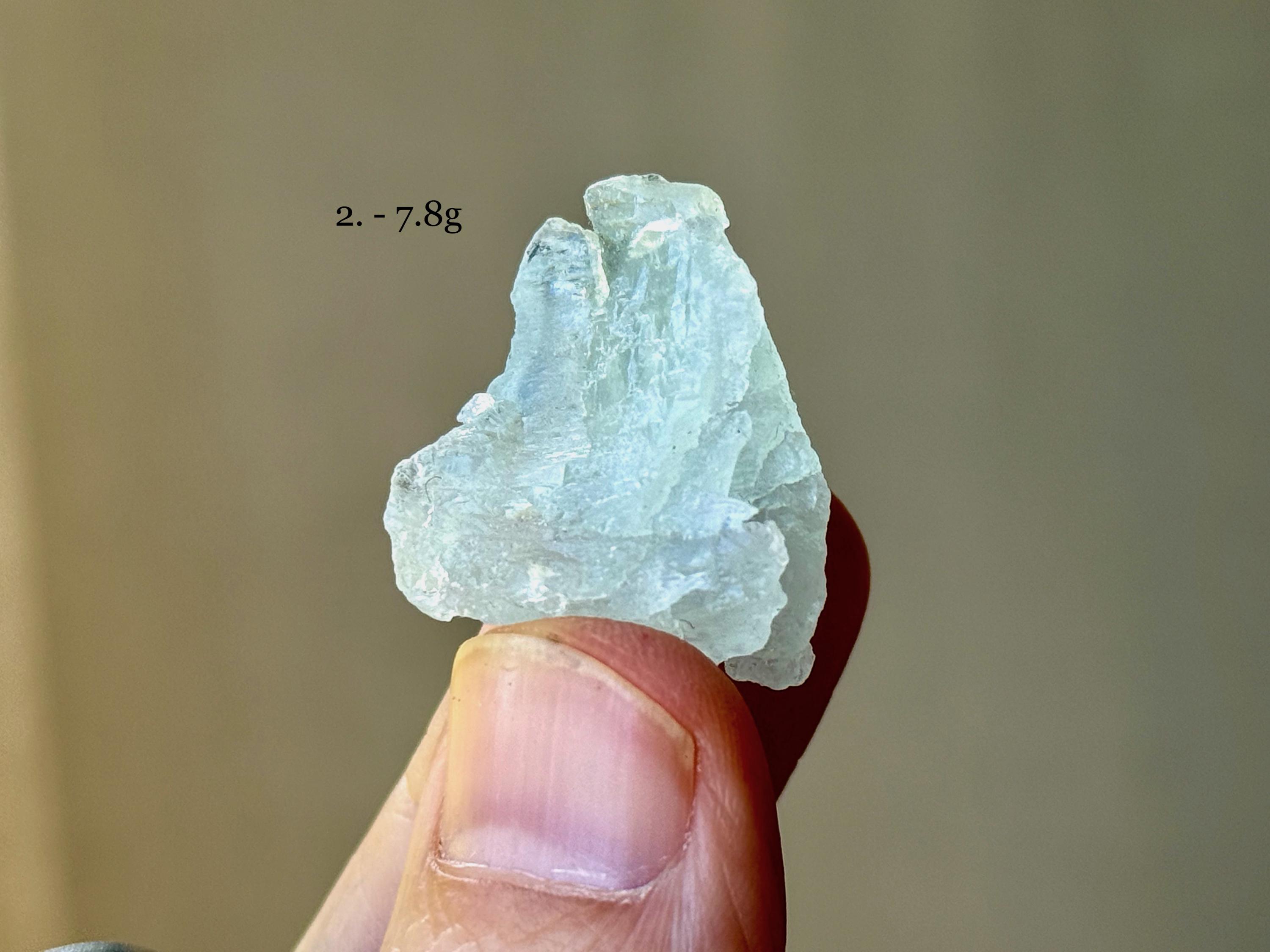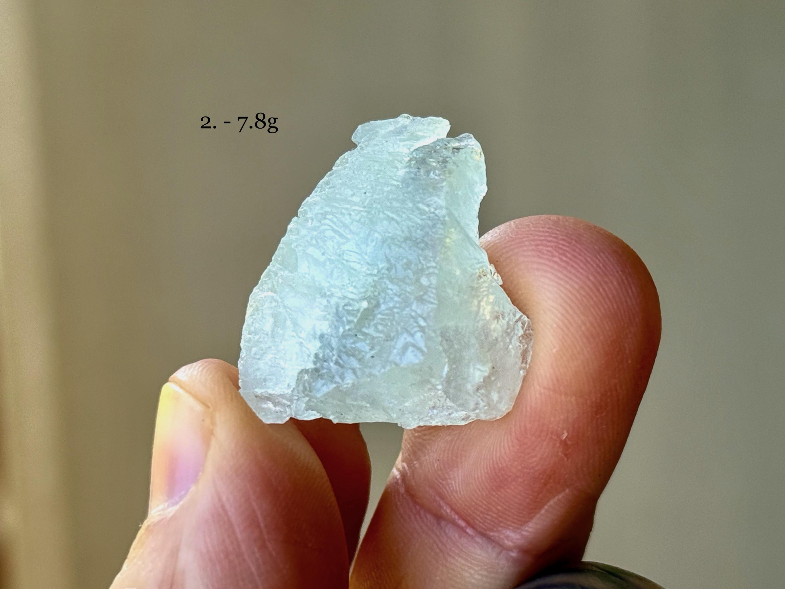 These exquisite etched Aquamarine crystals come from an old find in Medina, Minas Gerais, Brazil. Each selection is numbered, simply select your preference(s) from the dropdown menu.