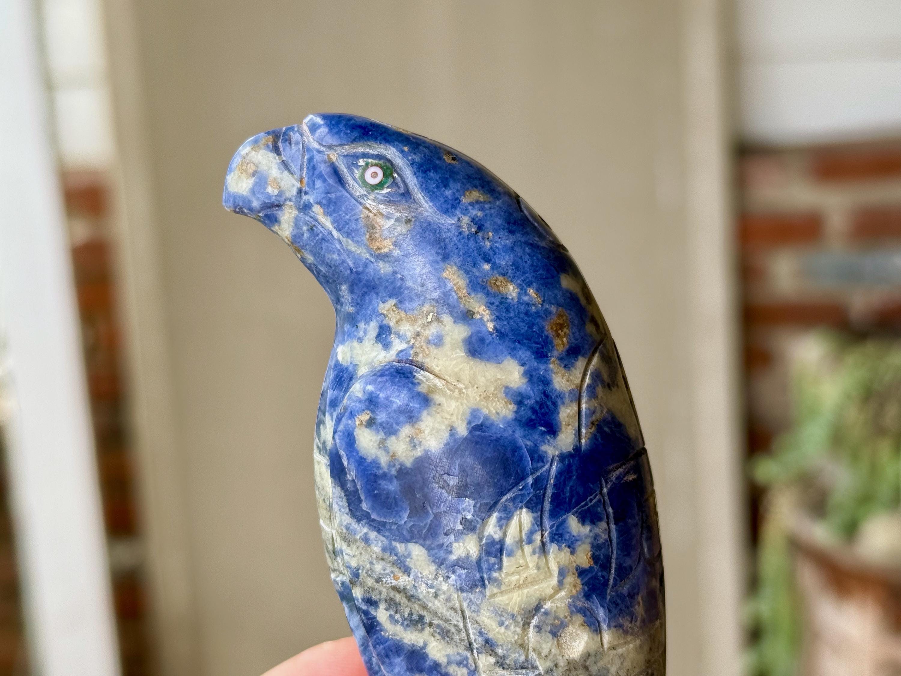 This handsome Eagle Totem Statue was hand carved from native Sodalite by artist Ruben Layme in Peru's Sacred Valley.