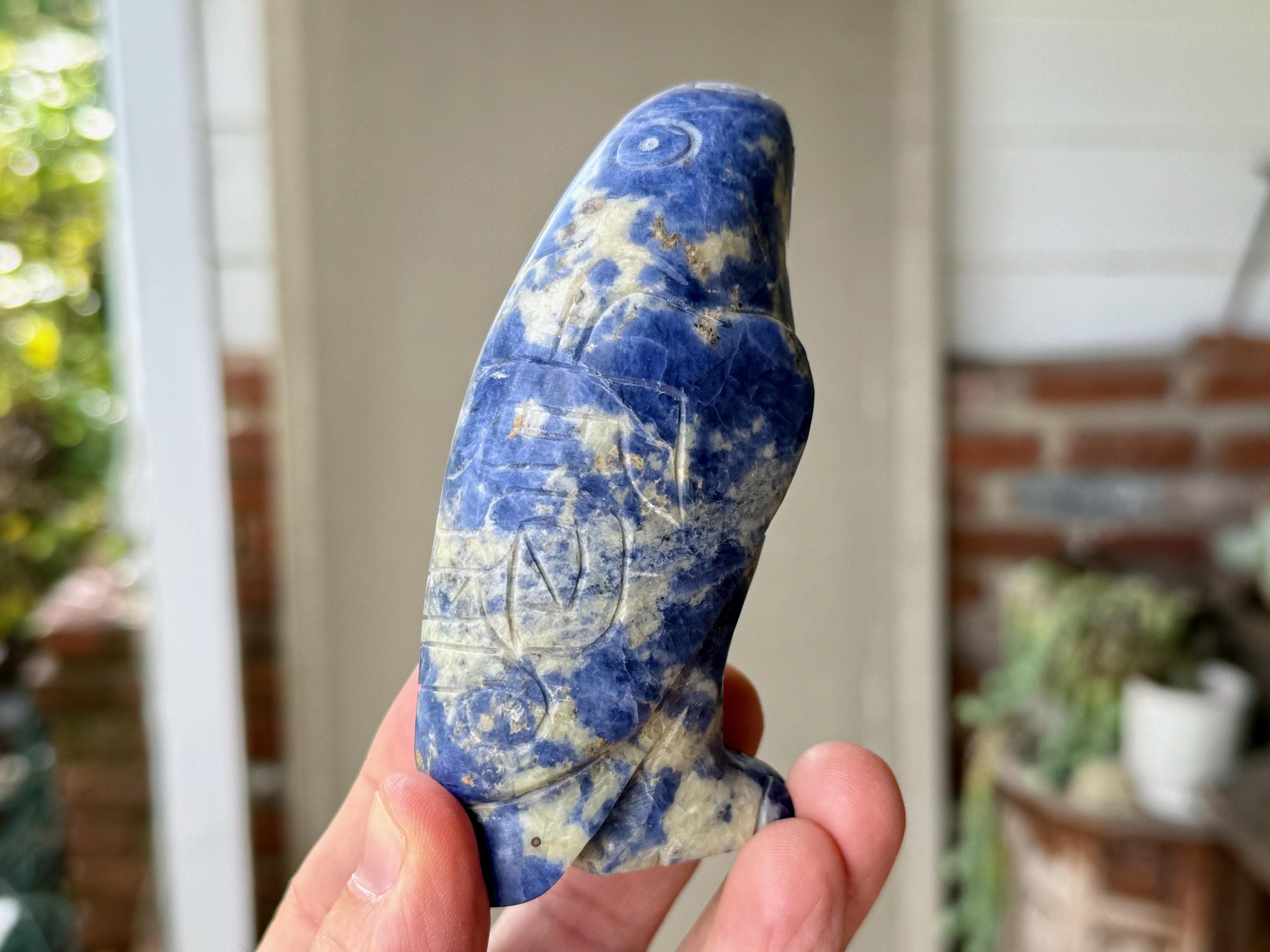 The handsome and protective Eagle, masterfully carved from native, Peruvian Sodalite! This piece is influenced by artifacts found in Incan tombs throughout Peru's Sacred Valley, and as such, is instantly distinguishable as something very special in its detail and artisanship.
