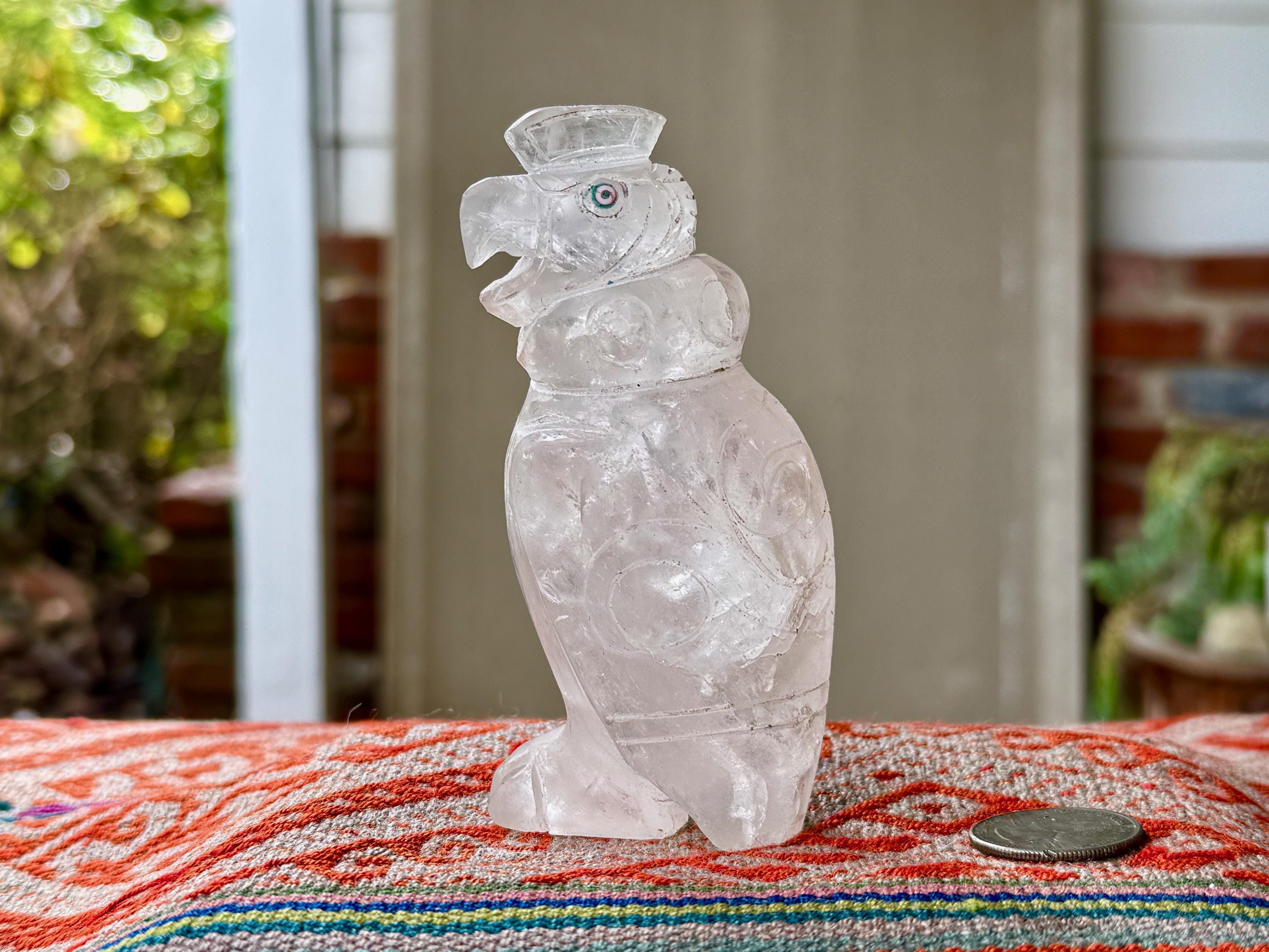 A fierce protector! This Condor statue is incredibly well-articulated, an inspired replica to the Condor totem statues found in Incan tombs surrounding Peru's Sacred Valley. It is carved from a single piece of native Quartz found in this same locale. The expression and detailing is just marvelous.
