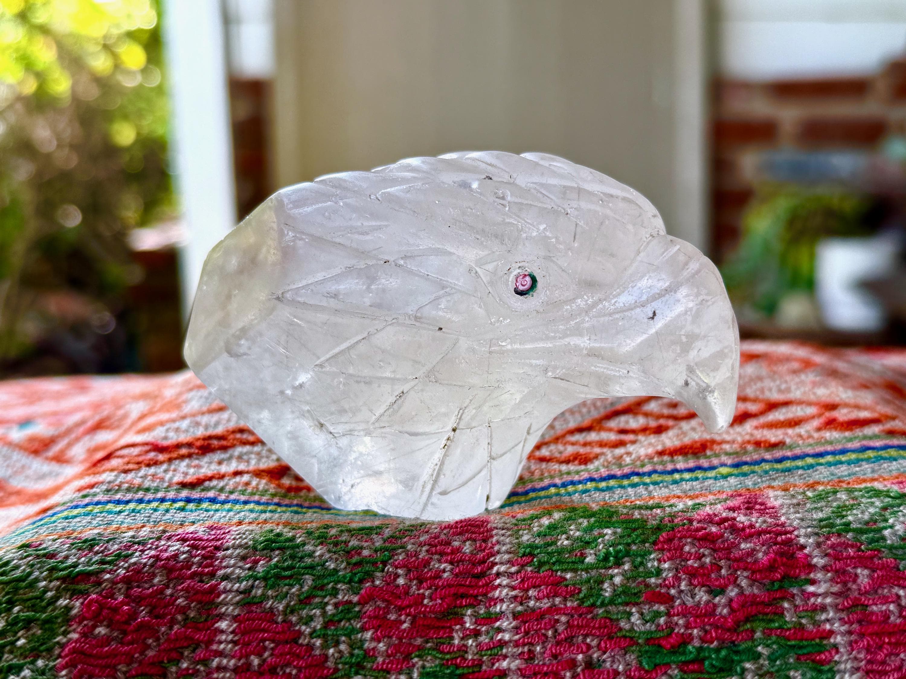 A powerful representation of the Eagle, an animal that is more commonly associated with North American shamanic tradition, but one that also has its place in Peruvian tradition as well. This is a handsome and expressive Eagle face carved into the base of this lustrous, native Andean Quartz crystal.