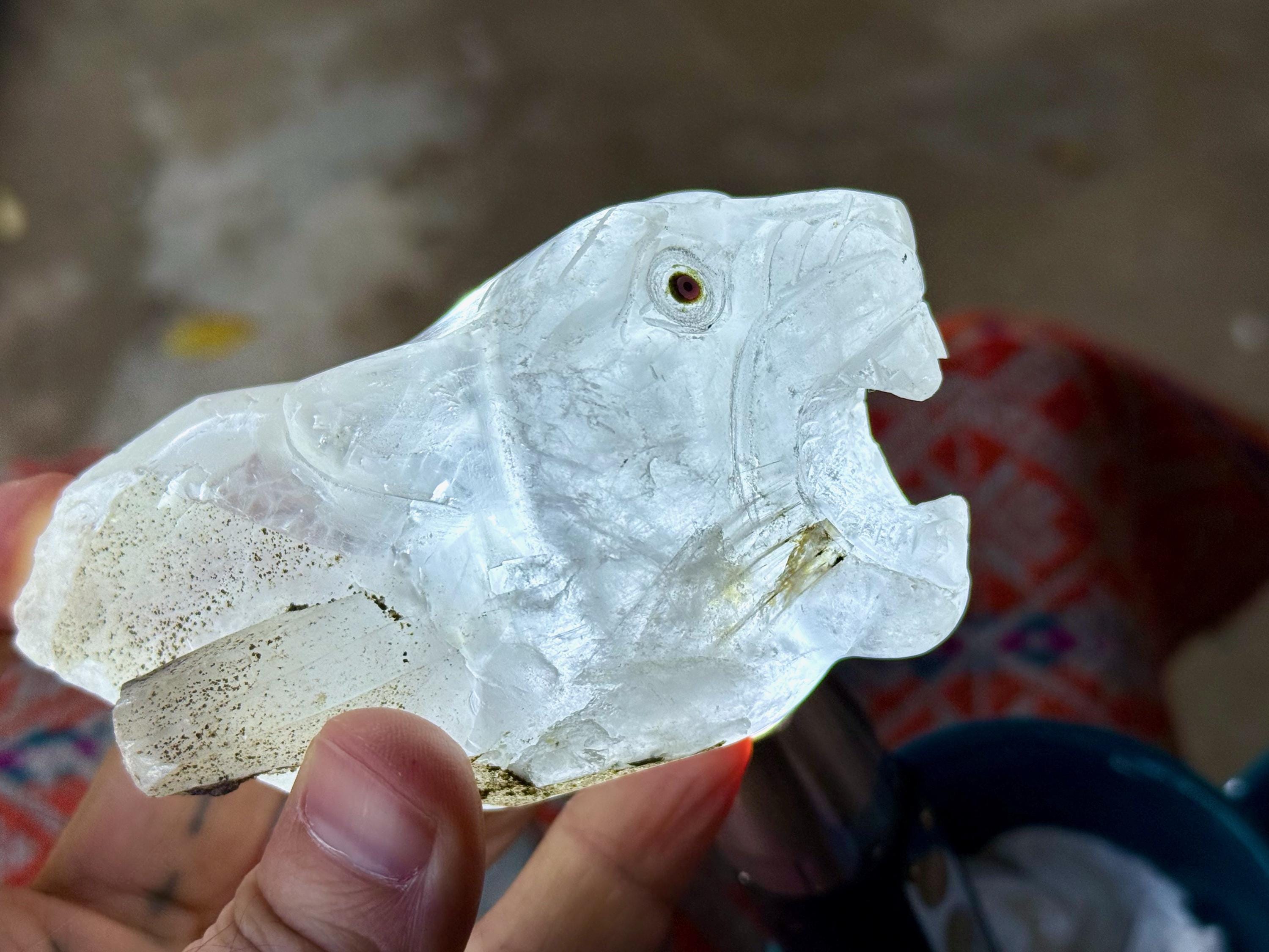 This exquisite Quartz Crystal Jaguar was hand carved from a single piece of native quartz by Peruvian artist Julio Vera. His pieces are imbued with the spirit and energies of the mountains and ancient lands where these native crystals were mined.