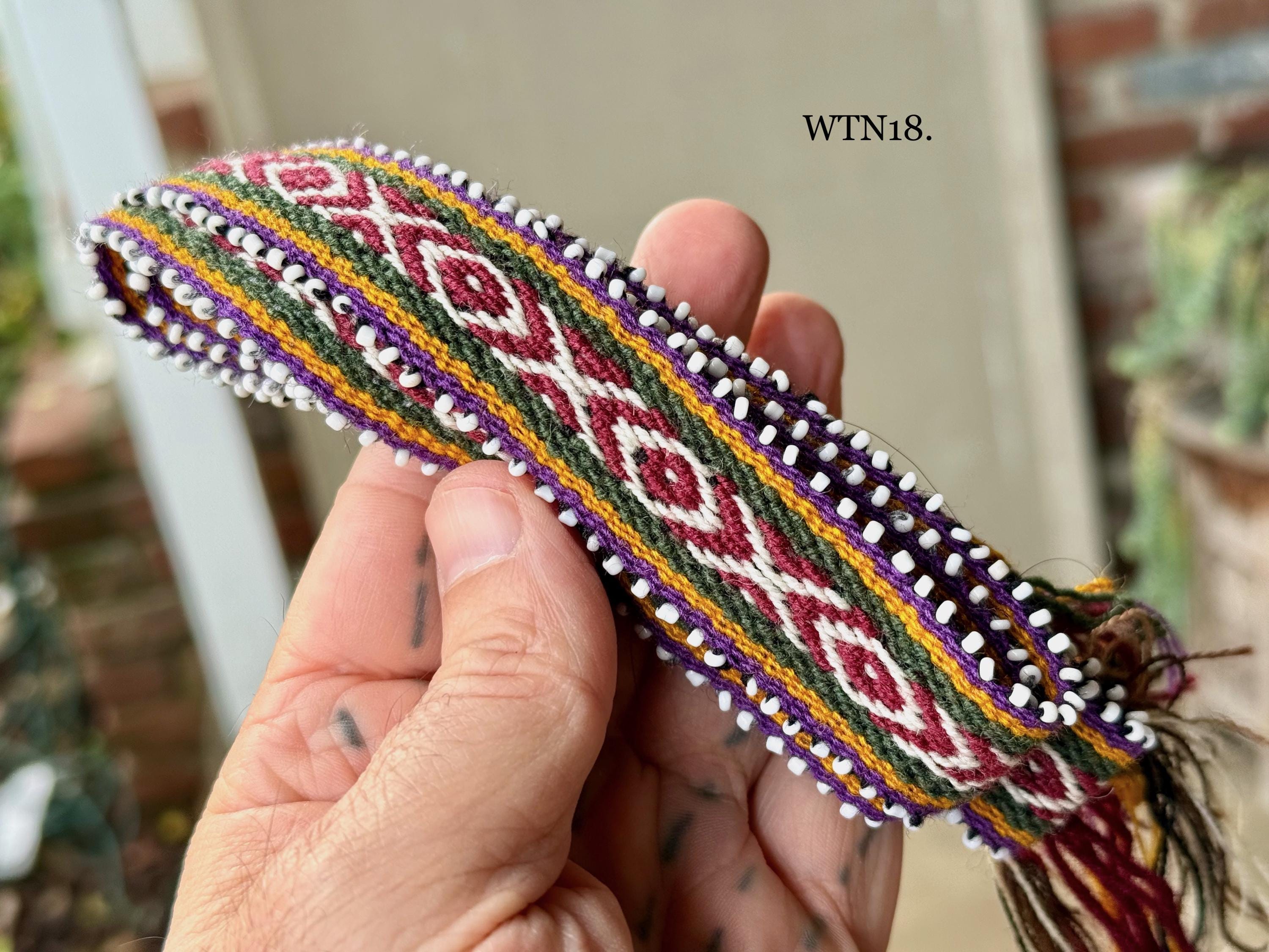 Watanas are wool ties/cords with tiny white beads, or "pini," that represent the stars. Traditionally, Watanas can be used to wrap your Mesa, or bundle a Despacho offering. These Watanas are of high-grade quality, wider and longer than standard Watanas, allowing them to be used as hat bands, bracelets for good luck and protection, or as hair ties, belts, adornments, etc. They can also be used on an altar or mesa to wrap herb bundles or other types of offerings.