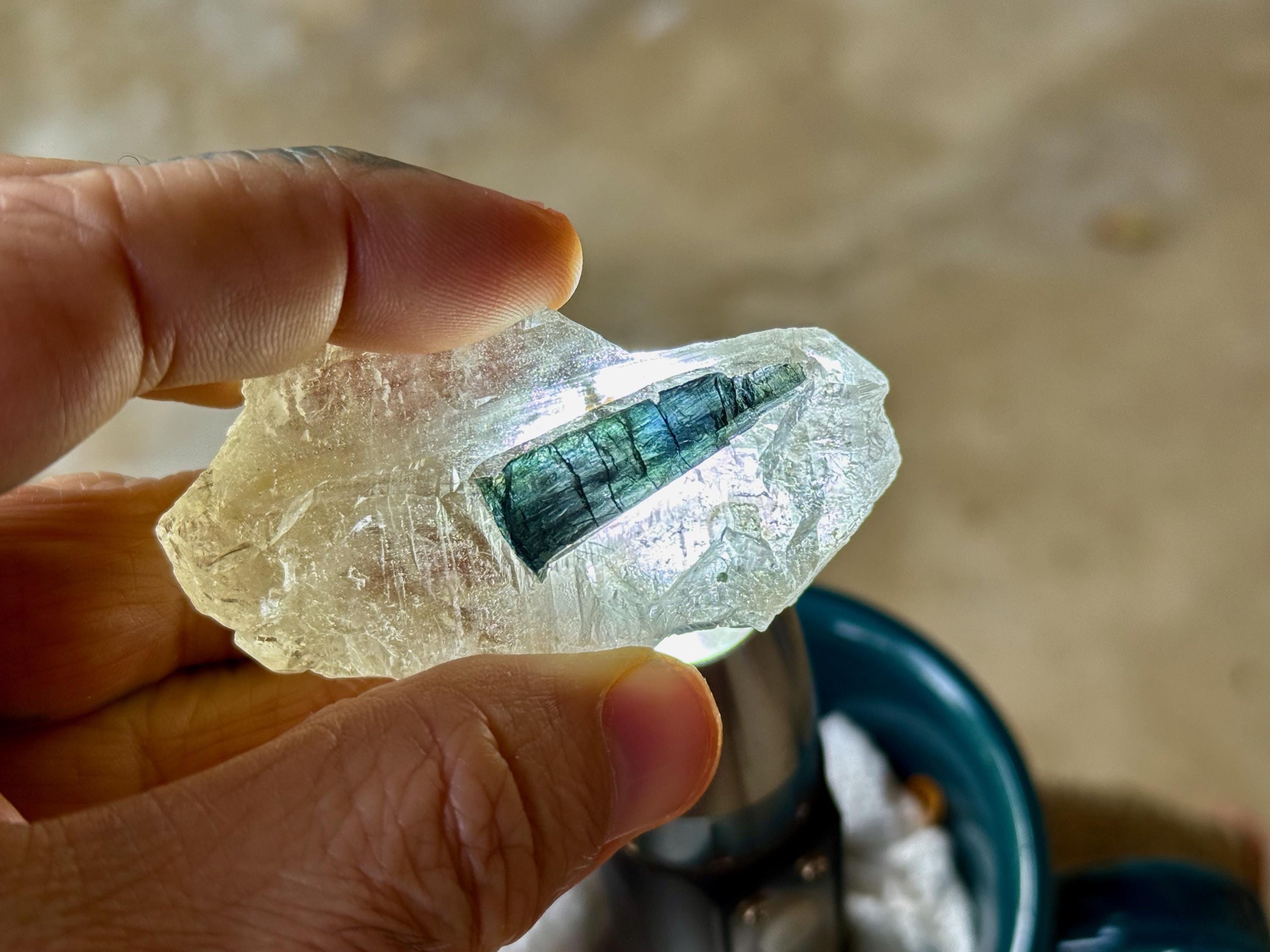 Blue Tourmaline is an exceptional tool for spiritual or healing practitioners for its ability to receive and transmute the high vibrations of the spirit realm. It channels the healing energies freely offered us by higher dimensions, and facilitates contact with these beings and the reception of their blessings.