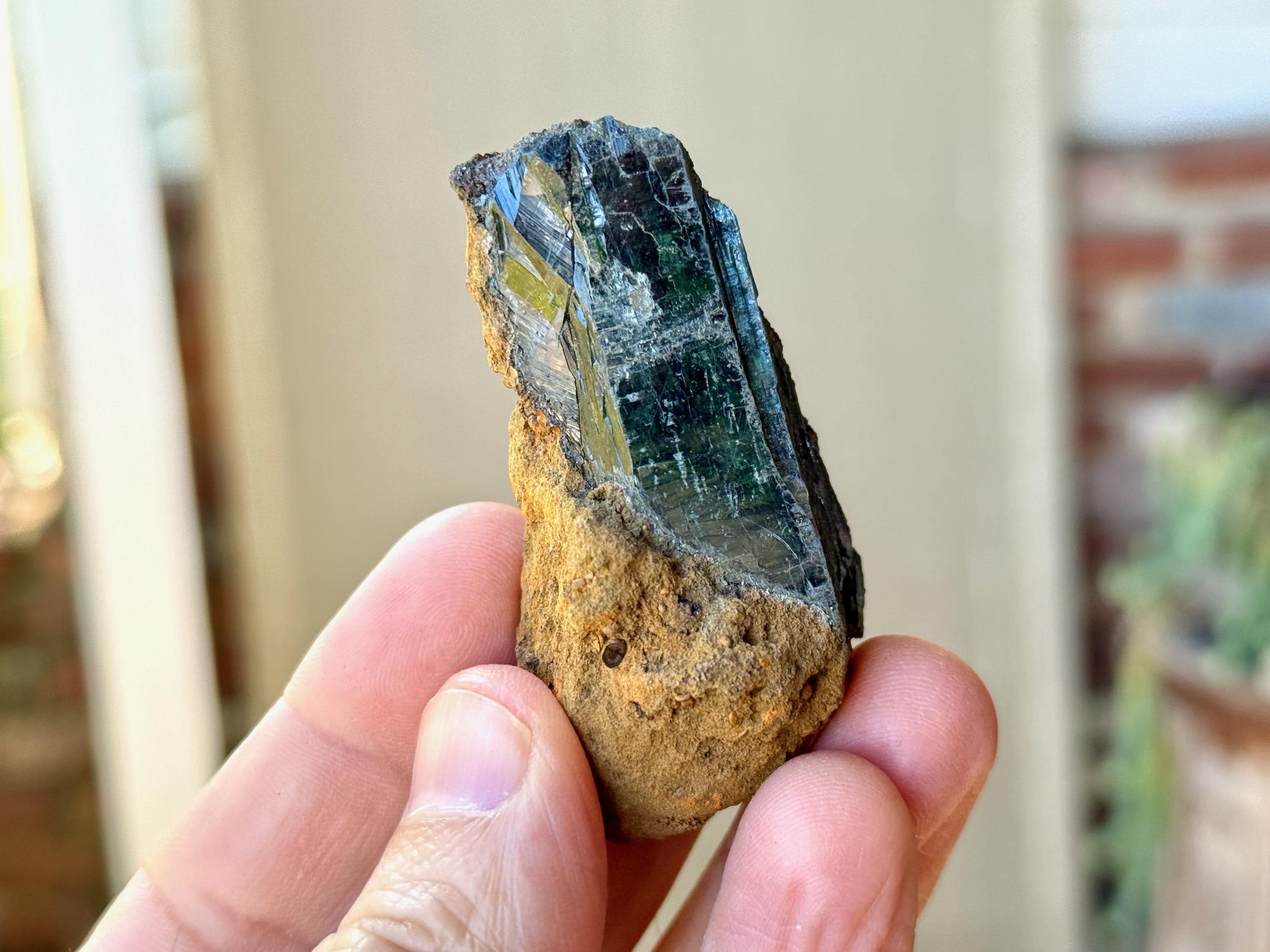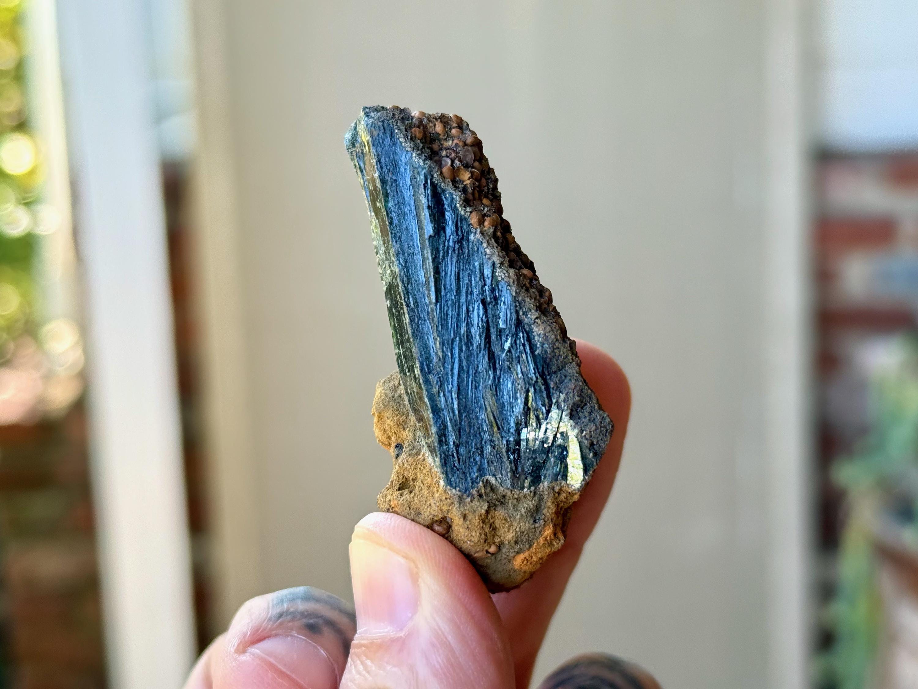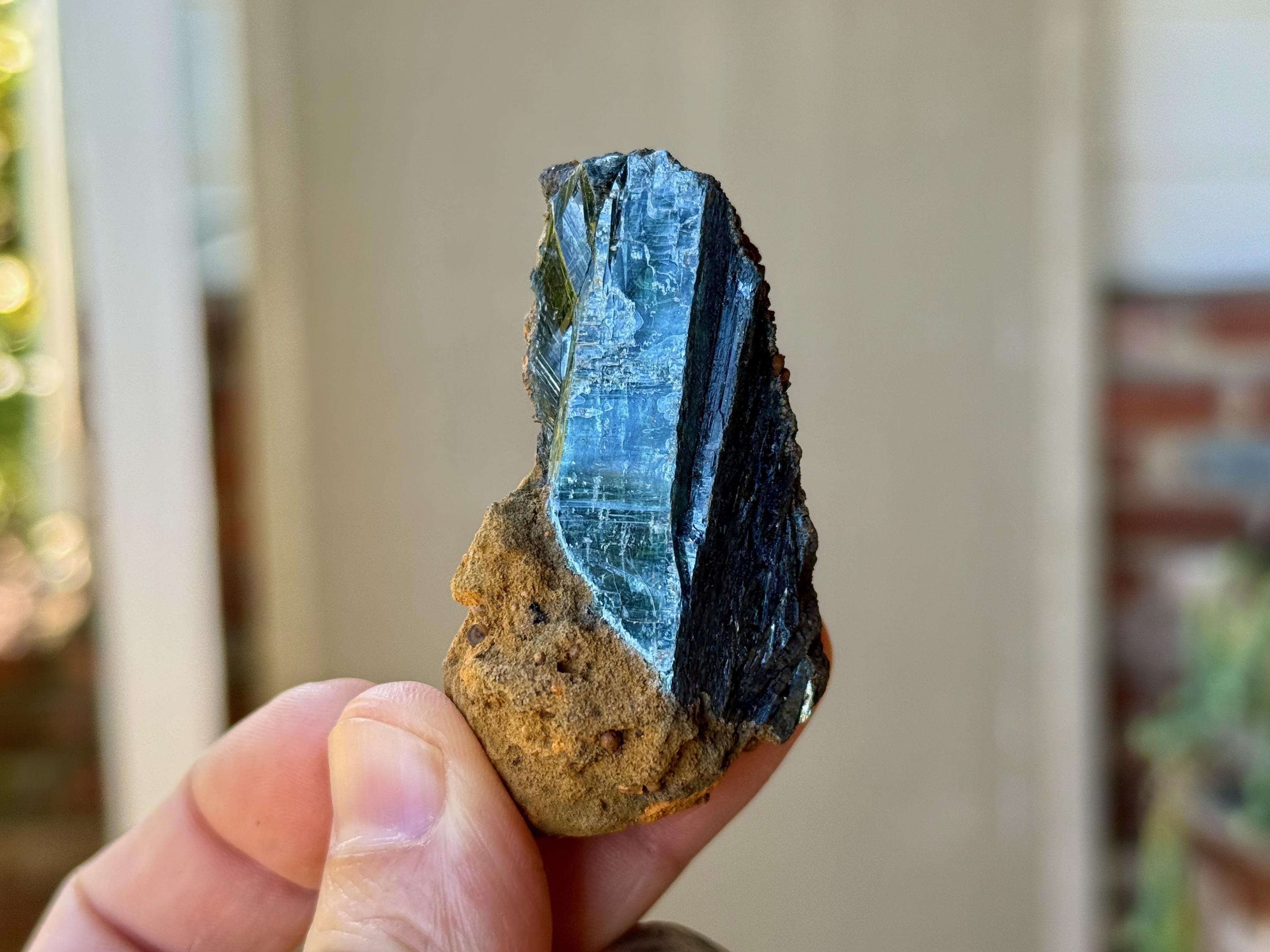 PLEASE NOTE: Vivianite should not be kept on permanent display or in direct sunlight for extended periods of time, as it will darken in color to almost black. This is due to the oxidation of the iron content in the crystal.