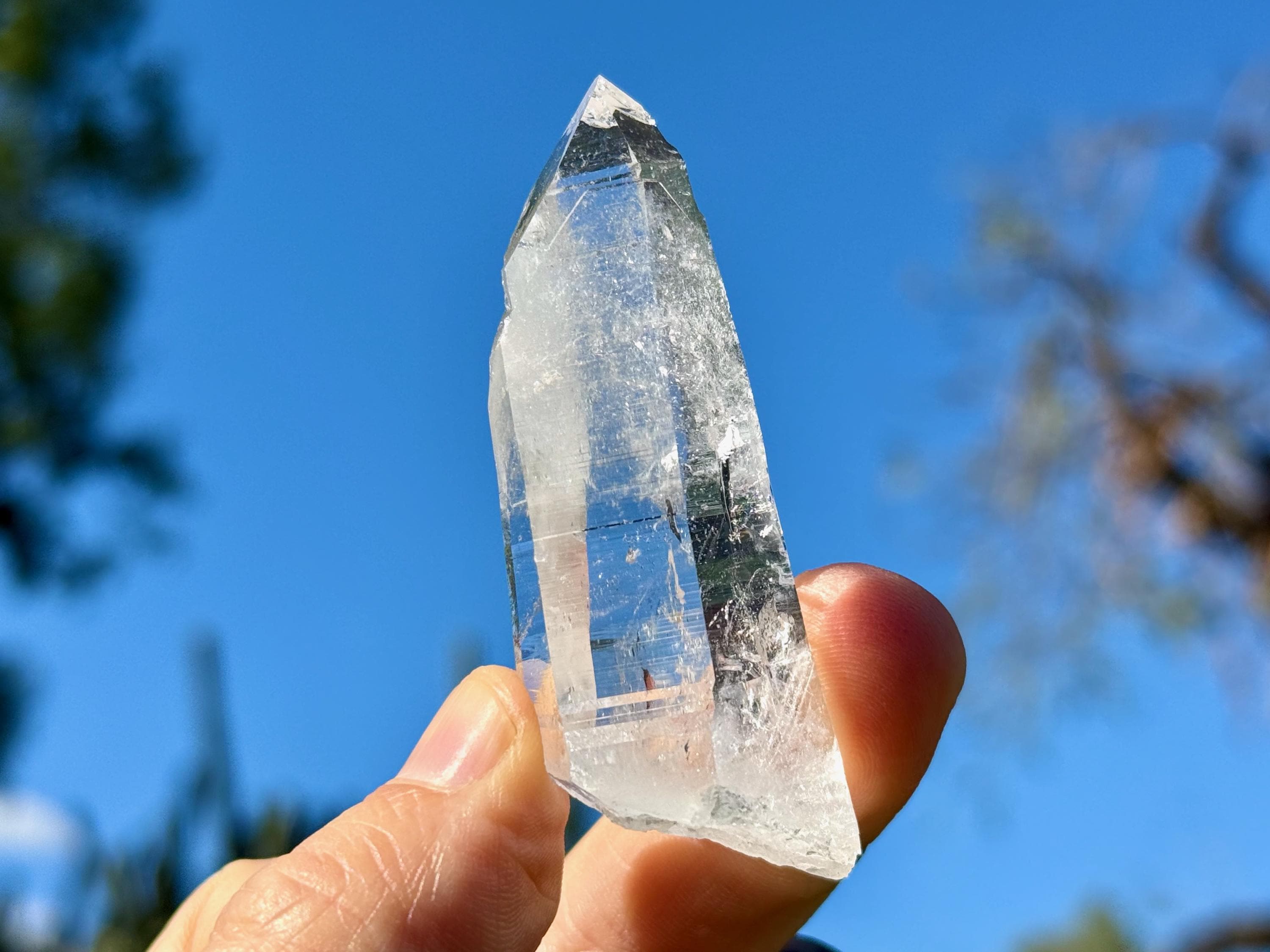 Lemurian Quartz resonates with all chakras, but primarily the Crown Chakra. It has one of the highest vibrations of any crystal and is a beautiful companion for meditation and to realign energies in the body. It can assist in clearing blockages in one's energy field and/or chakras, dispelling heavy energies from the body. If there is stagnant energy in the body, it can help to increase Prana (life force) energy to get things moving properly again. Meditating with Lemurian Crystals can allow us to connect with higher-dimensional spirit guides and connect to Divine realms, as well as to decode the information they contain within.