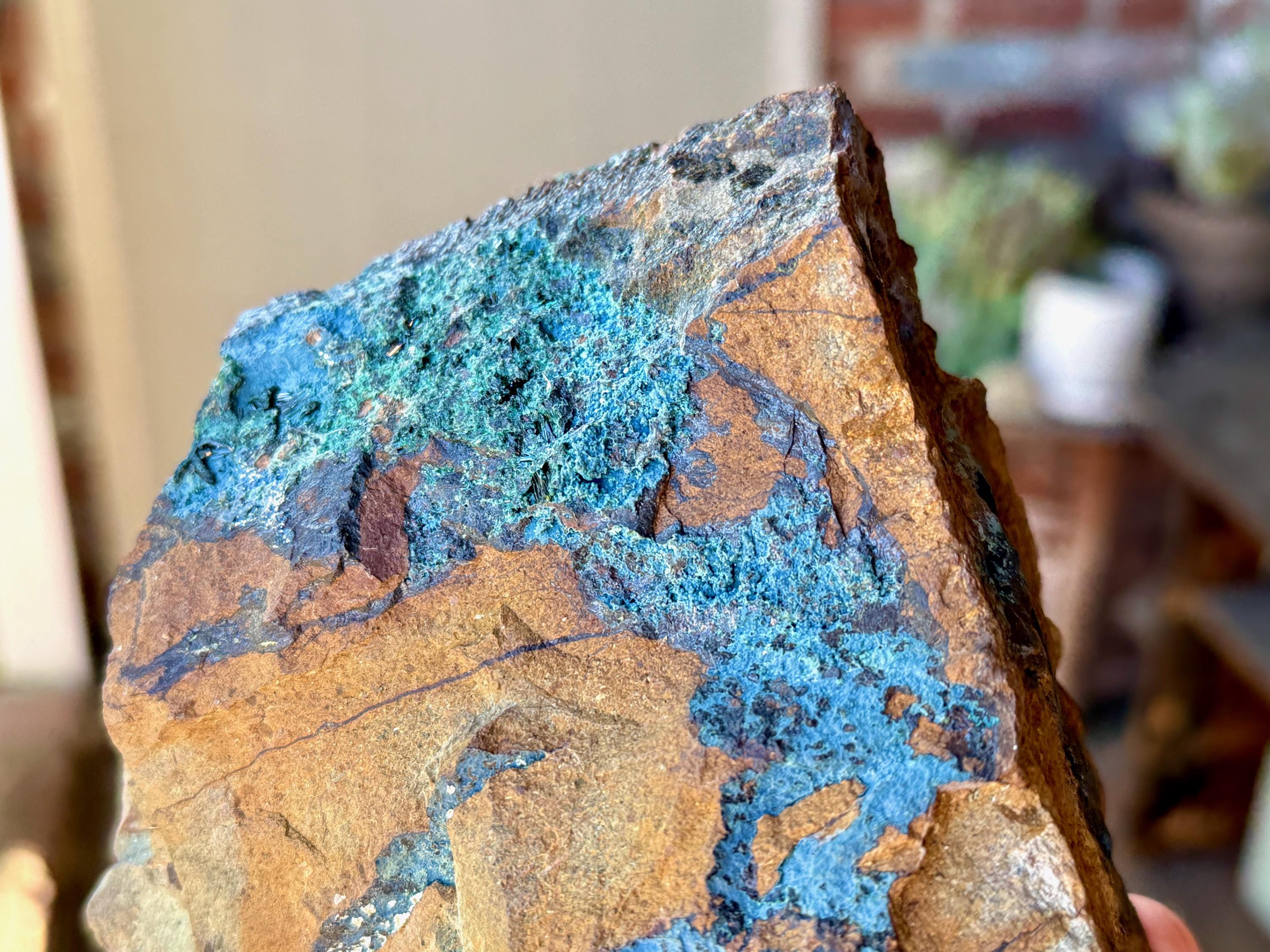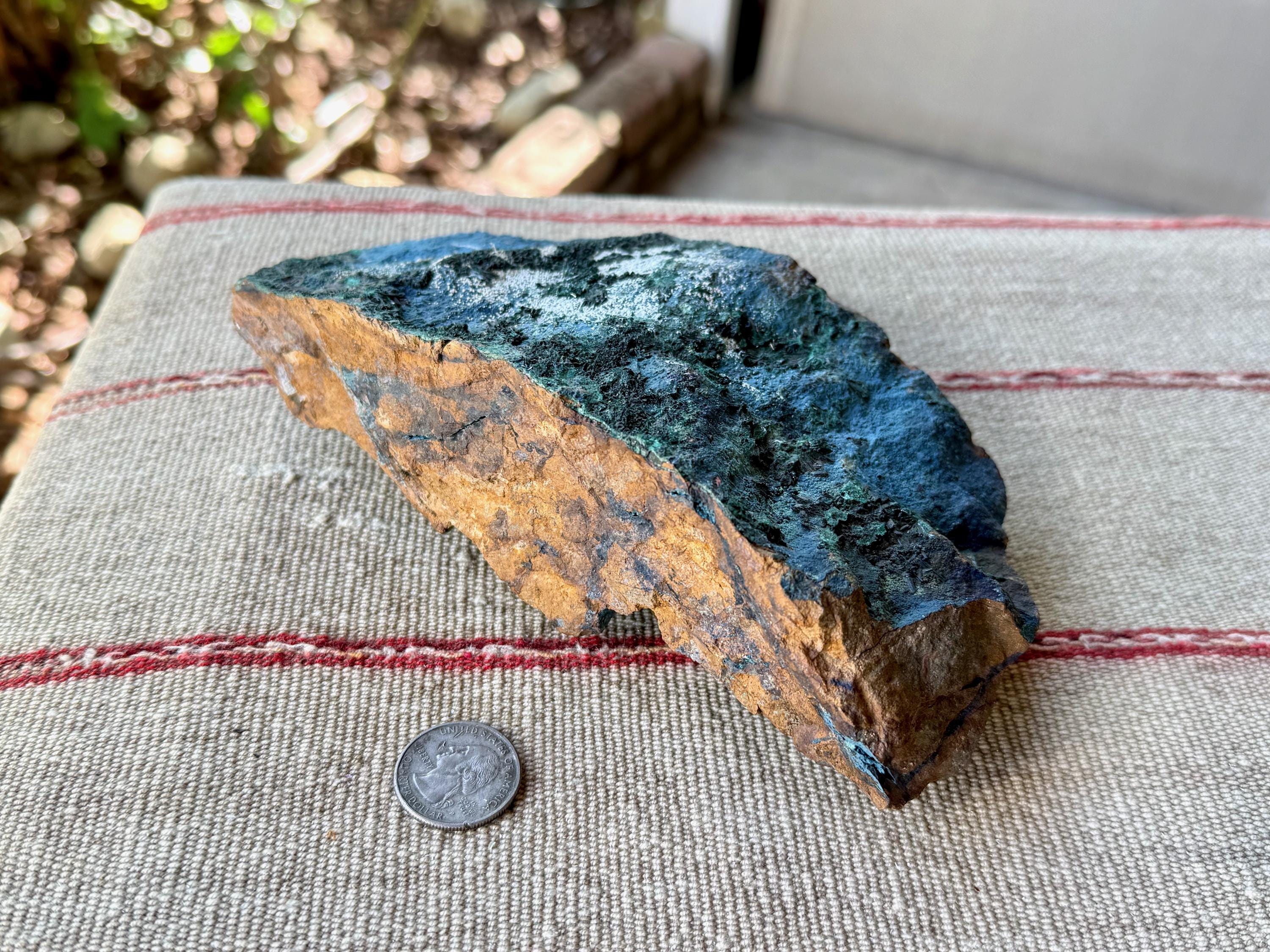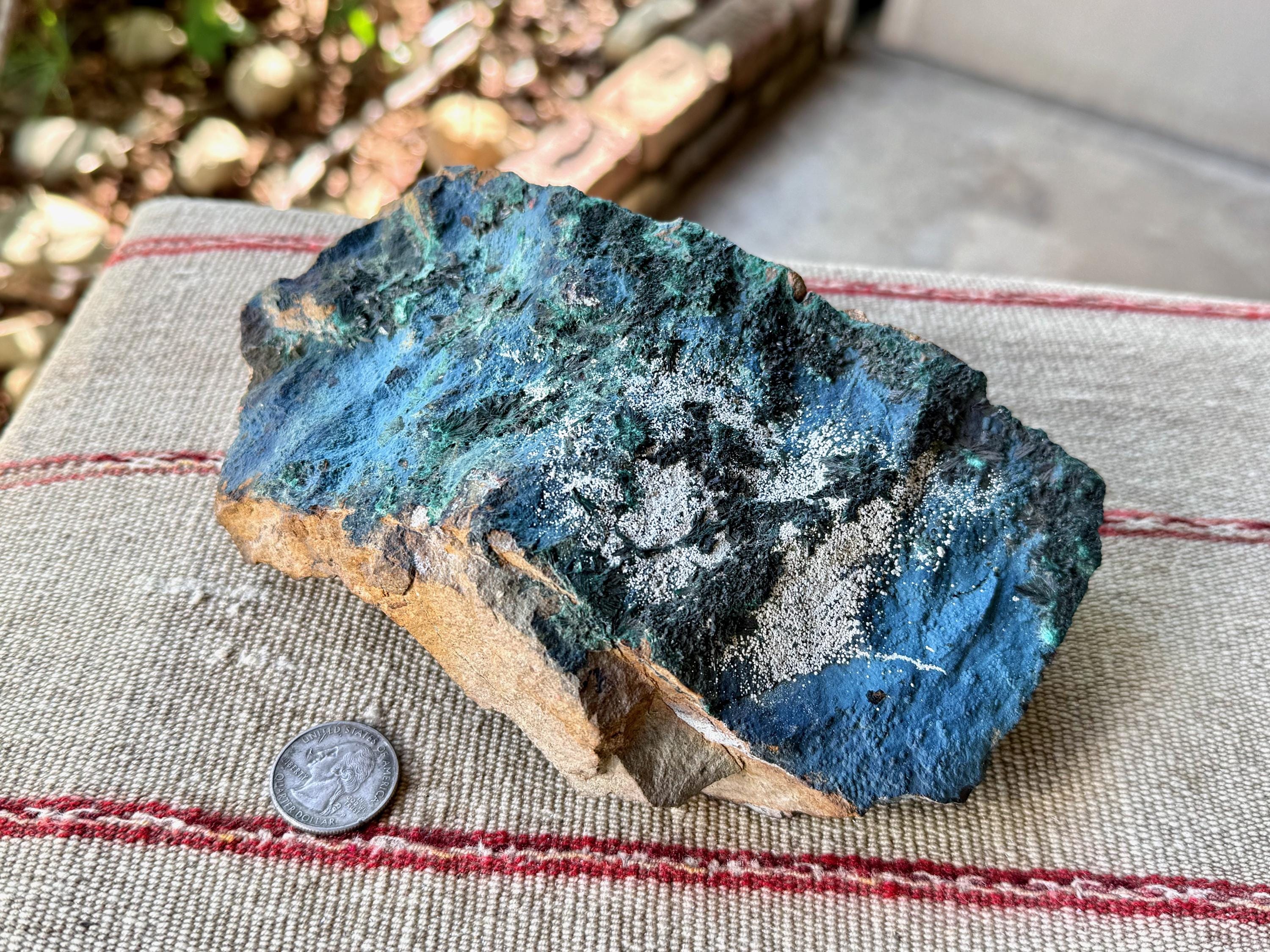 Vibrant colors and unique, contrasting textures to this giant matrix stone with ample inclusions of both Azurite and Malachite.