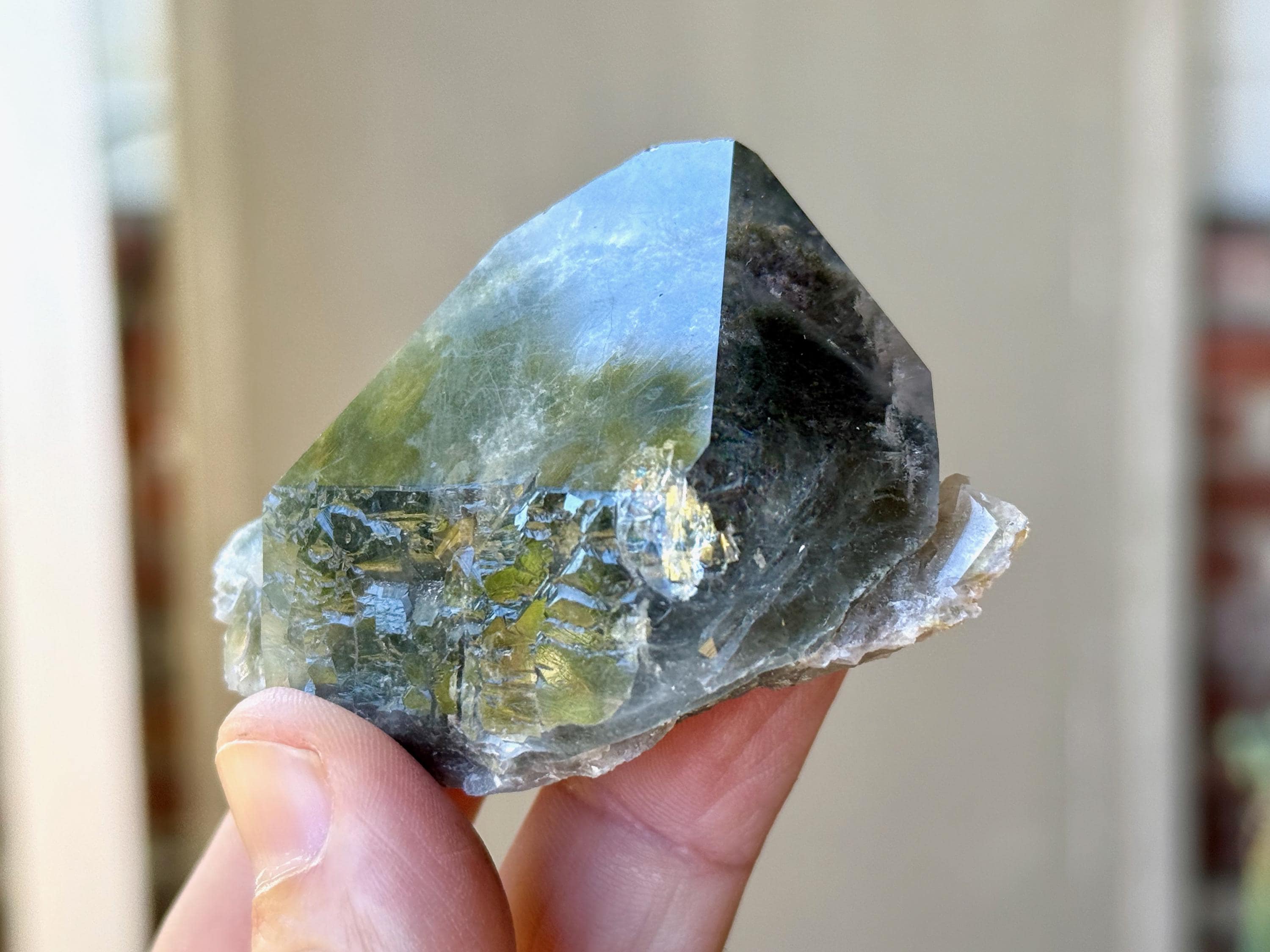 This beautiful Green Chlorite Quartz crystal comes from a recent find in Corinto, Minas Gerais, Brazil. Green Chlorite is considered to be one of the most profound purifiers, heart-healers and heart openers in the mineral kingdom.