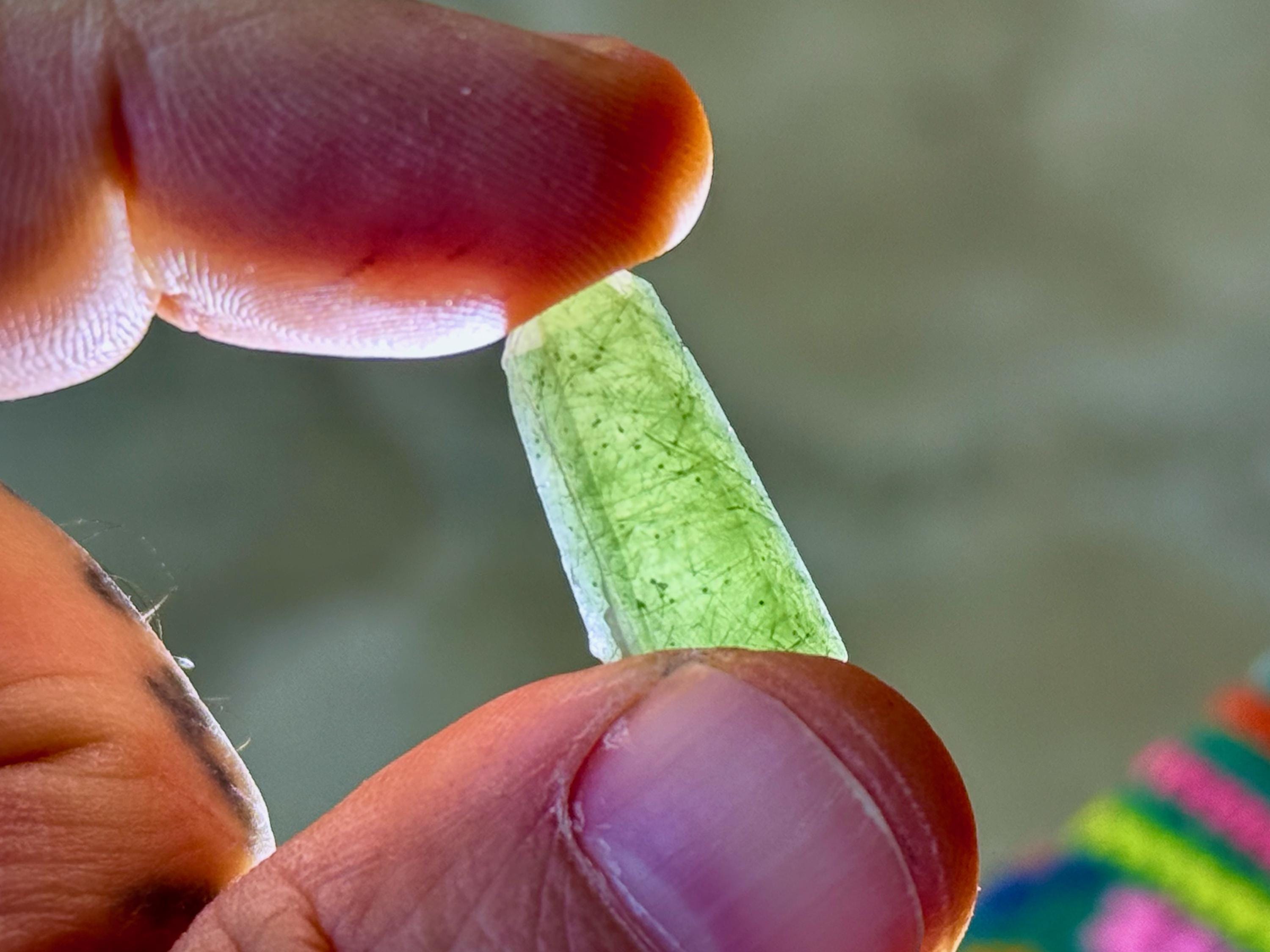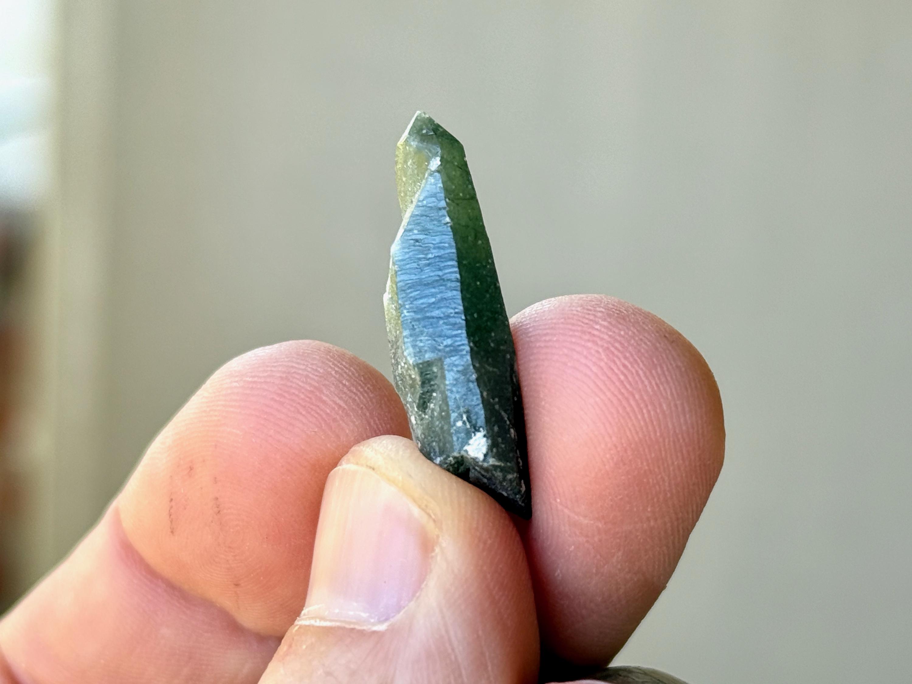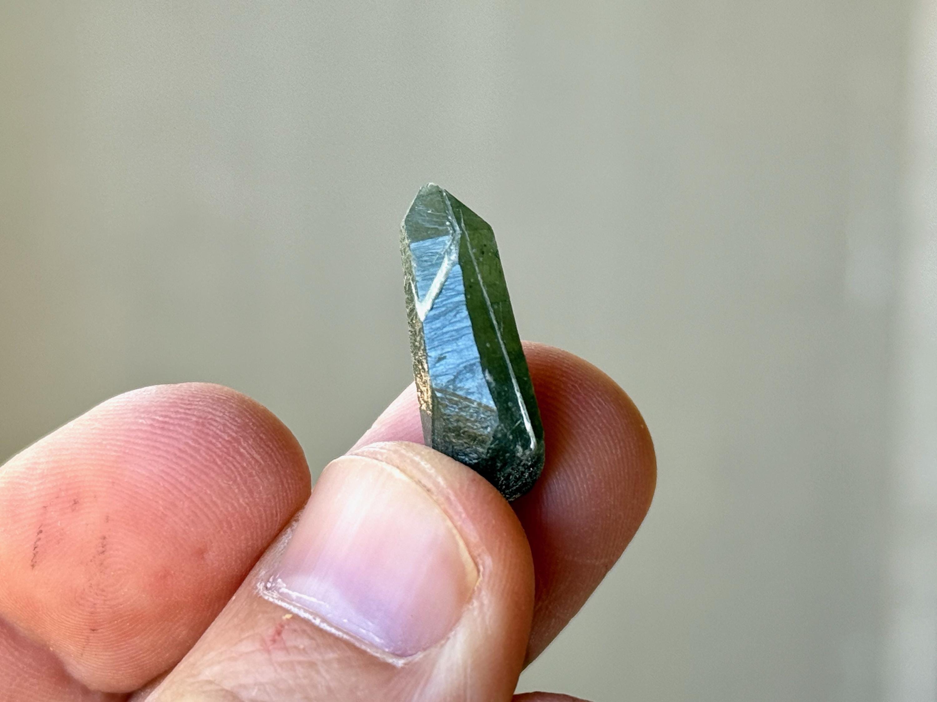 A lovely set of small Hedenbergite Quartz with great luster and dark, vibrant green color. We've included photos in natural light and backlit to show their translucency.