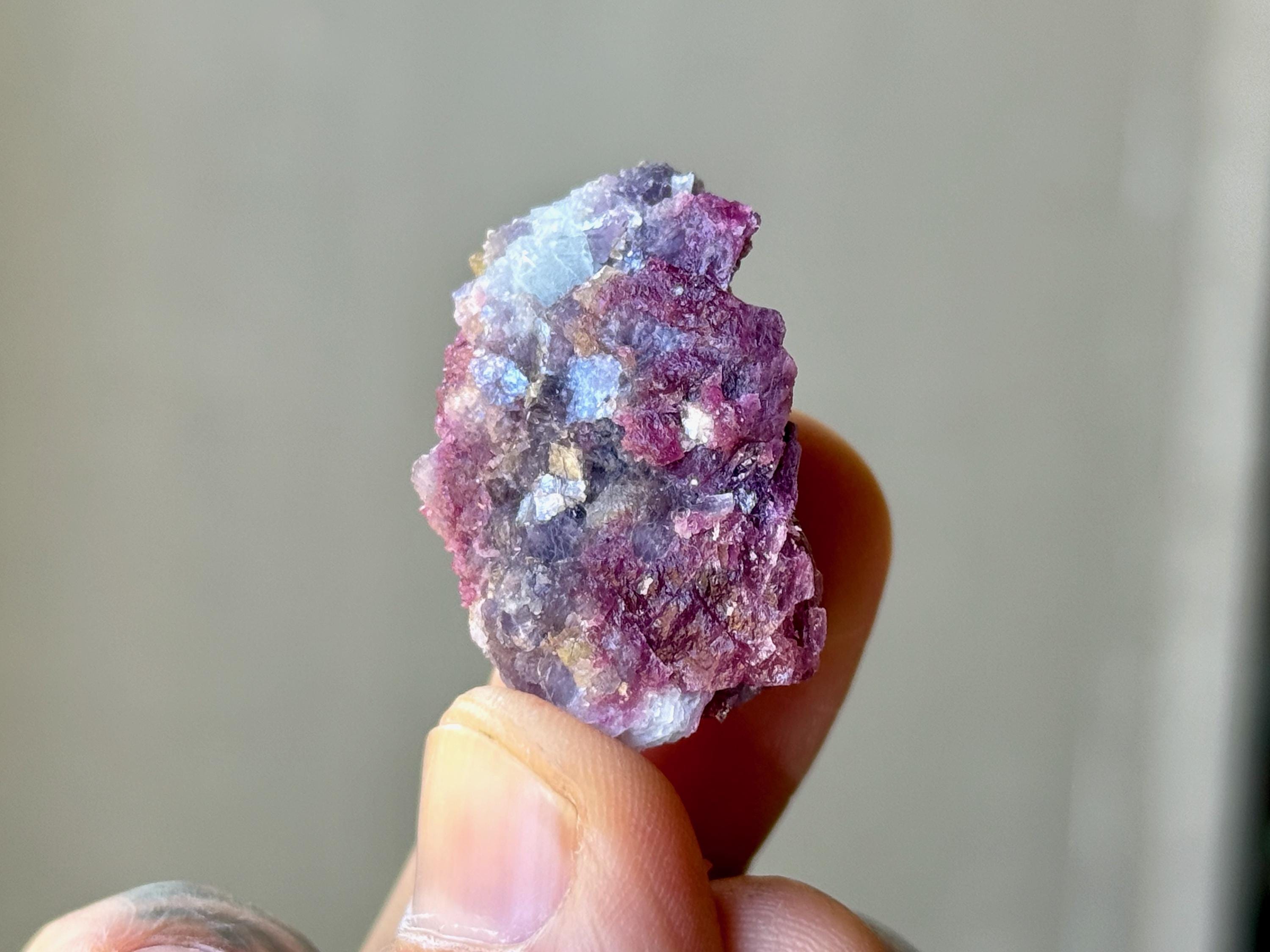 Gorgeous luster and vibrant colors to these stunning Unicorn Stone Quartz crystals with inclusions of Pink, Green, and Blue Tourmaline. One of these features a golden hue from Citrine inclusion, and we also see Purple Lepidolite in one or two pieces. When backlit, we can see just how gemmy and translucent these crystals are.