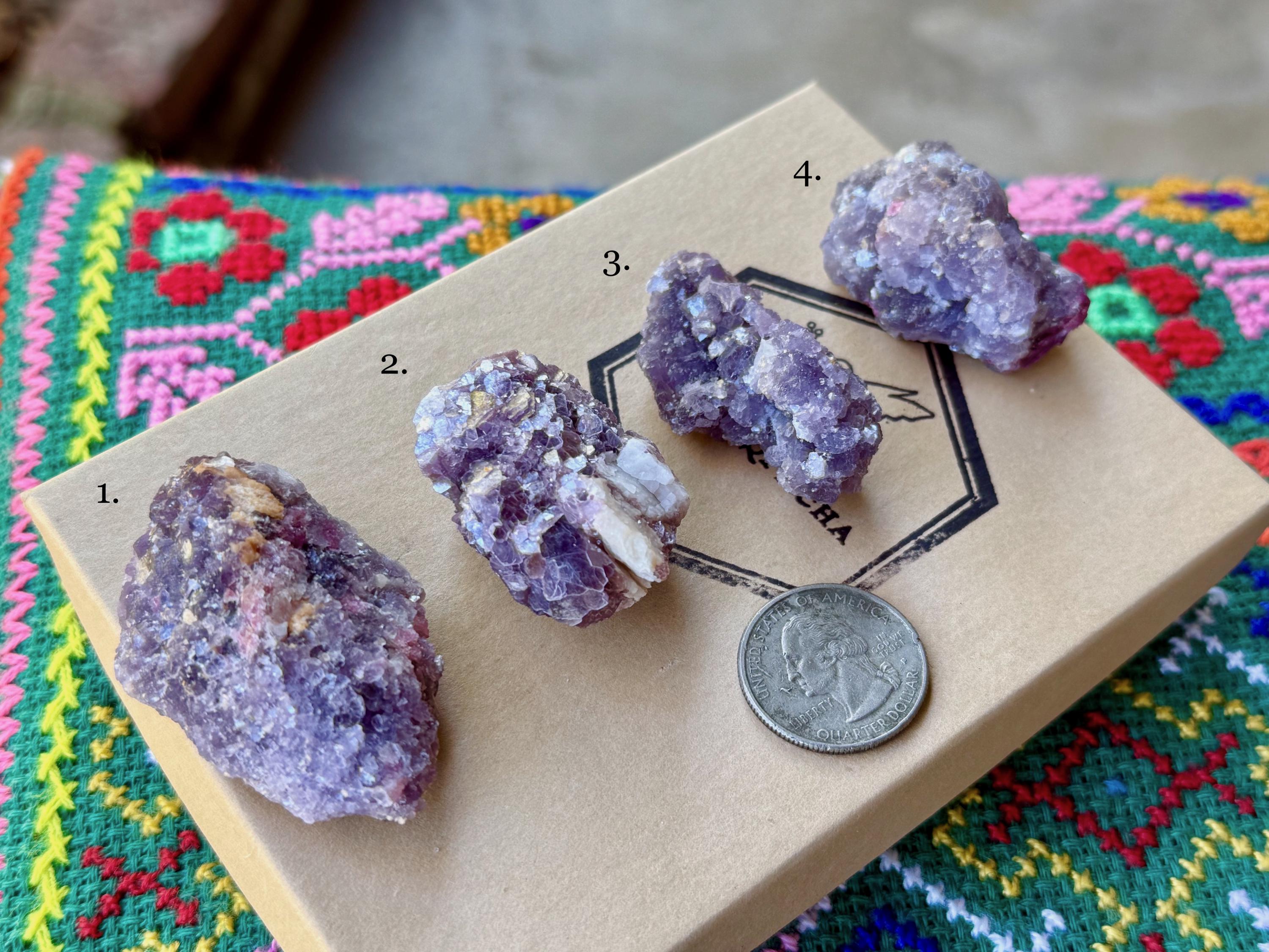 These Purple Lepidolite crystals come from a recent find in Coronel Murta, Minas Gerais, Brazil. Each selection is numbered, simply select the one(s) you'd like from the dropdown.