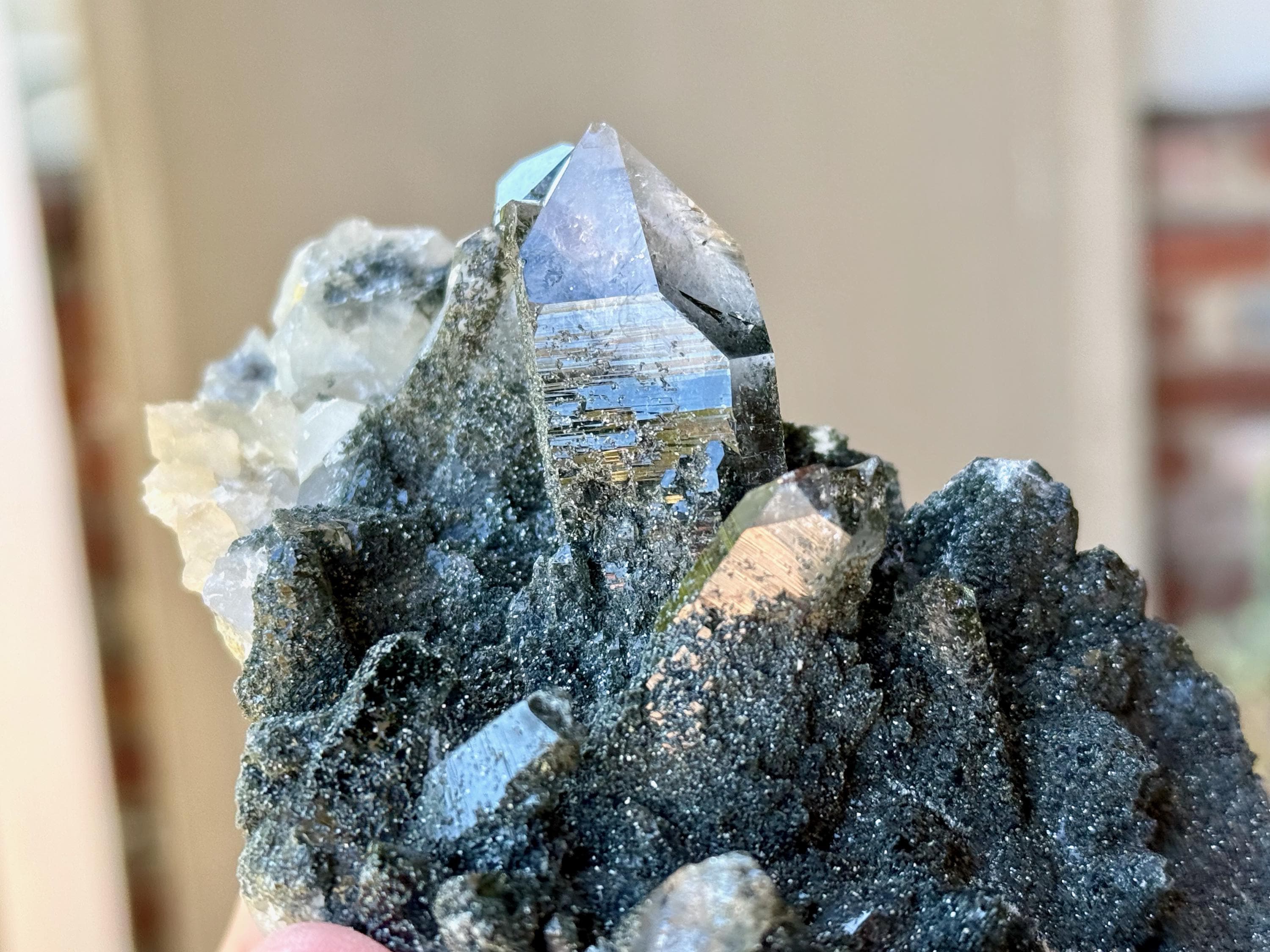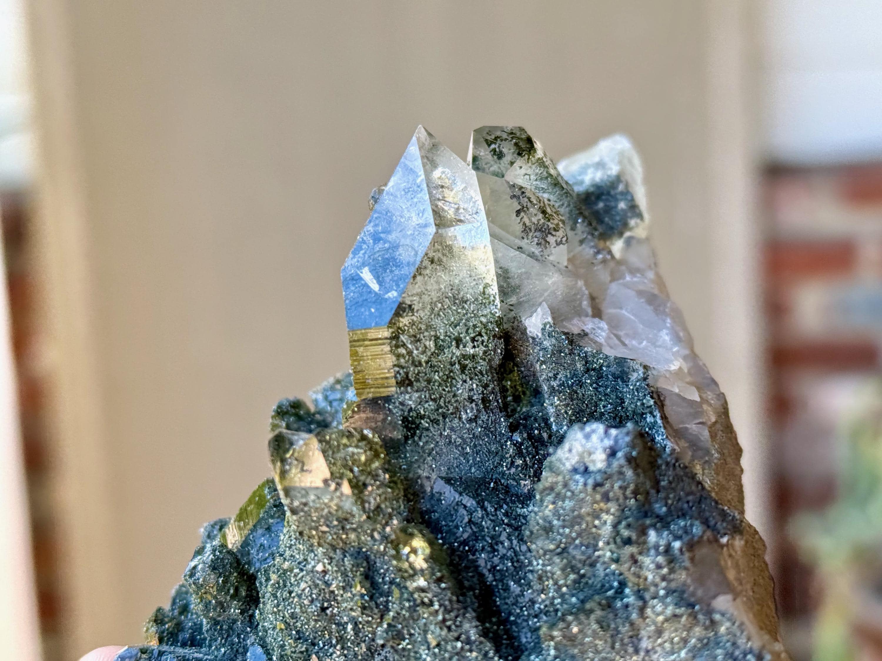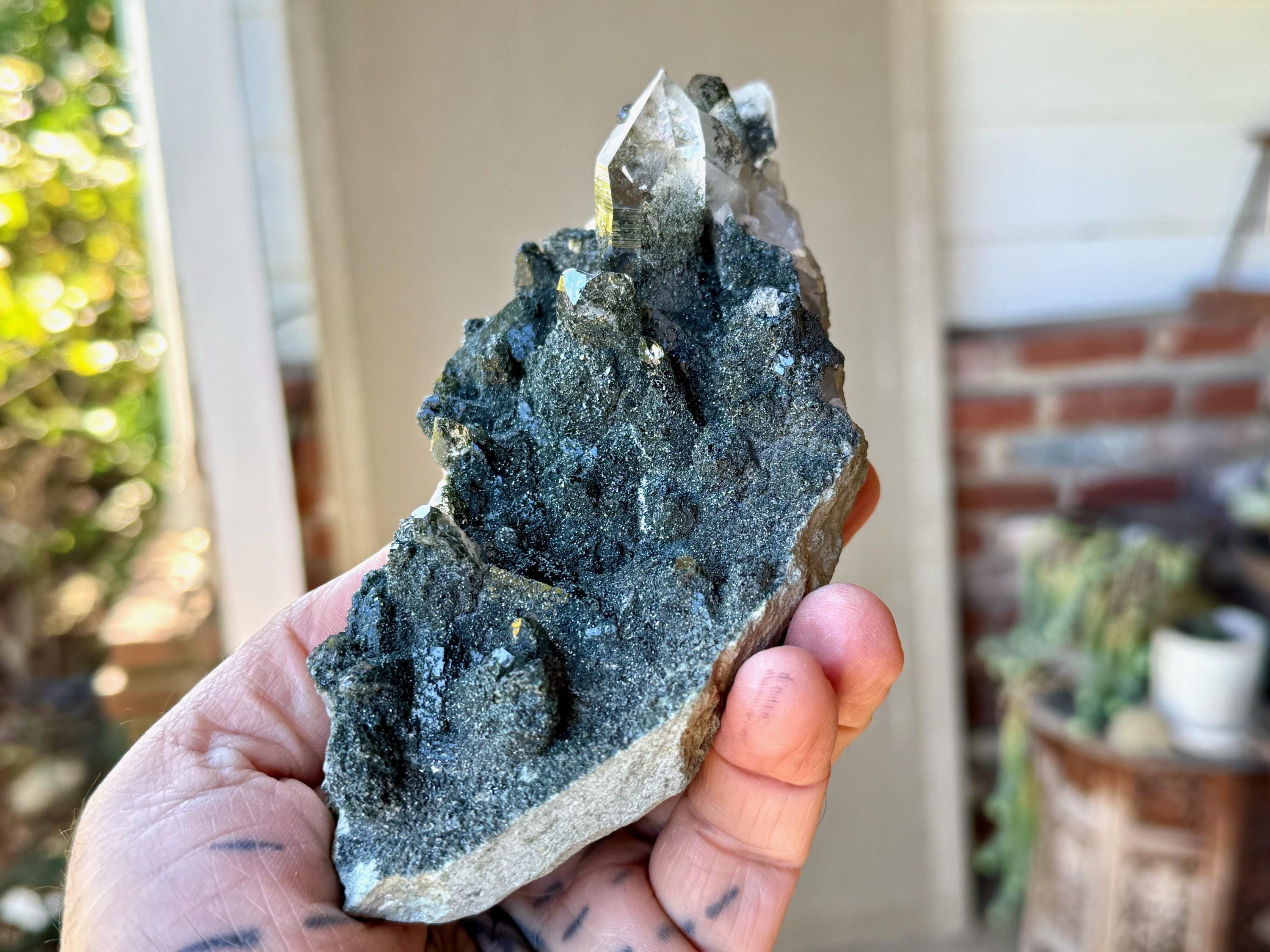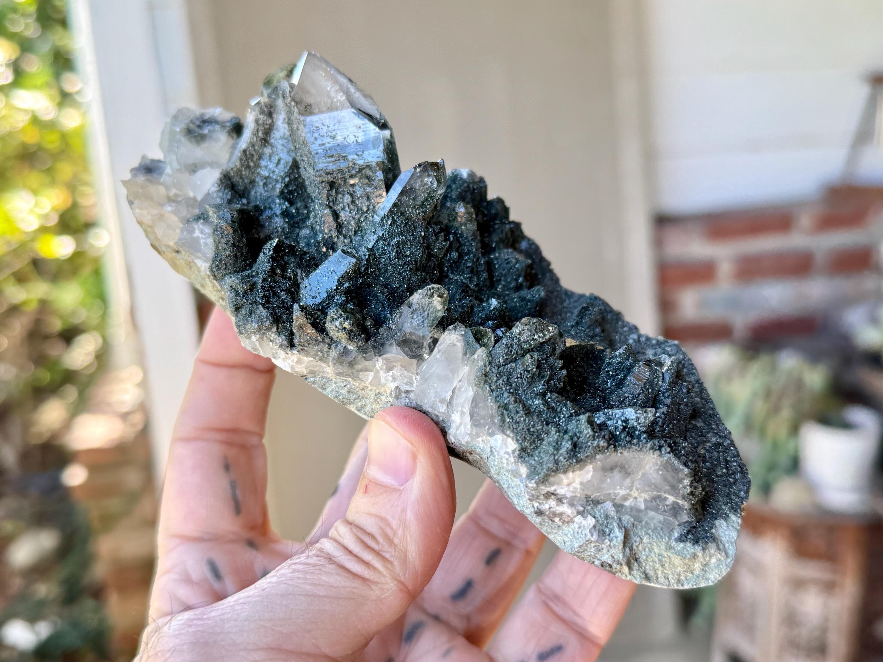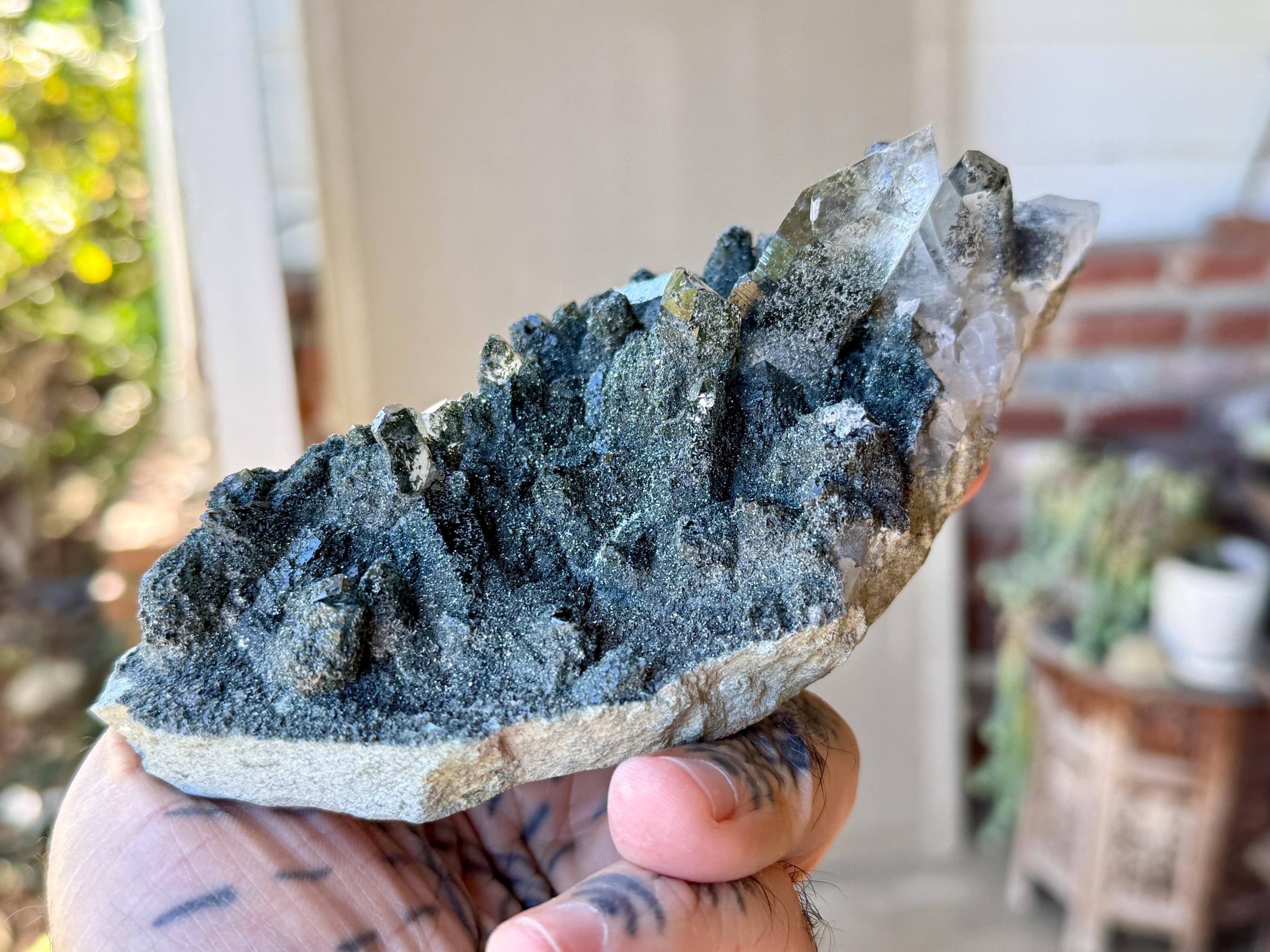 Green Chlorite is considered to be one of the most profound purifiers, heart-healers and heart openers in the mineral kingdom. Known as a regeneration crystal, it can be used to facilitate contact with high vibrational energies, nature spirits, angelic guides, and the energetic vibration of the Earth itself. When combined with quartz, its purification and detoxification properties are amplified, in both the physical body and auric body.