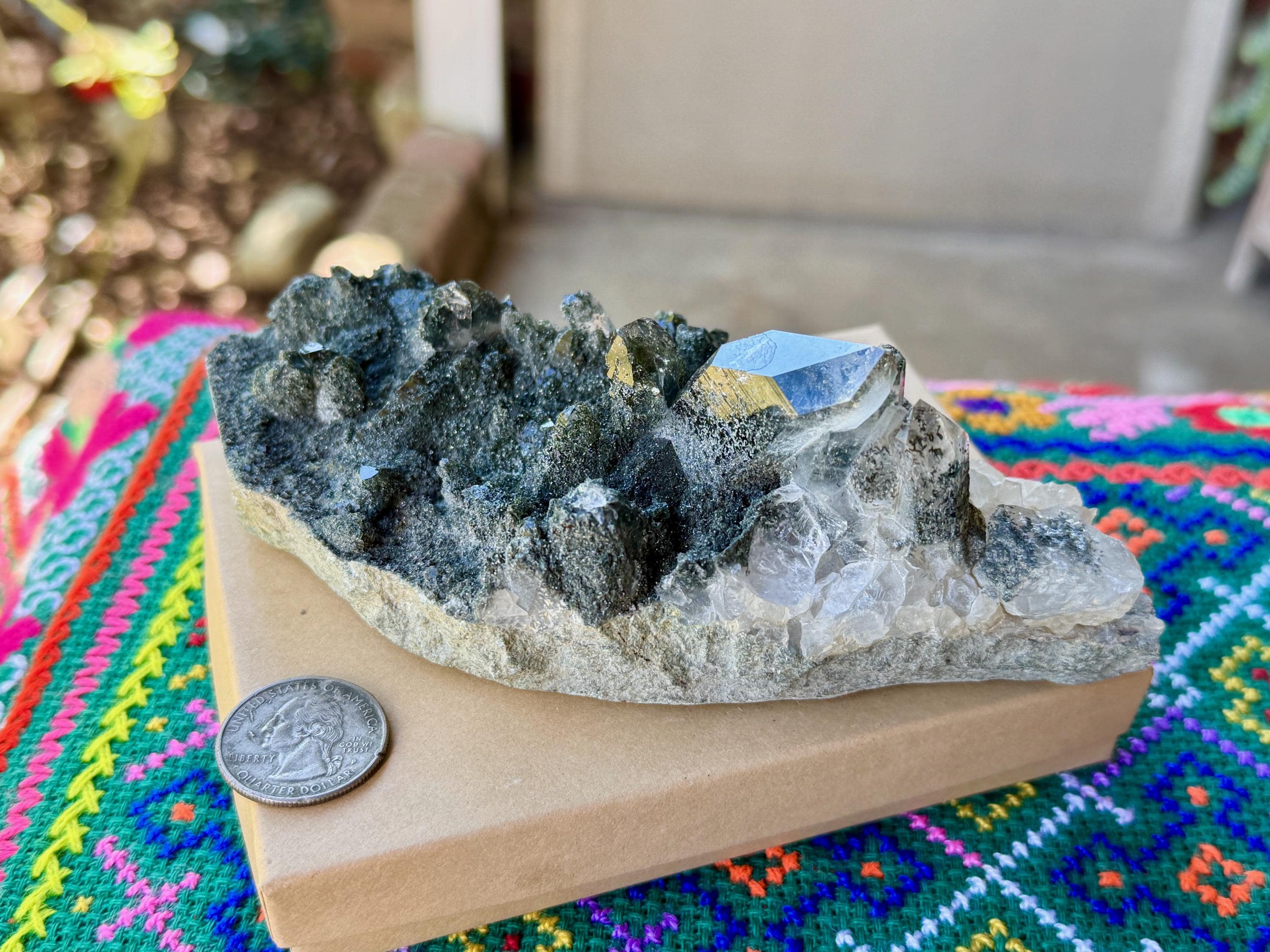 This exquisite Green Chlorite Himalayan Quartz comes from a new find in the Himalayan Mountains of India. Our source for these rare crystals are fourth generation miners (since 1942) who gather these crystals ethically by hand at altitudes of 12,000 feet (and sometimes up to 18,000 feet) with no power tools or explosives.