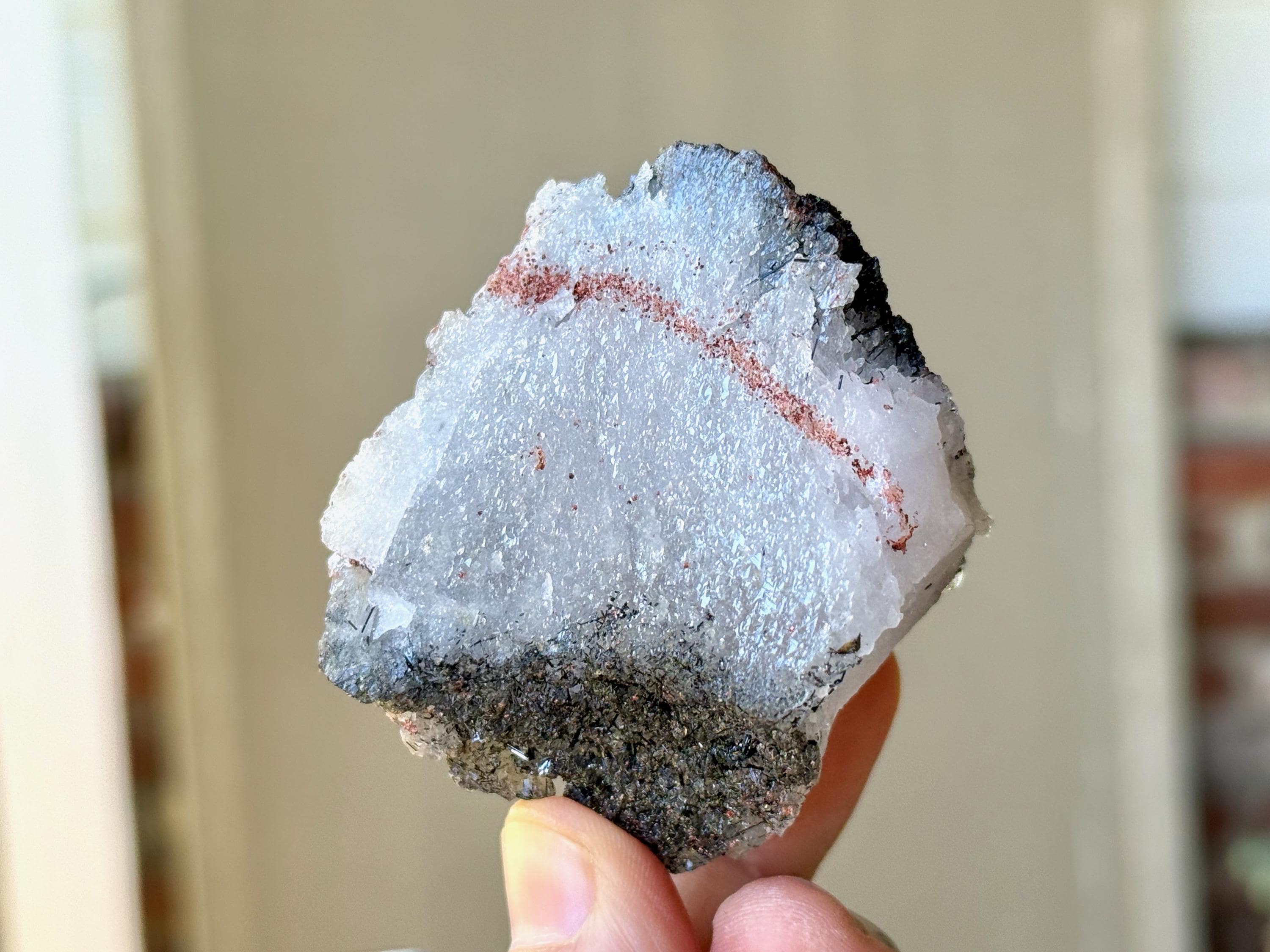 This exquisite Himalayan Samadhi Quartz with Black Tourmaline comes from a recent find in the Himalayan Mountains of India.