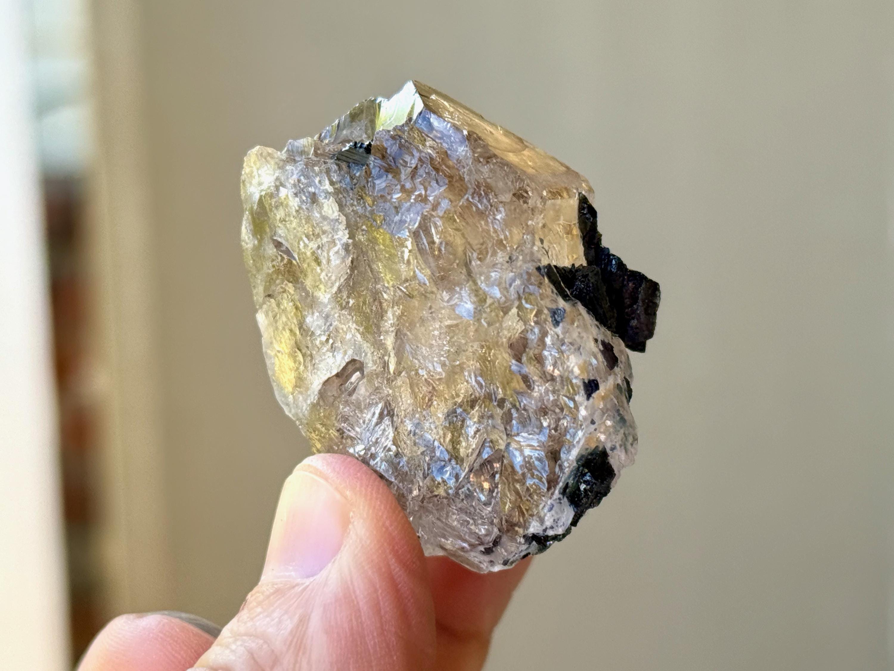 In natural light, these Tourmaline inclusions simply look black. But when backlit, they light up in an array of colors (Photos 2-6).