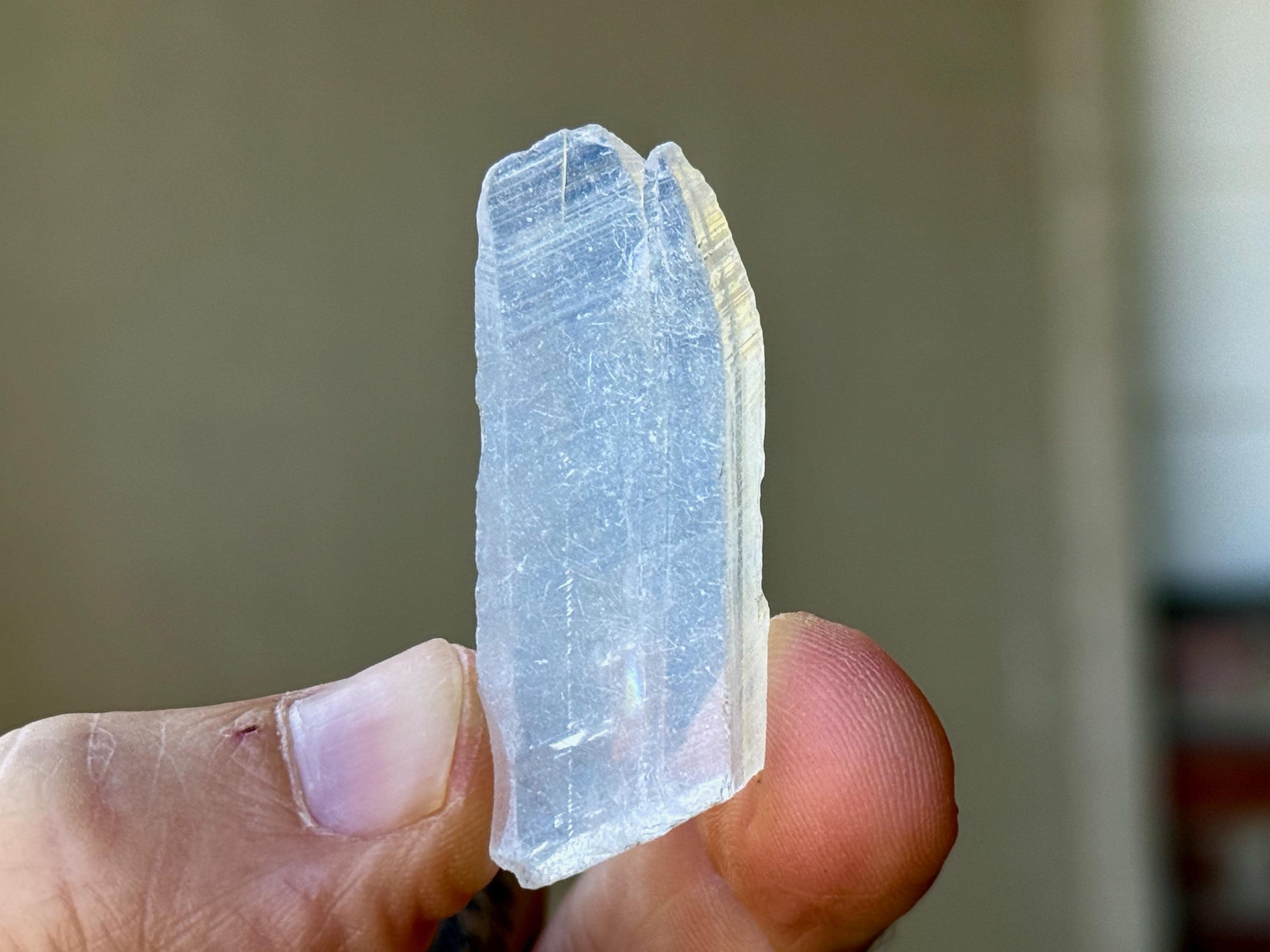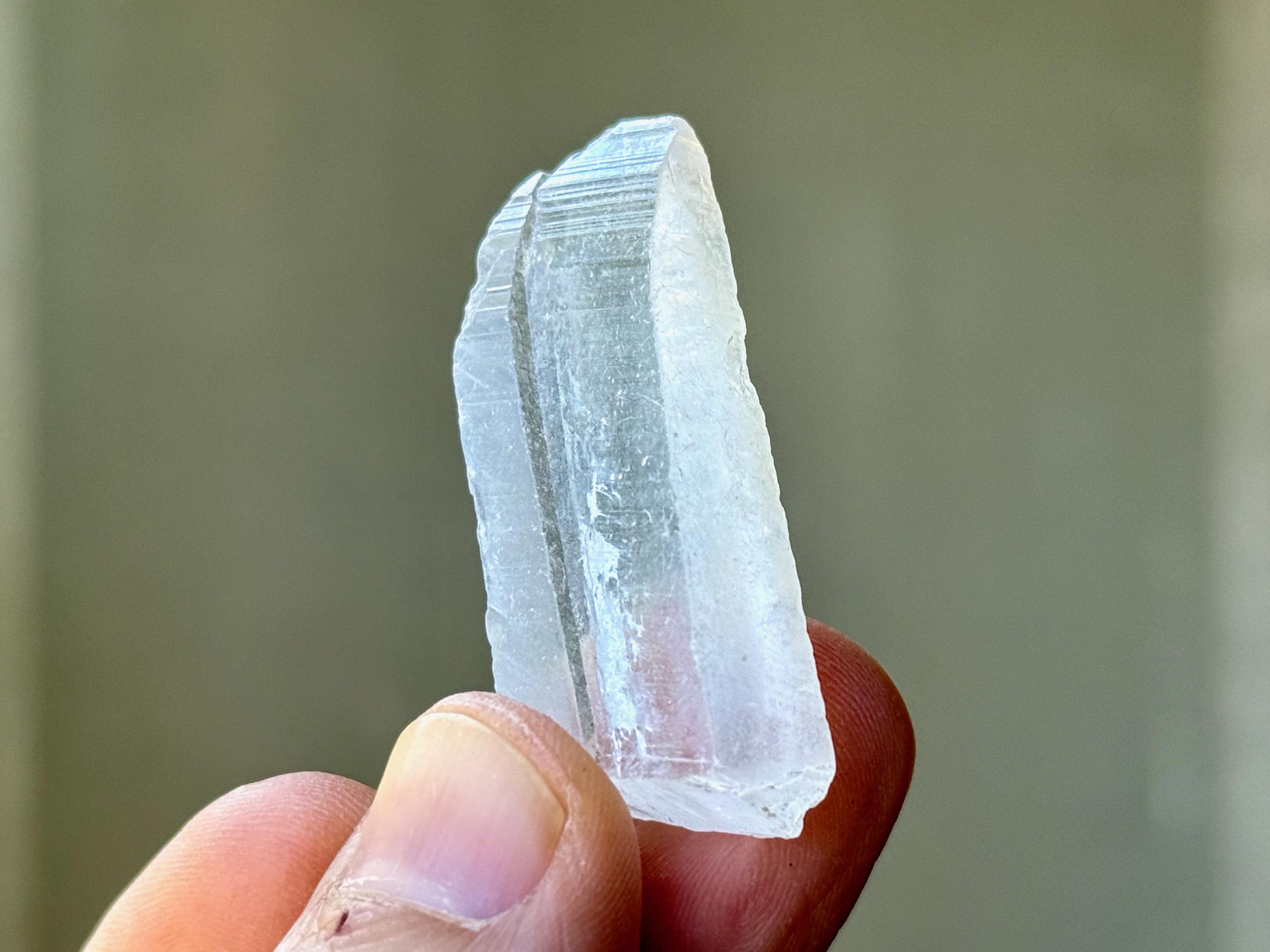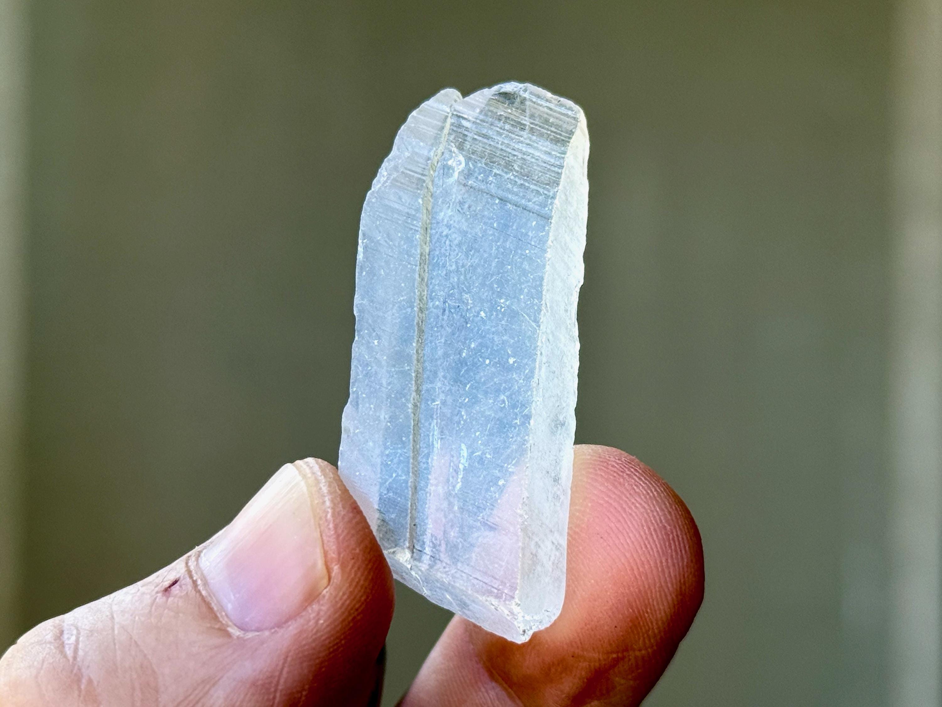 Lovely clarity and a mild "frosted" exterior to this nicely sized Nifontovite crystal in a broad formation. On both its narrow and broad sides, we can see diagonal striations that run from top to bottom.