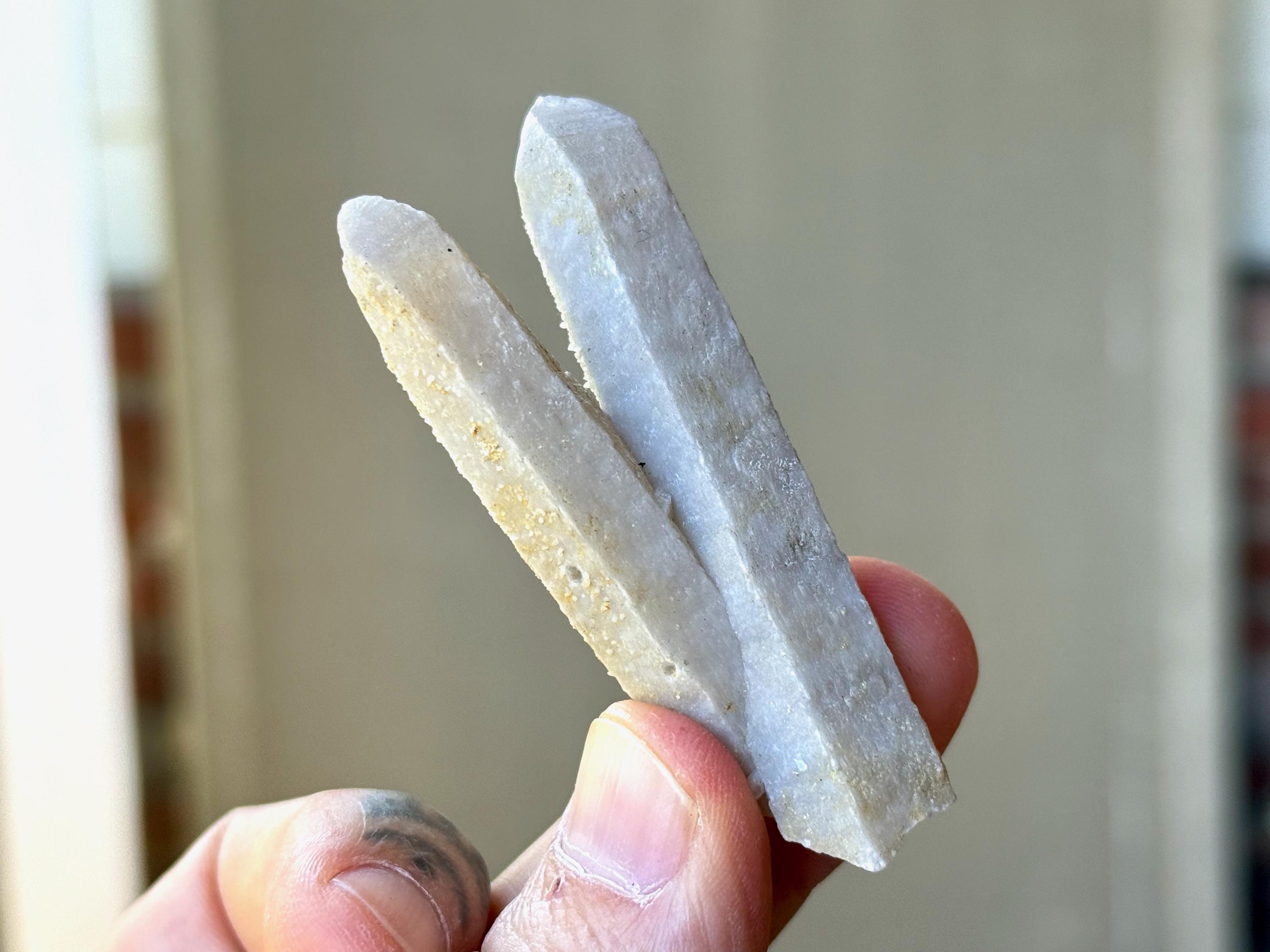 A Twin Flame is when two crystals are joined together at a V-shaped angle, unlike a Tantric Twin where they grow alongside each other. The energy is similar, however, to a Tantric Twin, as they are wonderful to use in attracting soul-mates into our lives, not necessarily for romantic relationships, but rather those who are on our same life path on a spiritual level.