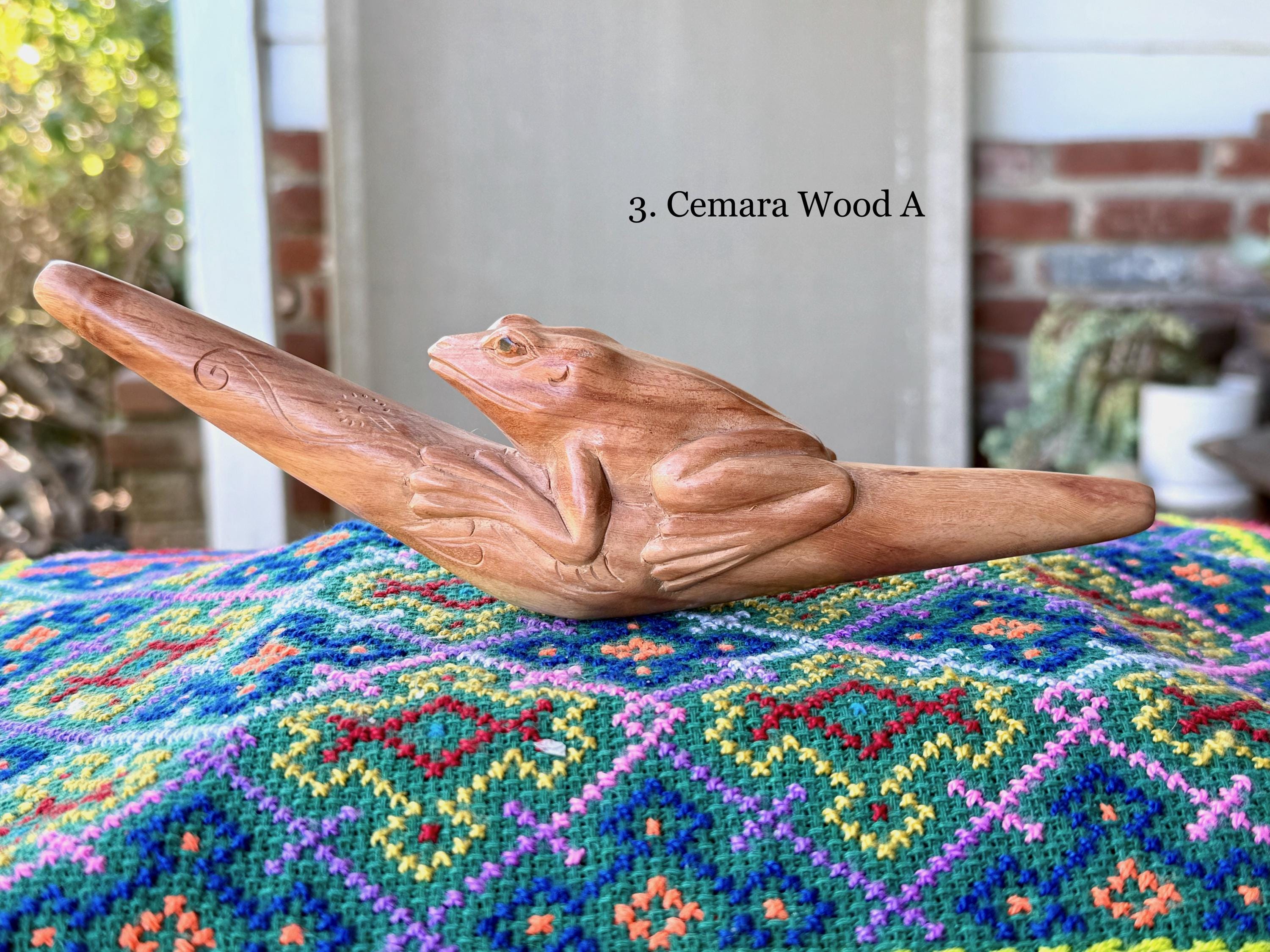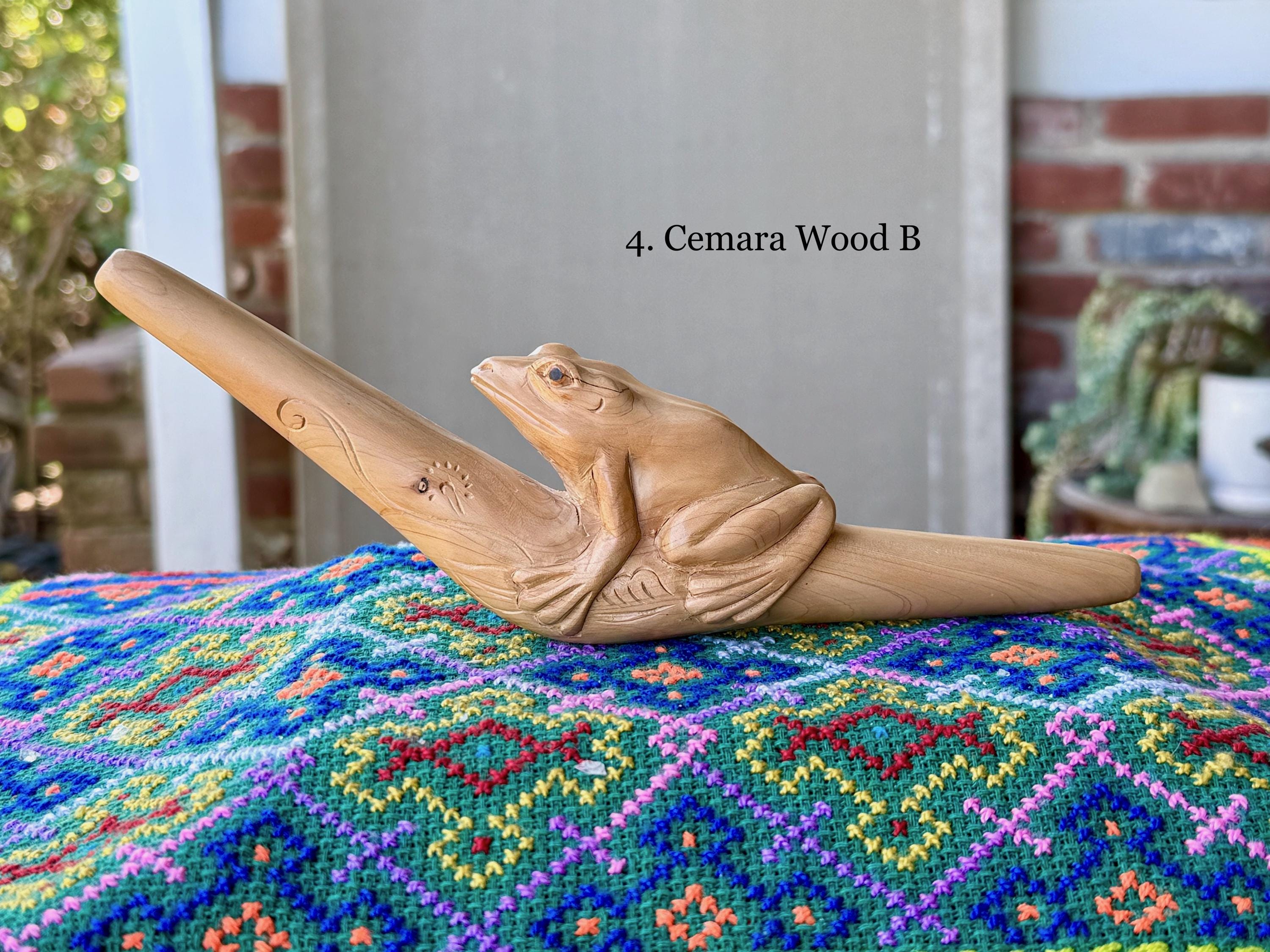 These beautiful Frog Tepi Pipes for hapé were hand carved from native tropical hardwoods. Each selection is numbered, simply select your preference from the dropdown menu.