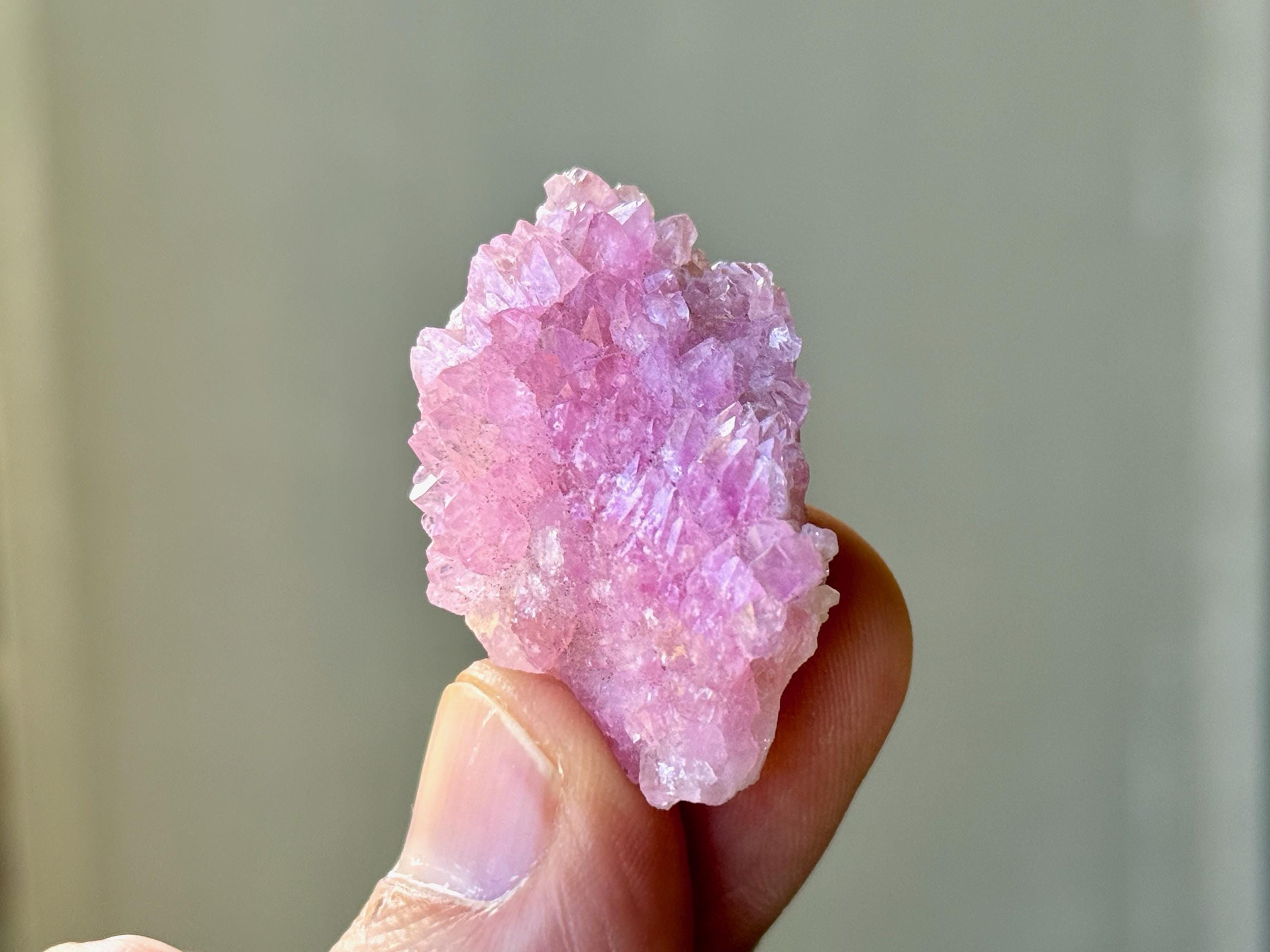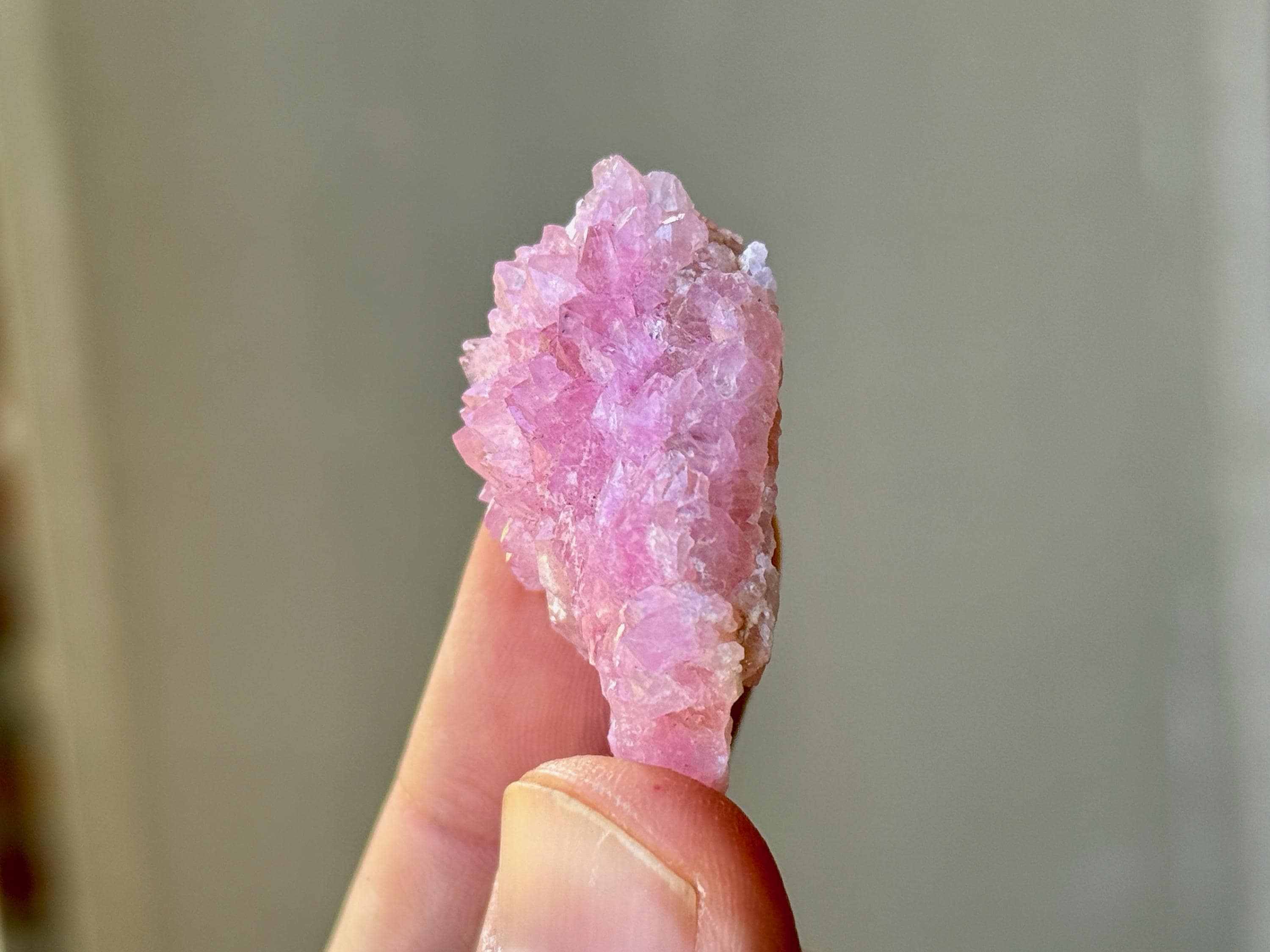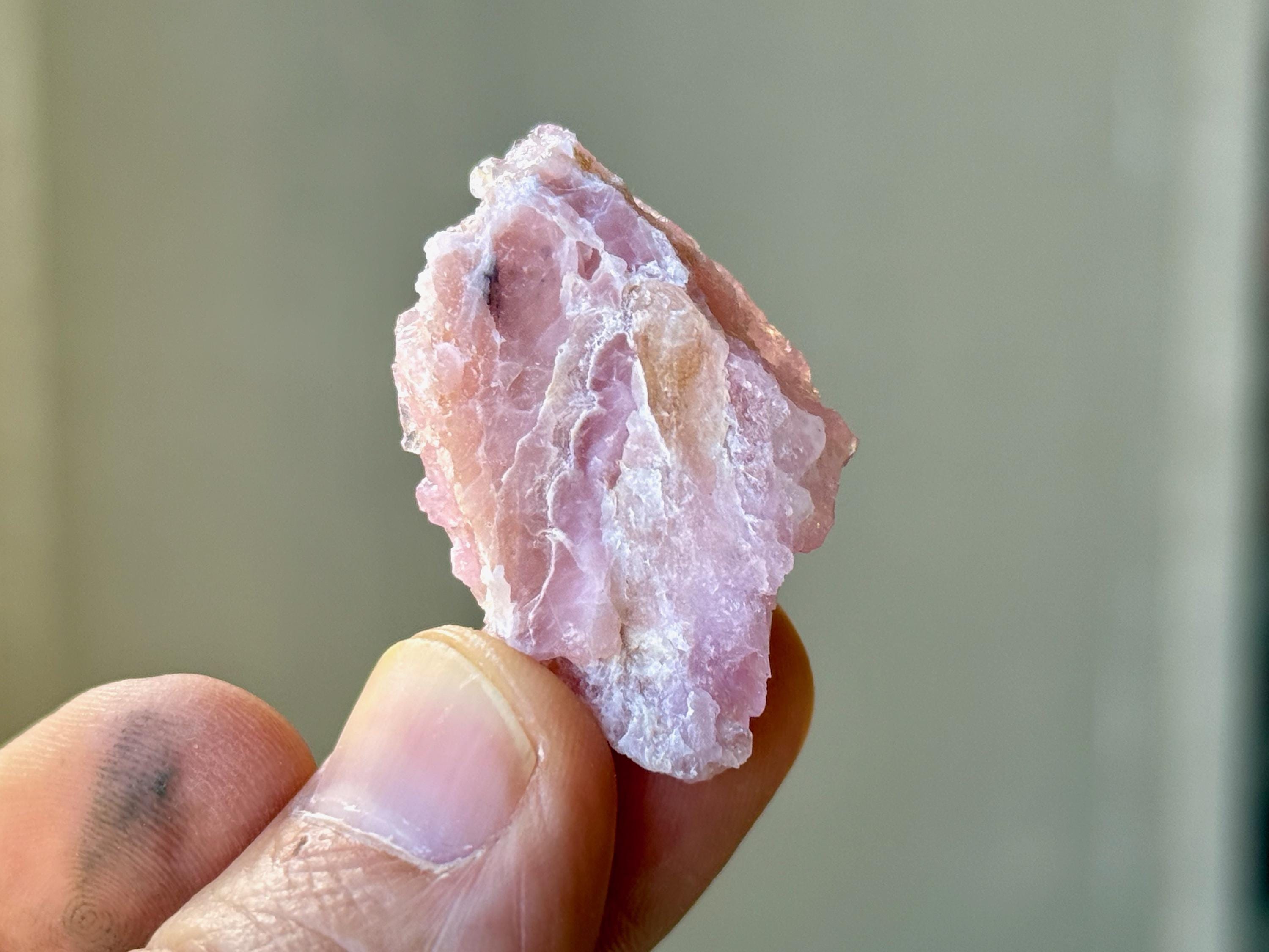 Exquisite luster and a juicy, vibrant pink color to this stunning Canga Rose Quartz in a crystallized formation. This piece is ENTIRELY Canga Rosa with no other matrix. When backlit, we can see just how well this piece passes light (Photos 3-4).