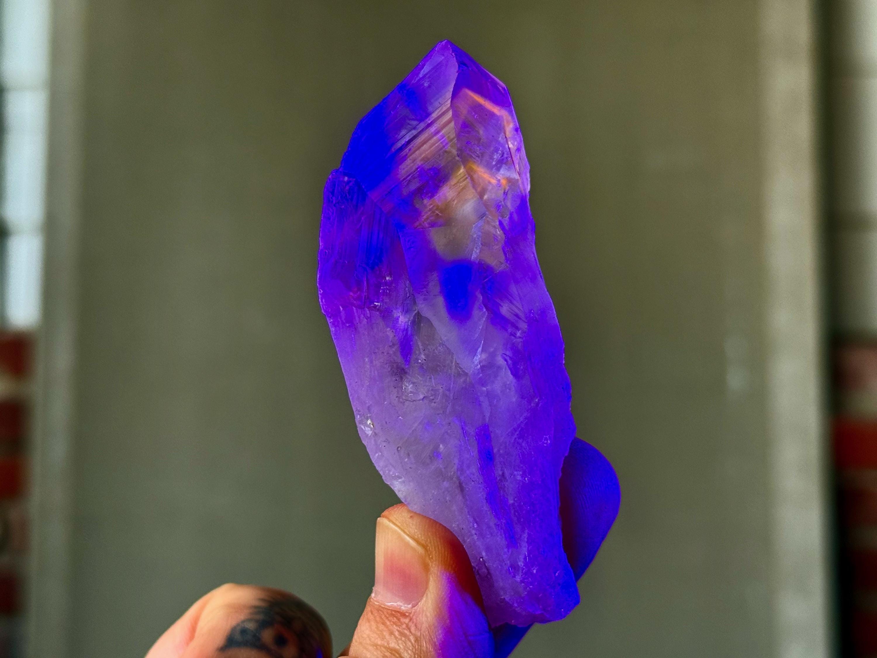 **Please note, the inclusions in this crystal are all natural/untreated. A UV light is necessary to see the phantoms glow, and they can be found affordably at Amazon or any other online outlet. Also, please note that the dark purple hues in the UV-lit photos are a result of the UV light itself and not the color of the crystal. The natural color is shown in the natural-light photos included in this listing.