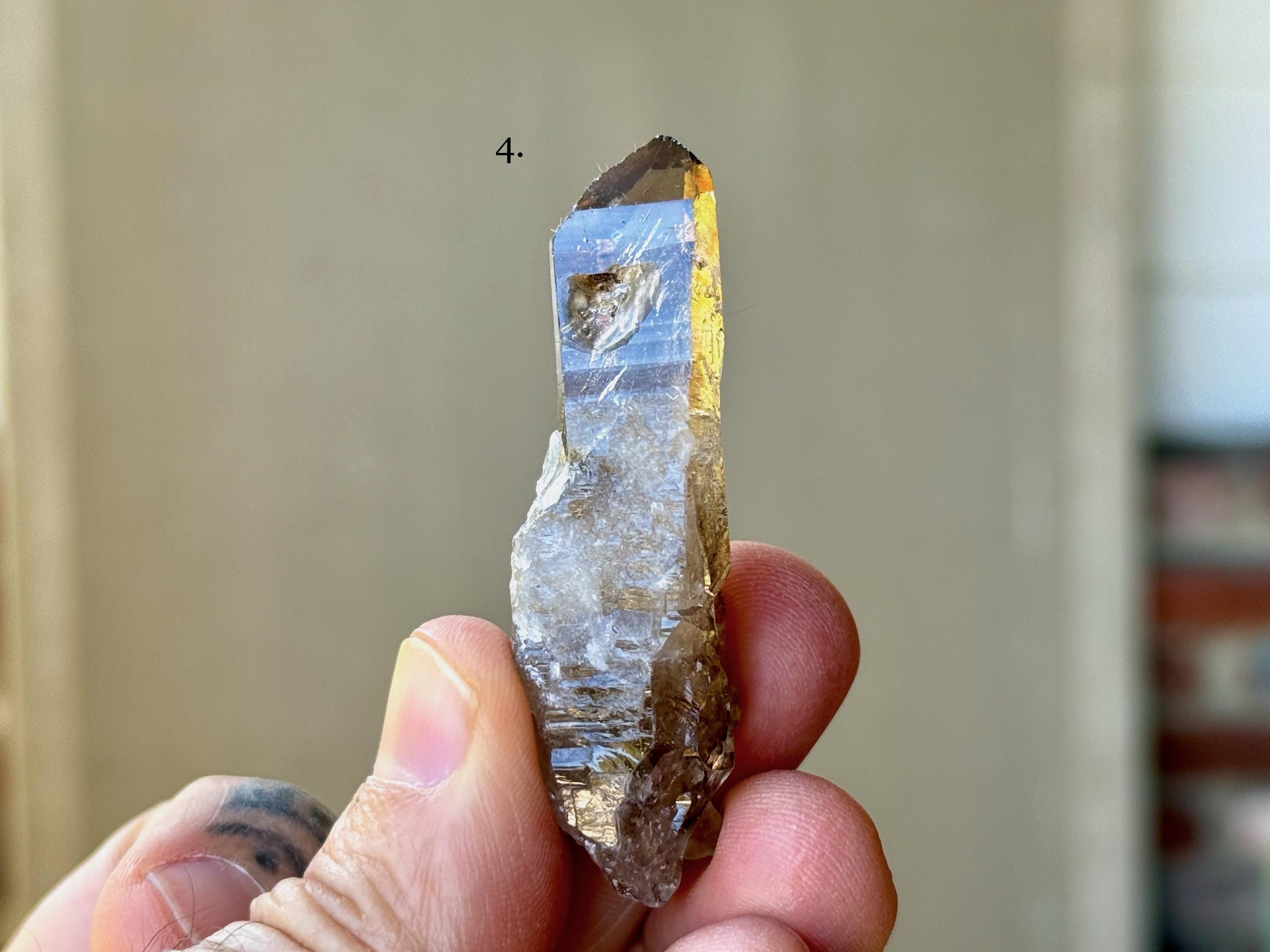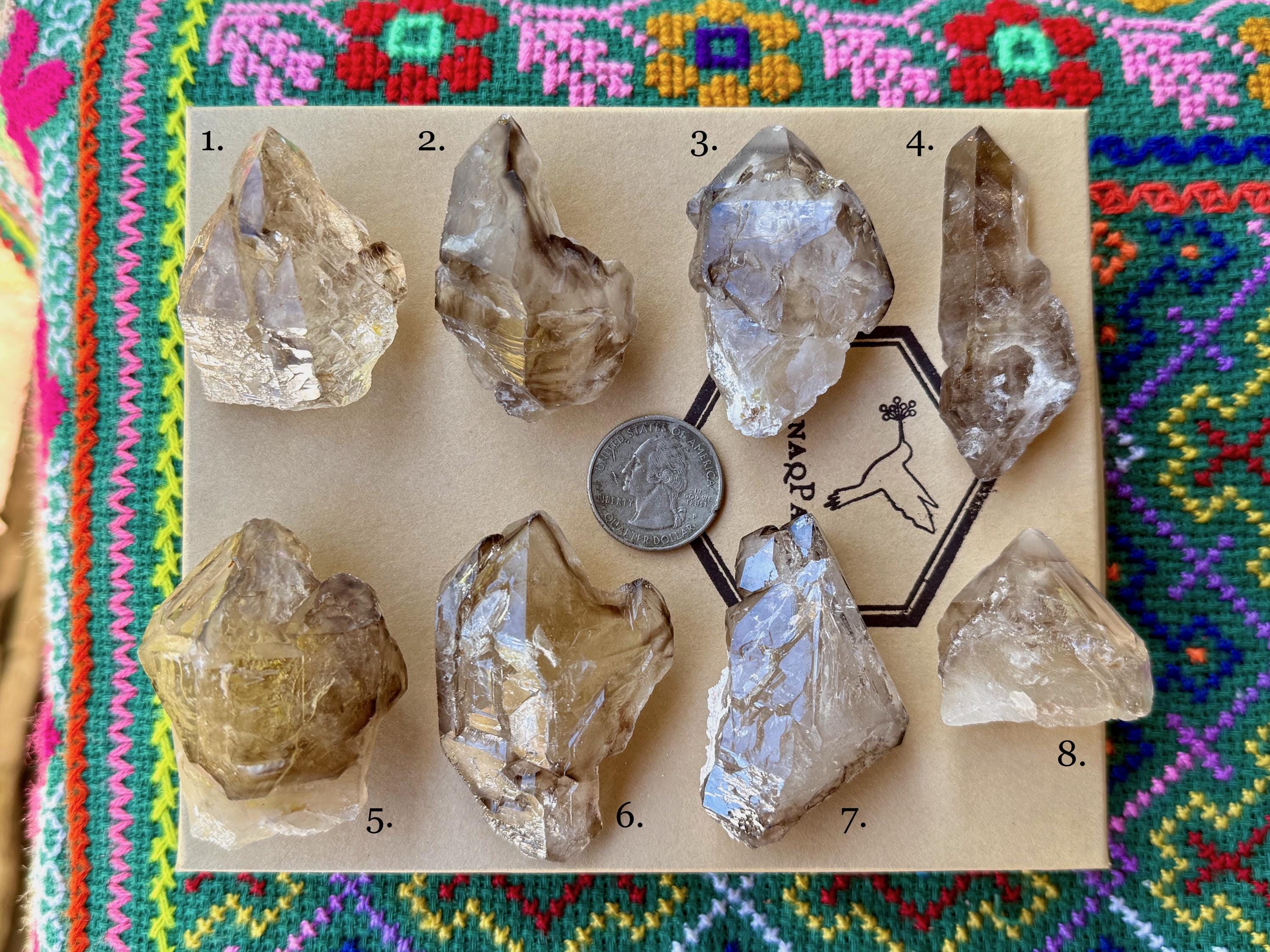 These beautiful Smoky Elestial Quartz crystals come from a recent find in Aracuai, Minas Gerais, Brazil. Each selection is numbered, simply select the one(s) you'd like from the dropdown.