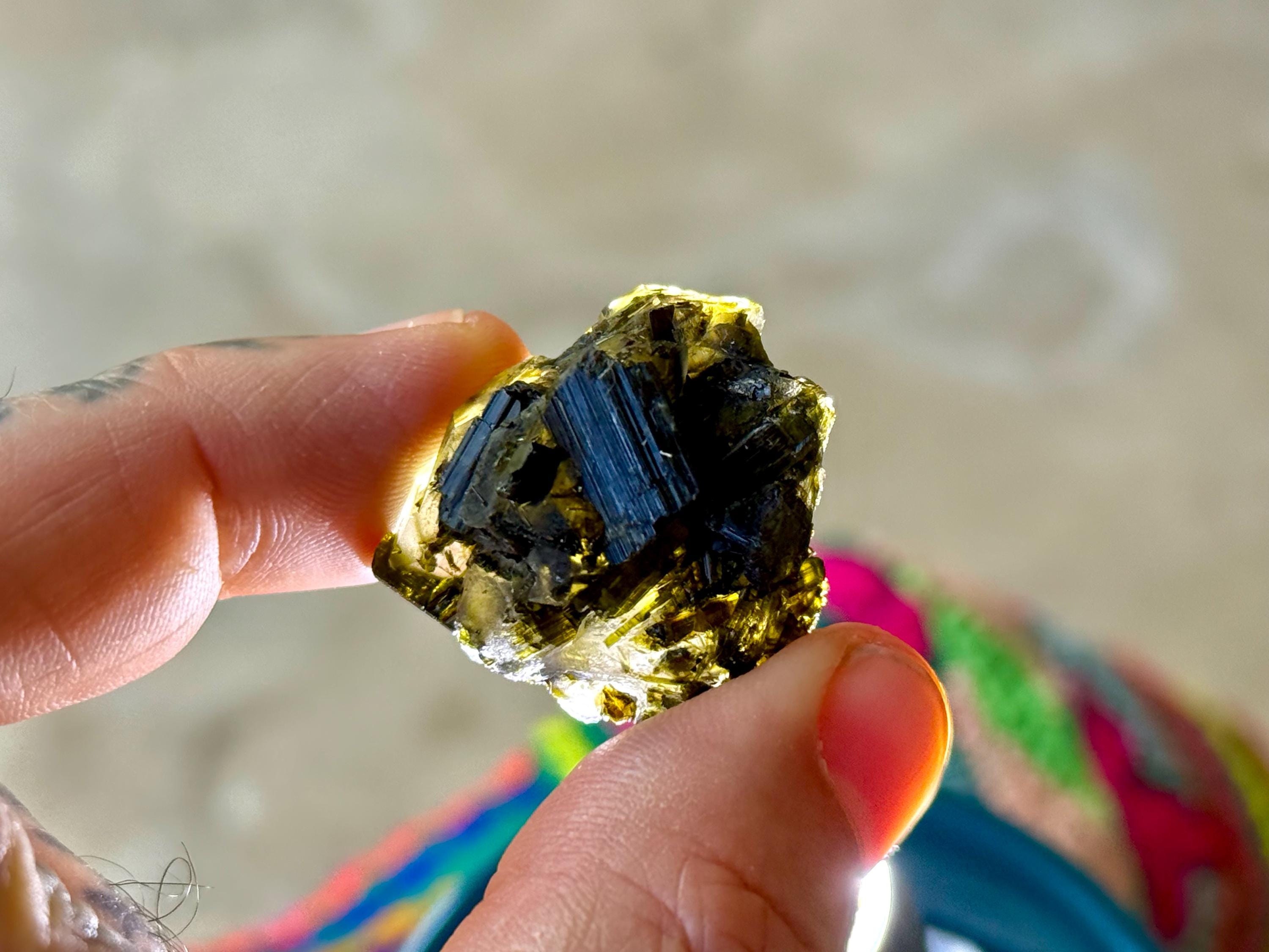 The crystals from this find include unique combinations of Quartz, Lepidolite, Citrine, Cleavelandite, Albite and Feldspar, with vividly colored Tourmalines in lovely hues of green, pink, purple and blue. Crystals with combinations of these minerals are sometimes referred to as "Unicorn Stones."