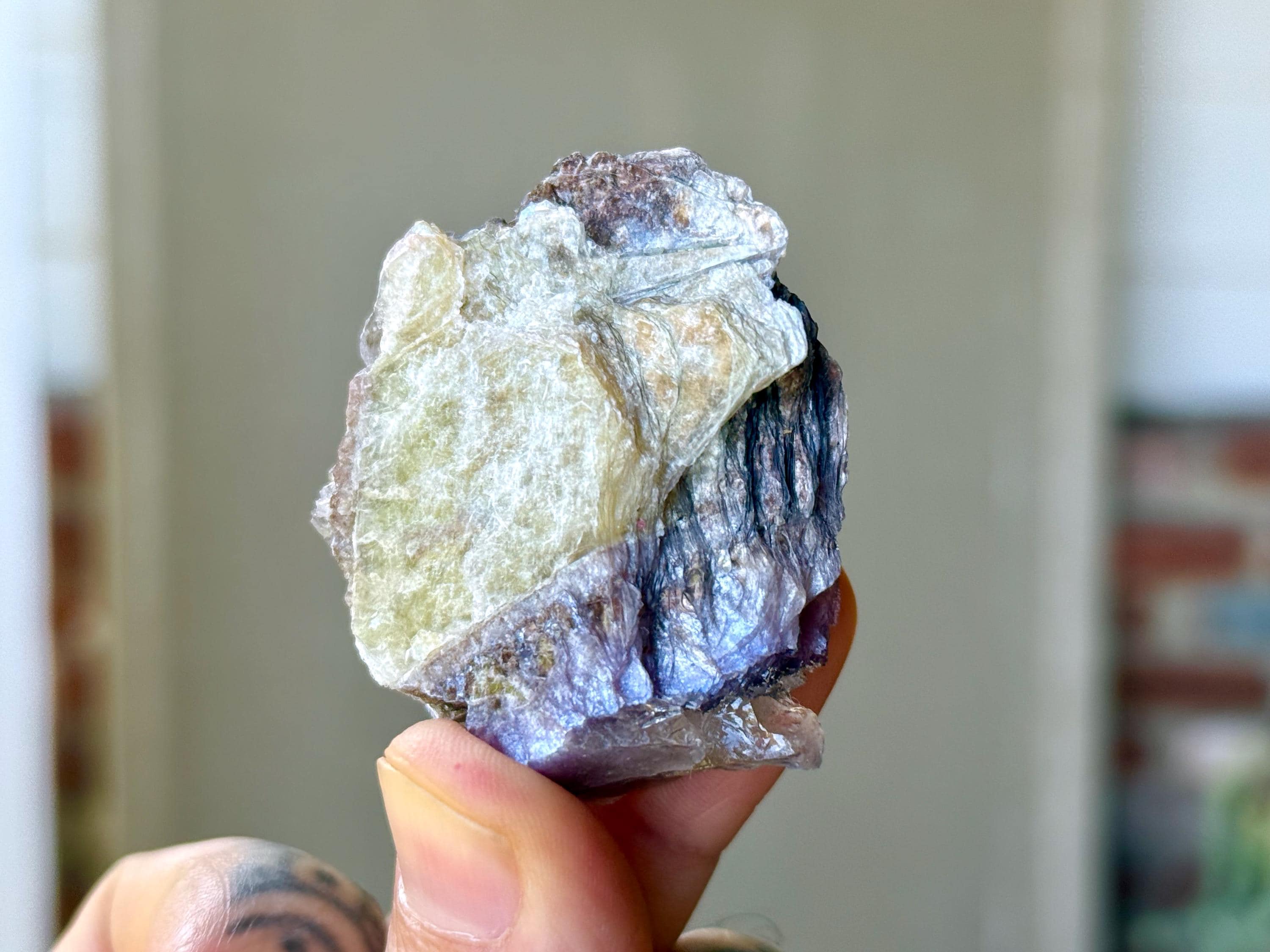 This Bicolor Lepidolite crystal comes from a recent find in the area of Coronel Murta, Minas Gerais, Brazil. Lepidolite has a strong relaxing, balancing and calming effect. Because of this it is widely known and used for many emotional issues, especially relief of stress and anxiety.