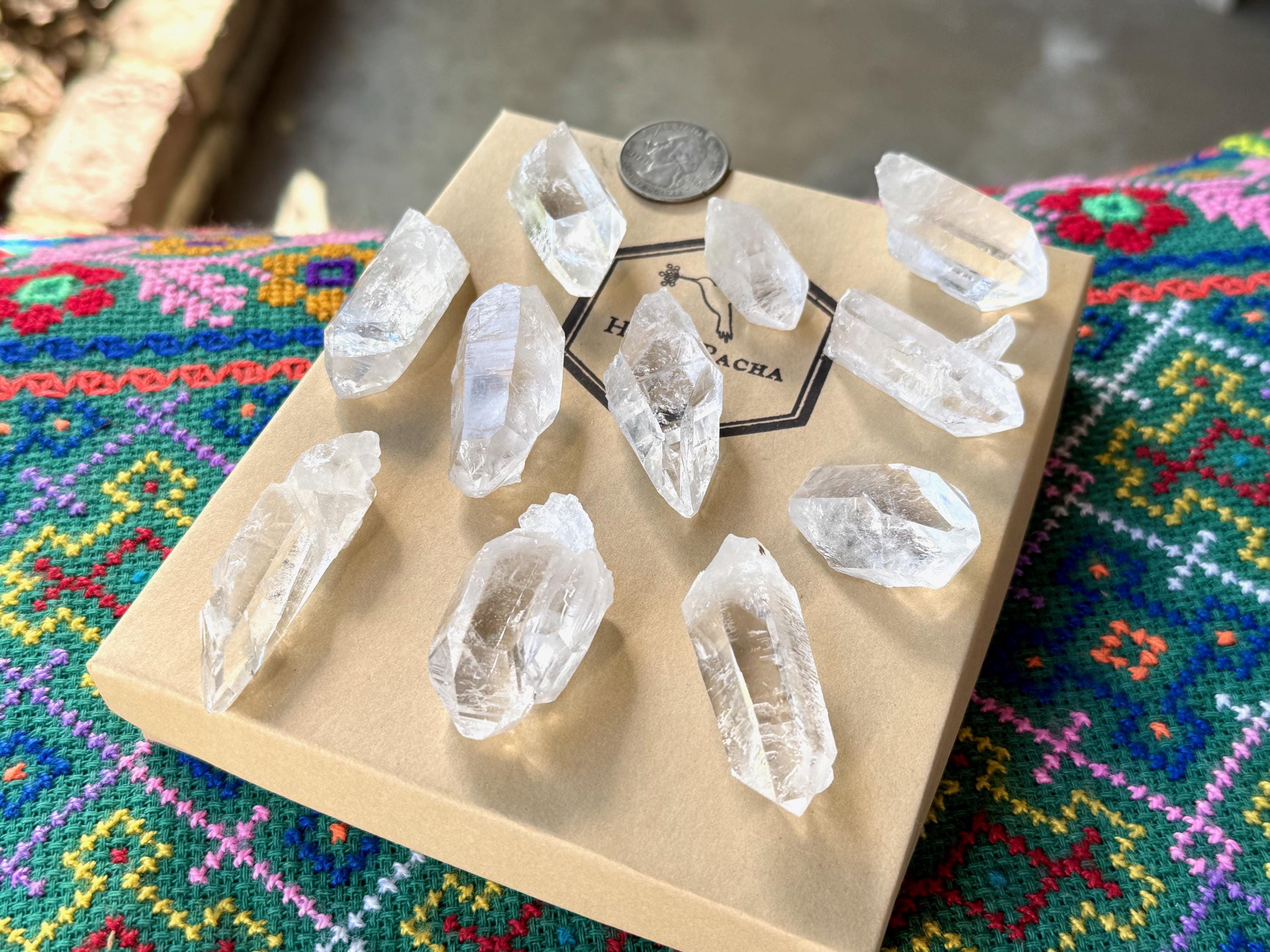 Each crystal has at least some type of natural "Starbrary" markings (some have just a few and other have a multitude of them). These are all "point" formations (i.e. no clusters). While there may be a very minor "fleabite" here or there, all the terminations are intact and most are excellent.