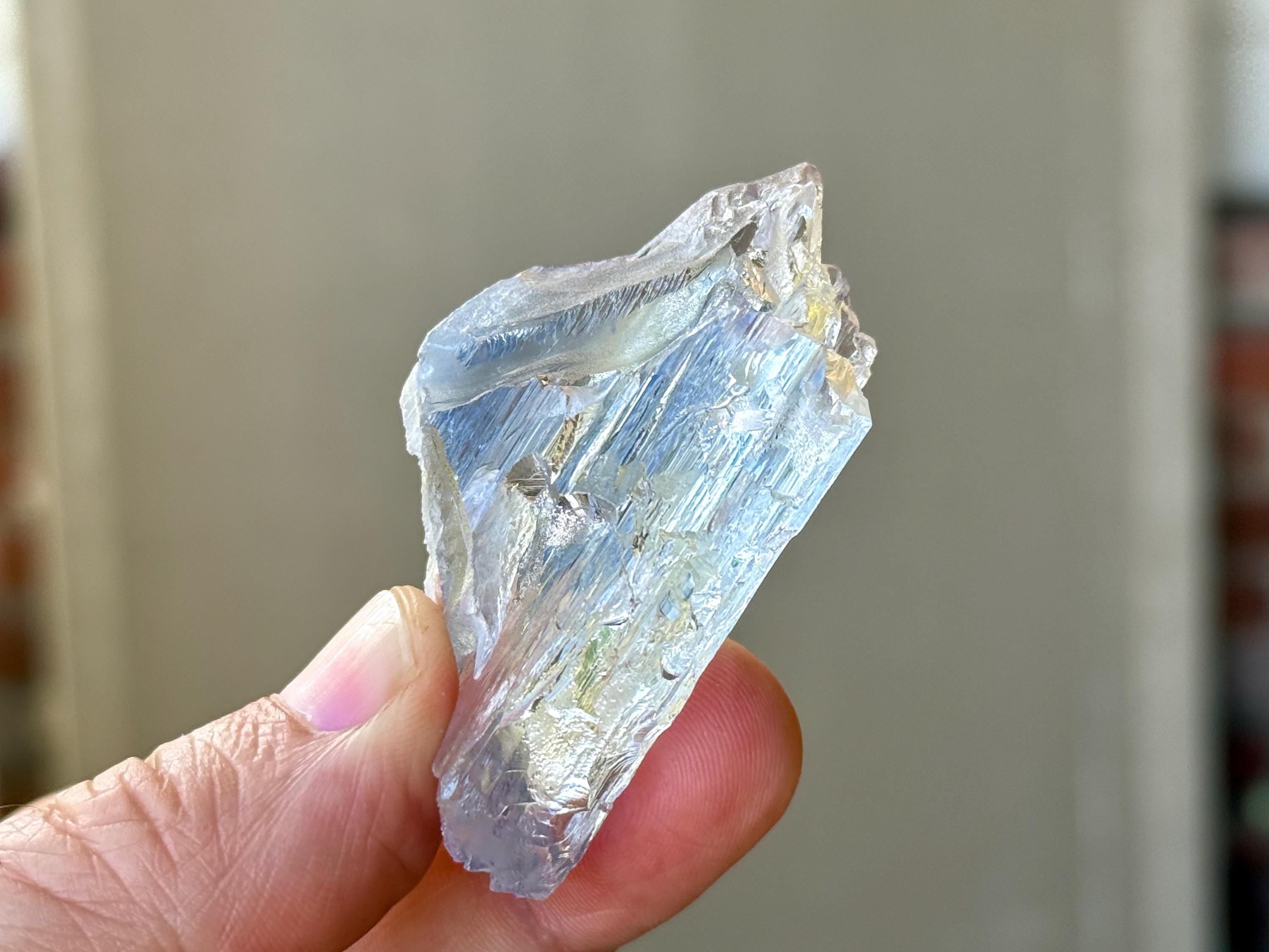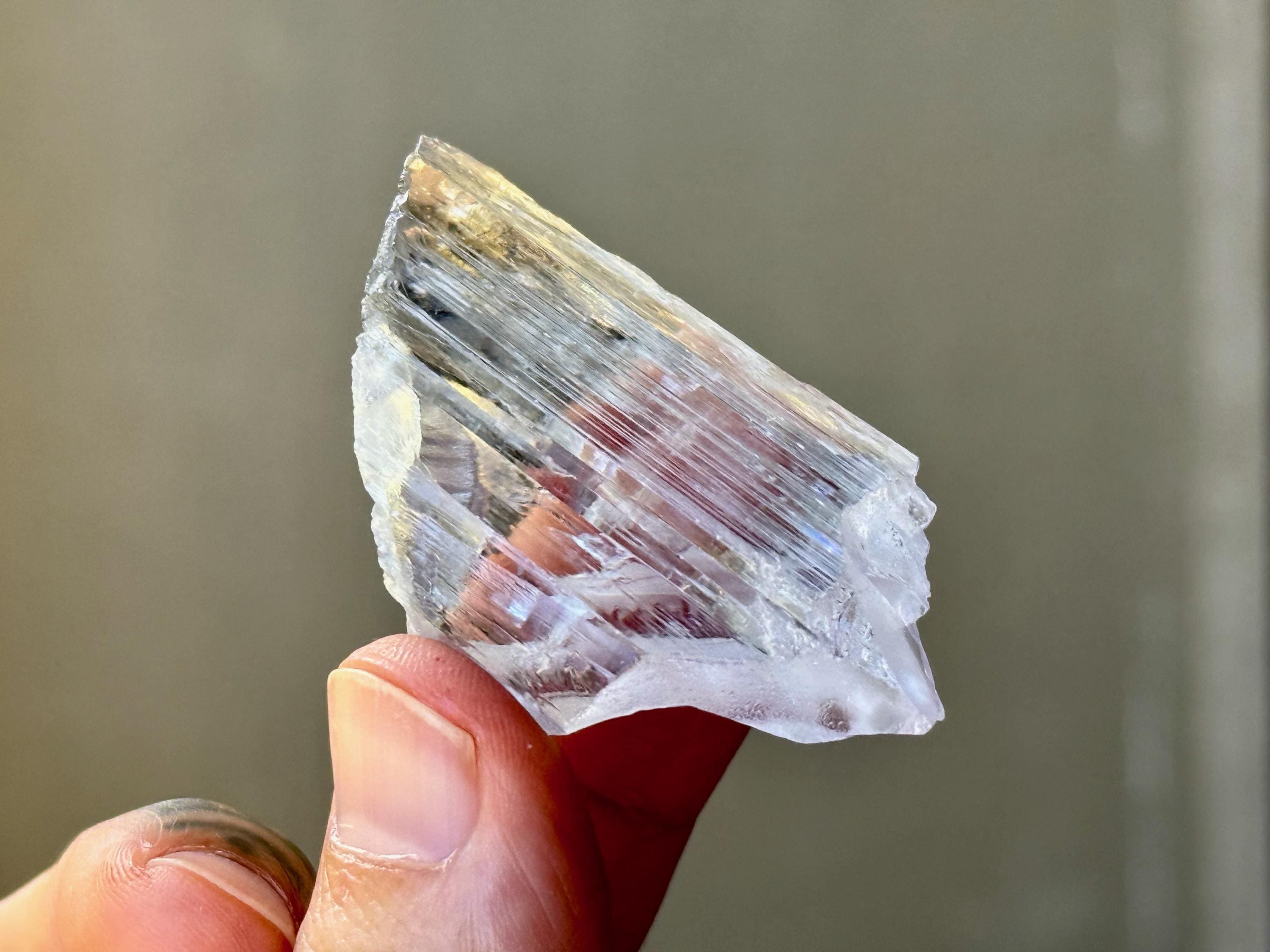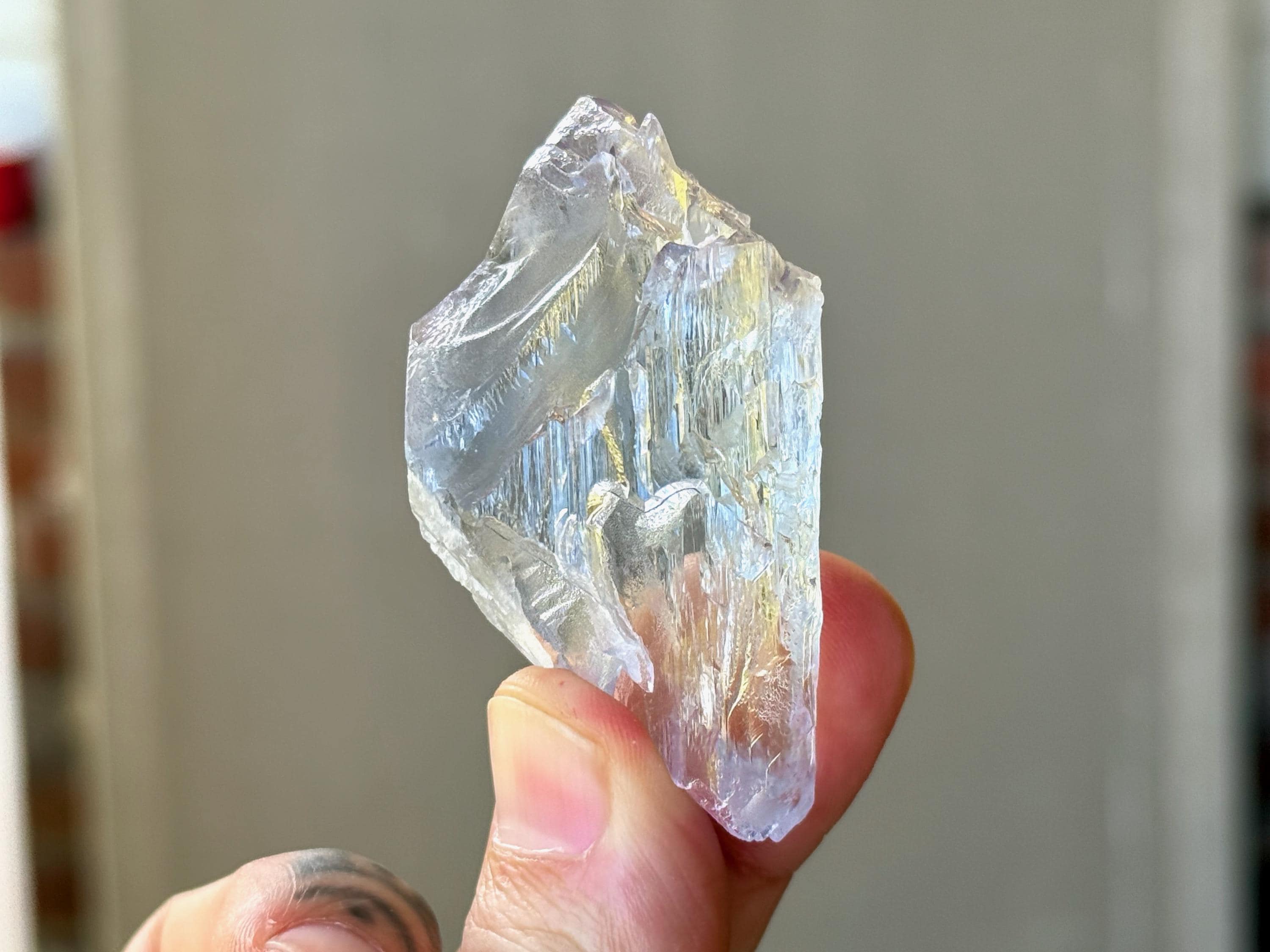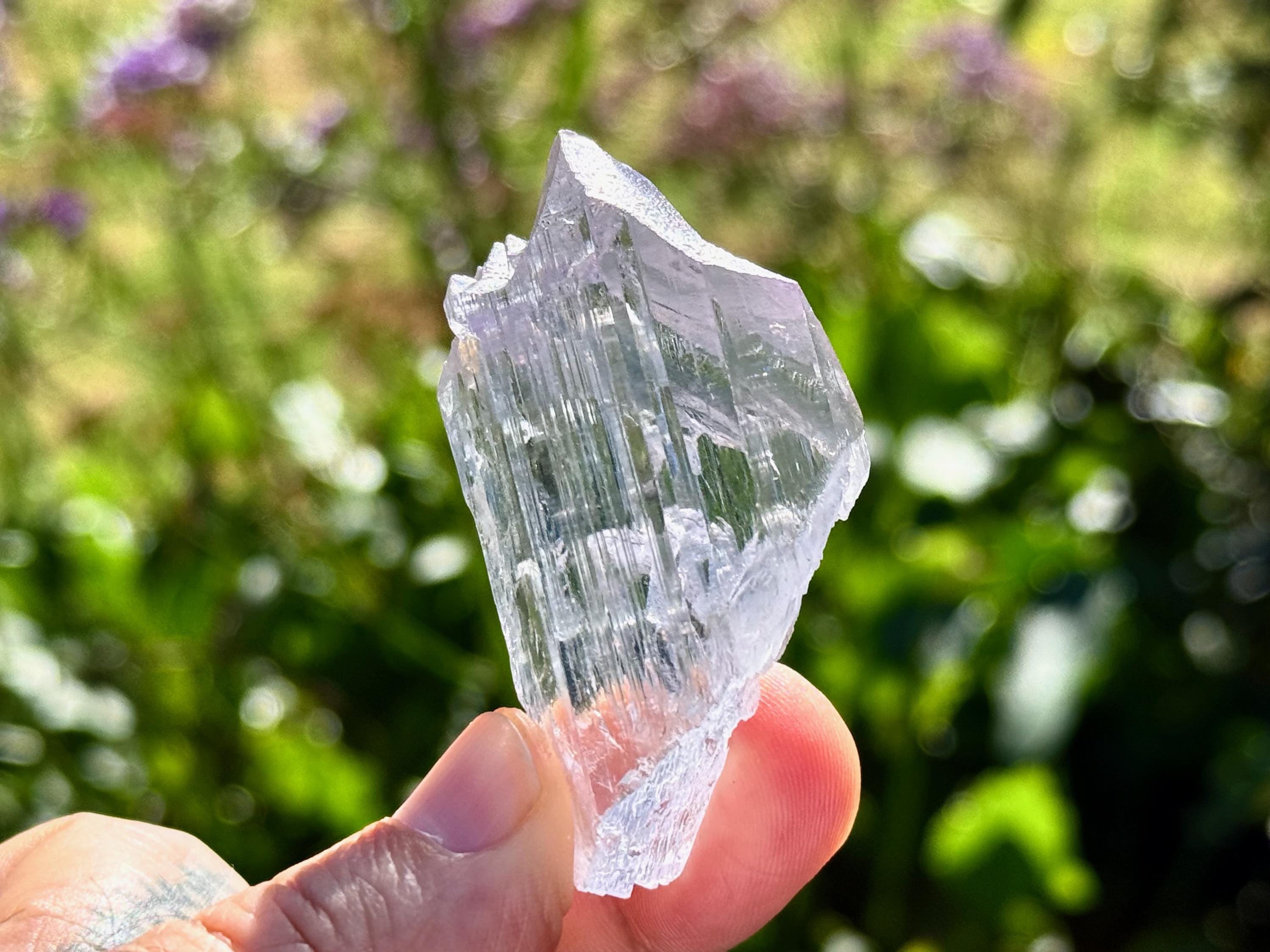 **Please note, Kunzite has the tendency to fade in color with prolonged exposure to sunlight. It is generally a slow process and will not happen in hours or even days, but we advise not keeping Kunzite displayed for extended periods of time in direct sunlight.**