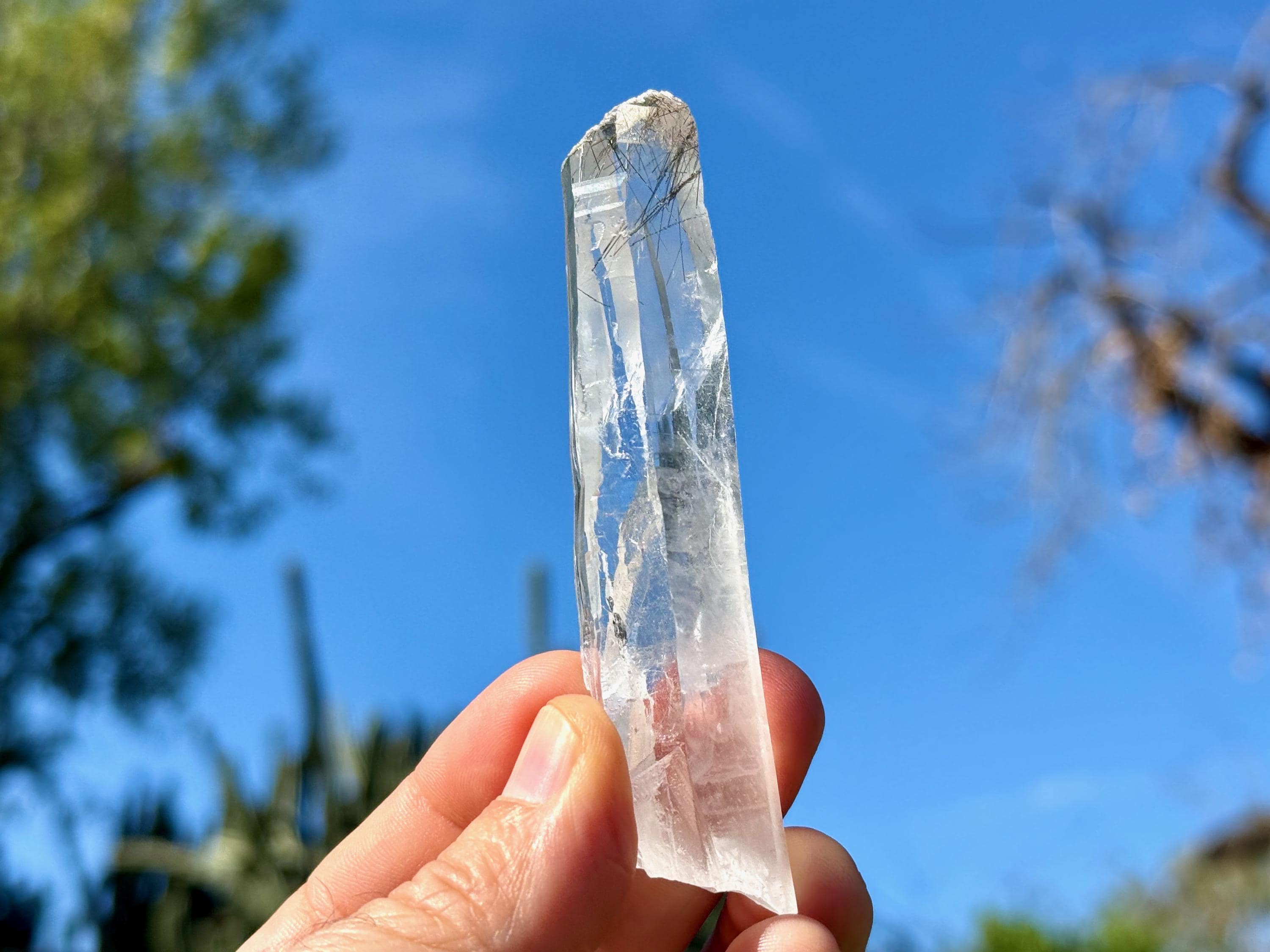 Laser Quartz is a term referring to a type of Quartz formation that is often elongated and tapered toward the top. These crystals are considered to be useful allies in energetic healing, specifically for concentrating energy at a particular point. This can be useful in personal healing work to alleviate chronic pain, etc. Laser Quartz are also useful tools in clearing physical areas of heavy energies.