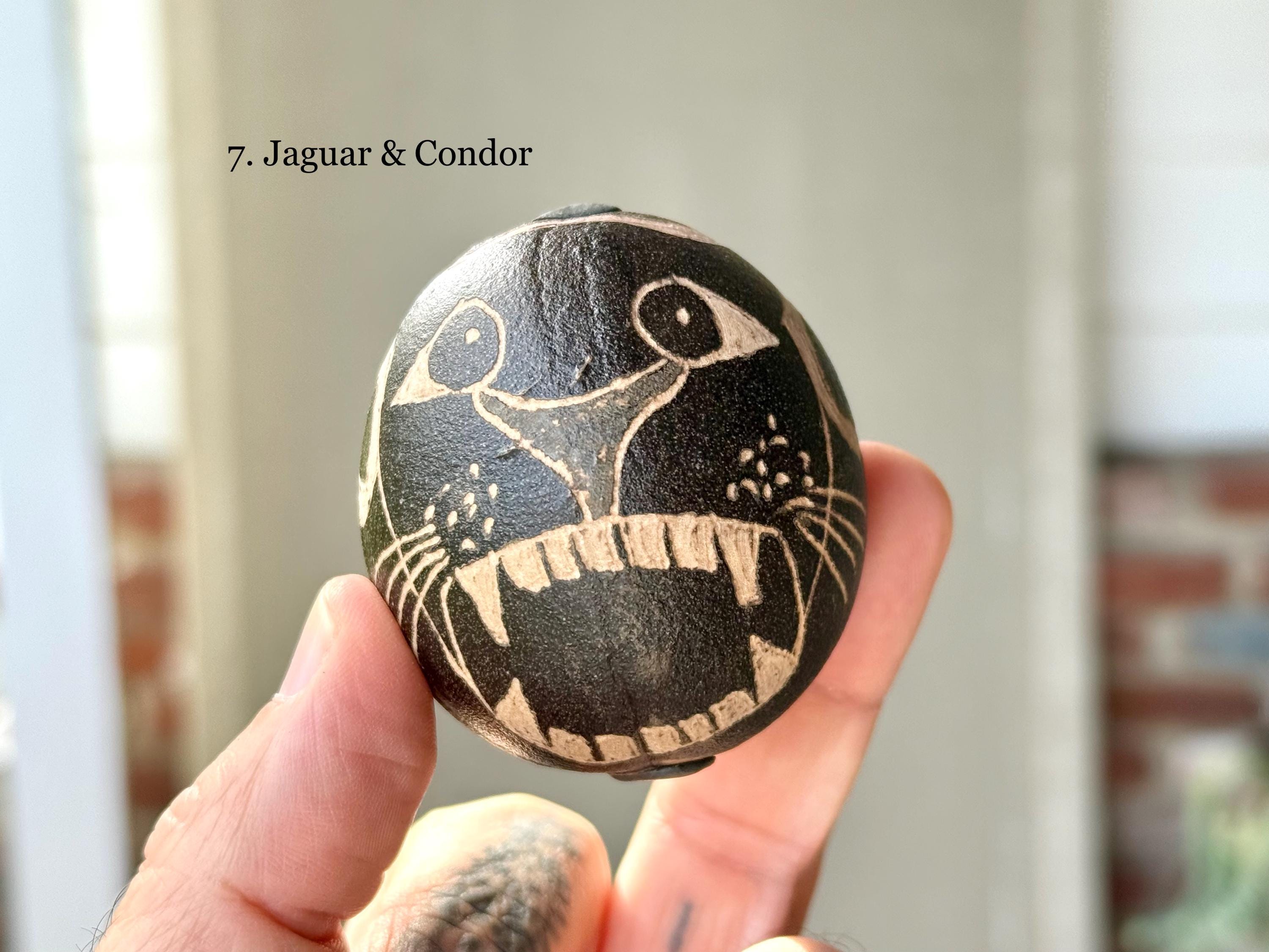 These handmade Shaman Rattles come from our artisans in Pucallpa, in the Peruvian Amazon. These small rattles are akin to "egg shakers," with no handle, intended to be shaken rhythmically in the palm of your hand. Traditional rattles like these are a key element in both core shamanism as well as in Peruvian Shamanism and in plant medicine ceremonies.