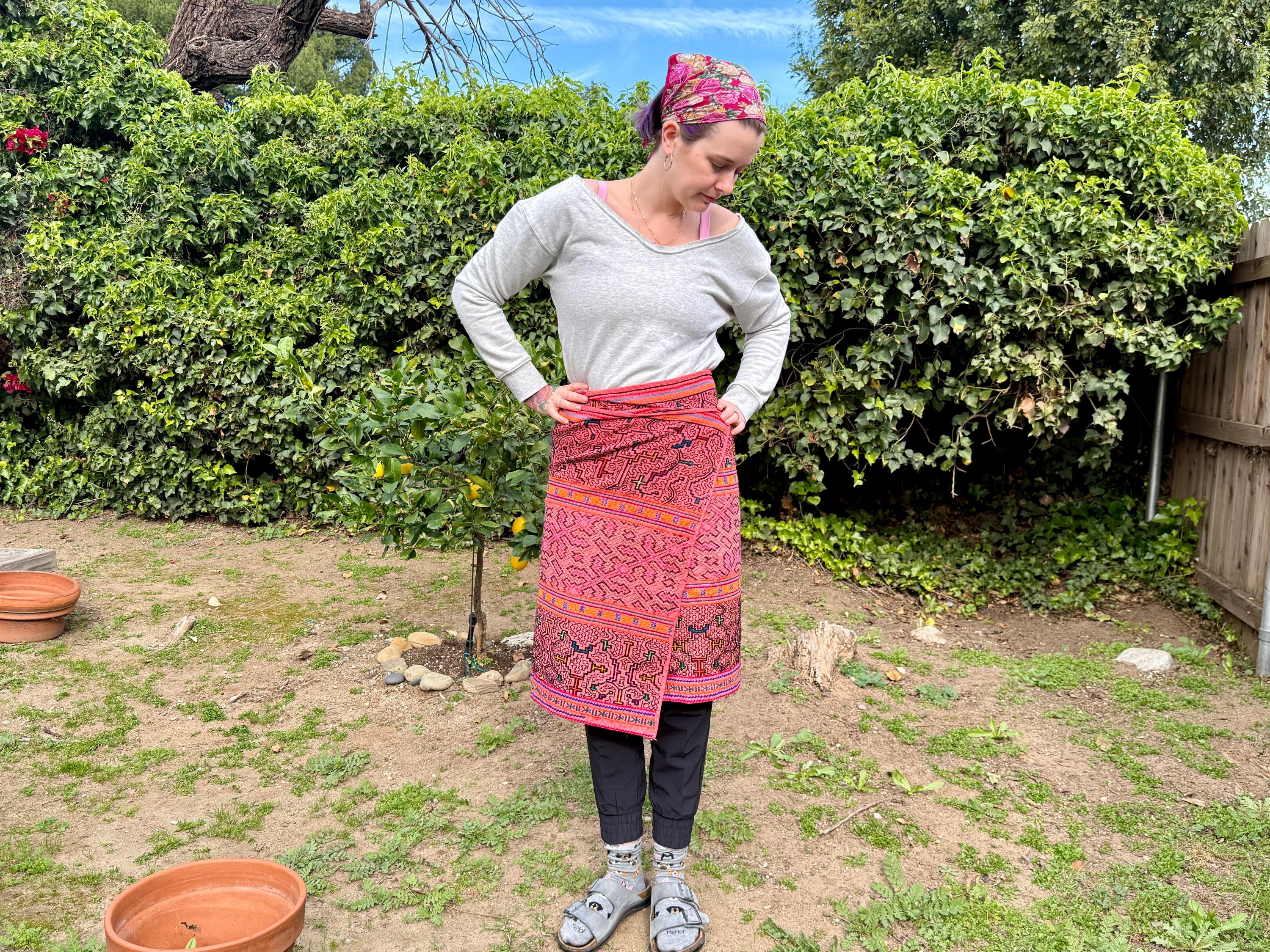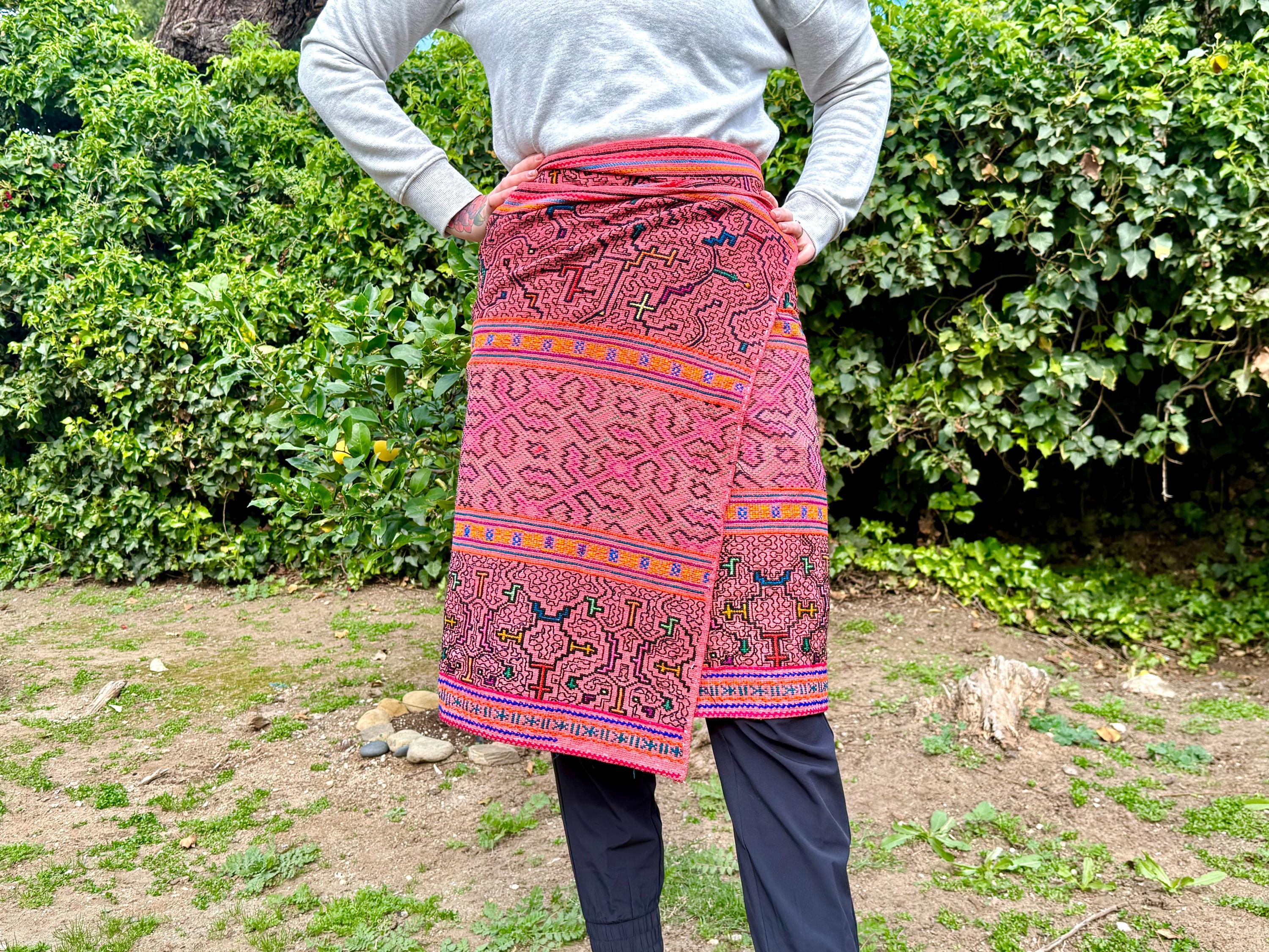This manta can be worn as a wrap skirt or used as a shawl in ceremony. It is large enough to serve as a small blanket as well. It's long shape makes it ideal for use as a table runner for a plant medicine altar, or a table cloth in general. It can also be hung on the wall as a tapestry.