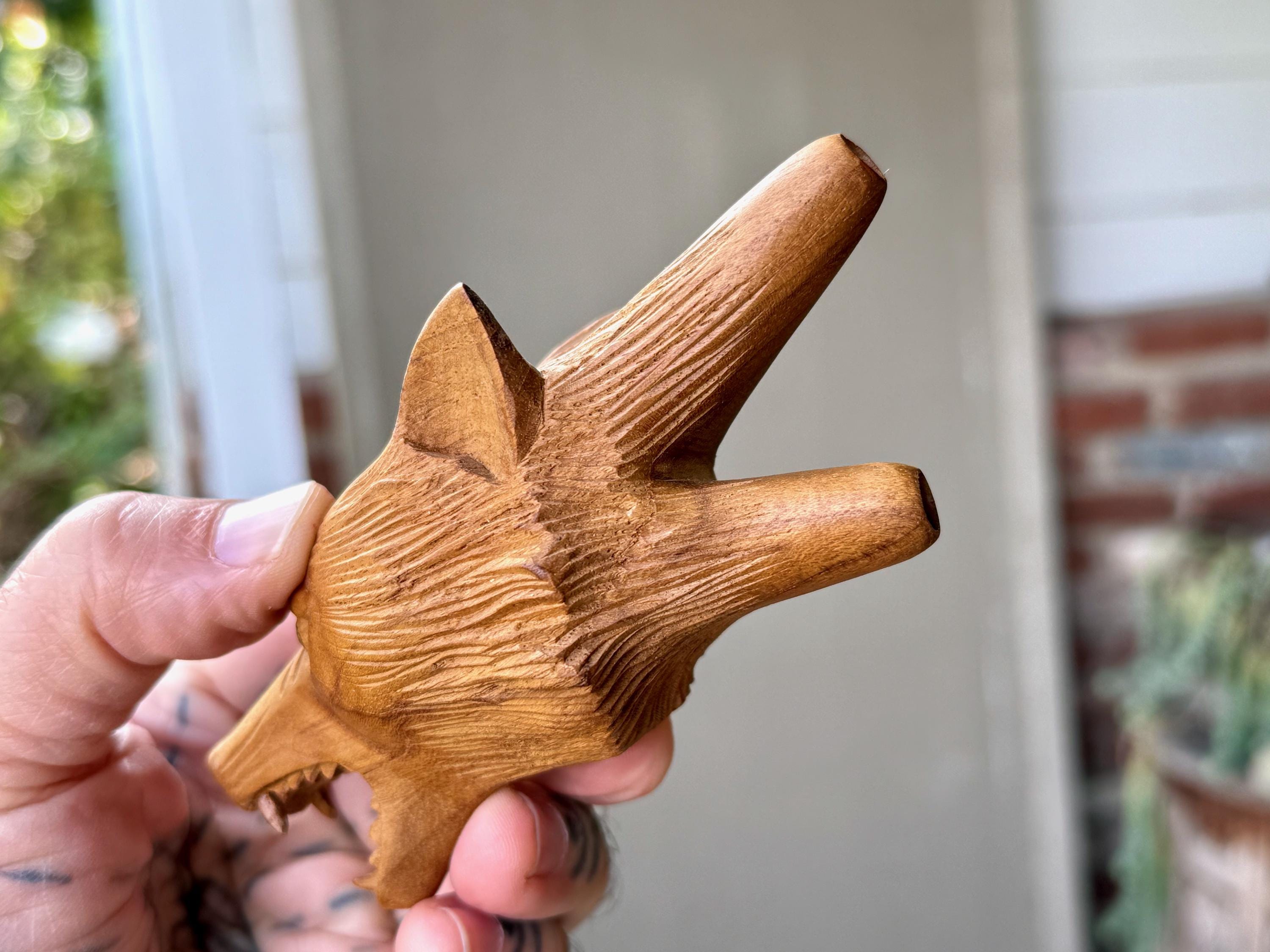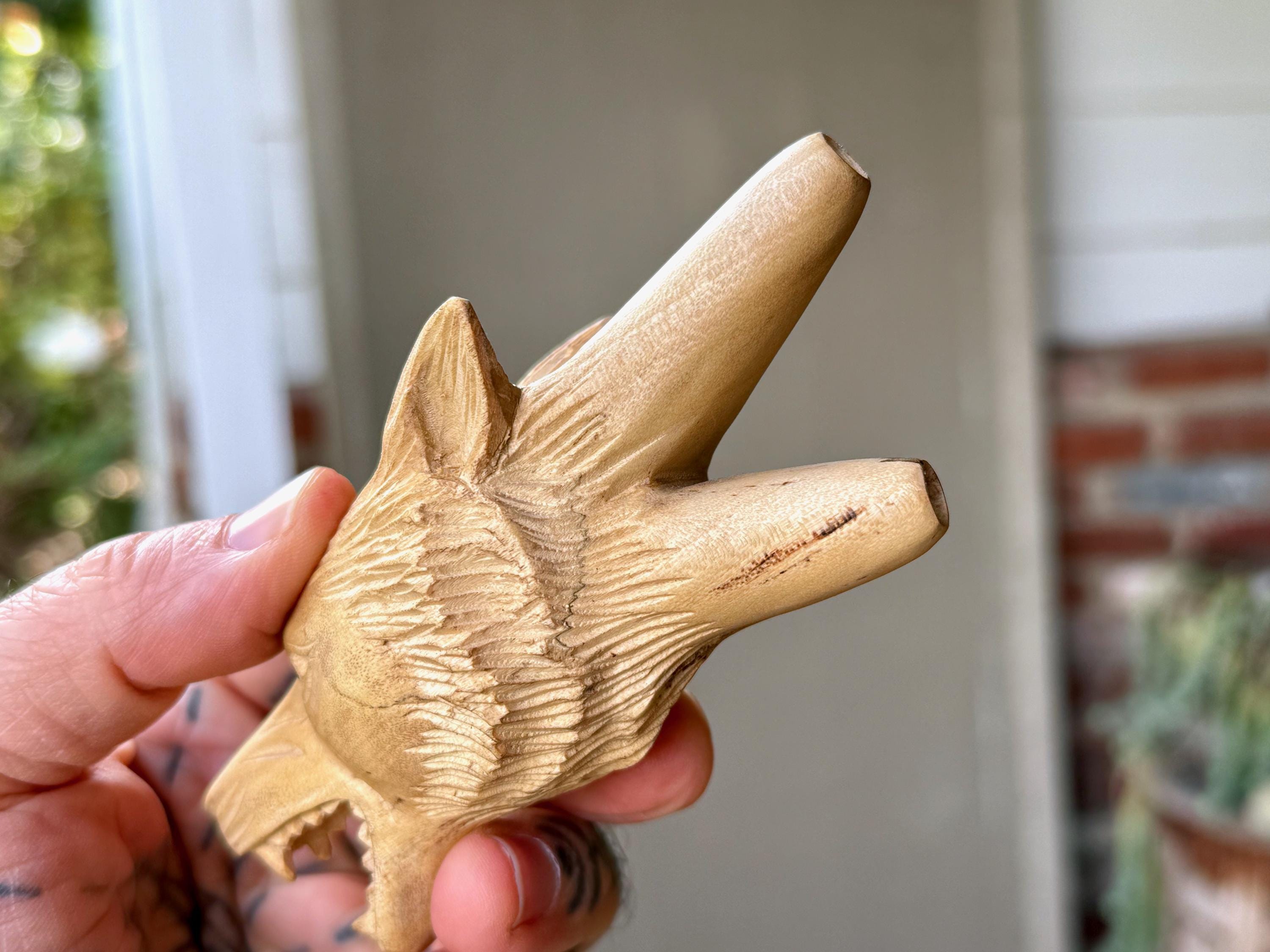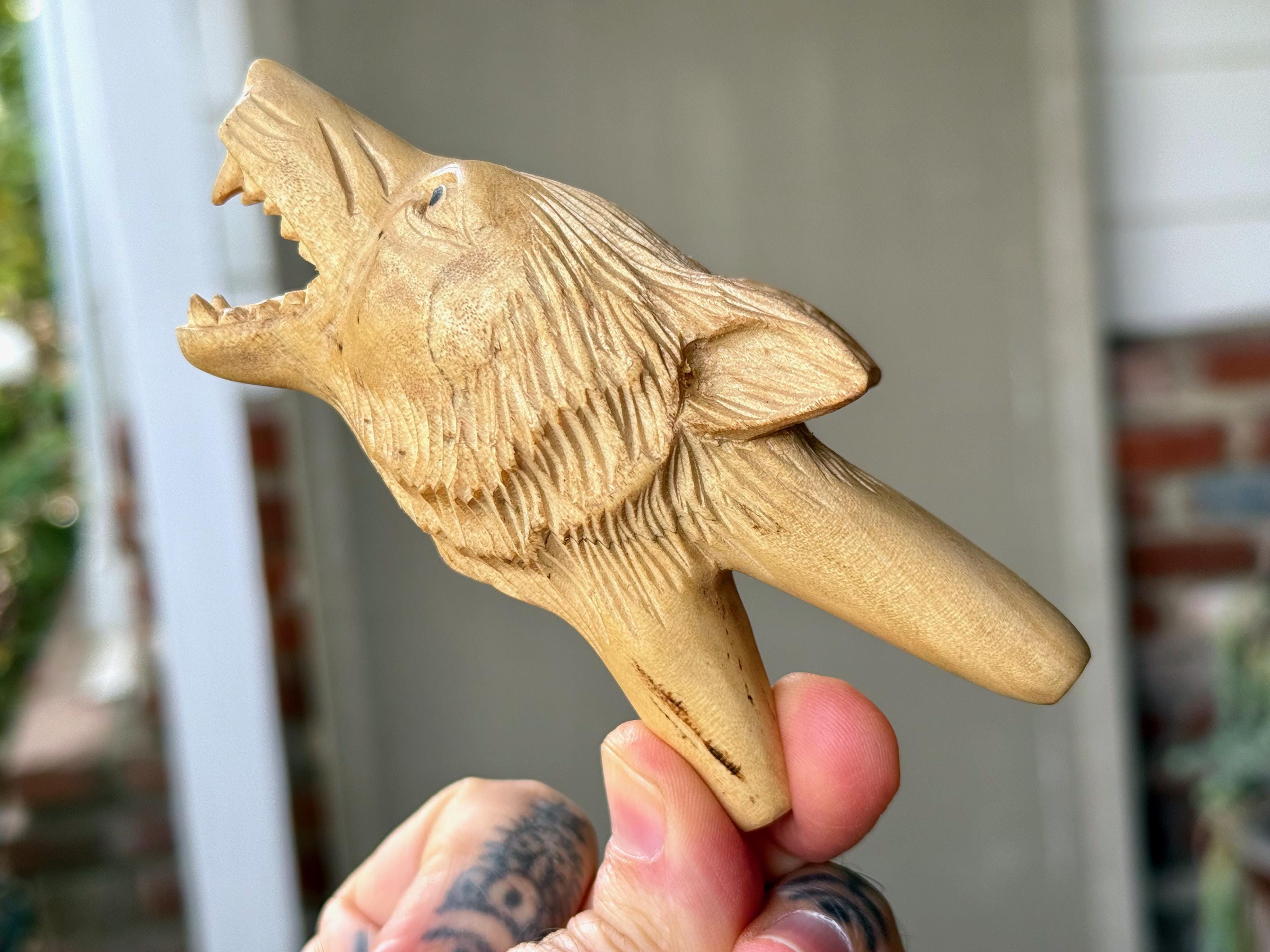 These Wolf Kuripe pipes were hand carved from solid, natural hardwoods. There are THREE different pipes to choose from. Simply select your preference from the dropdown menu.