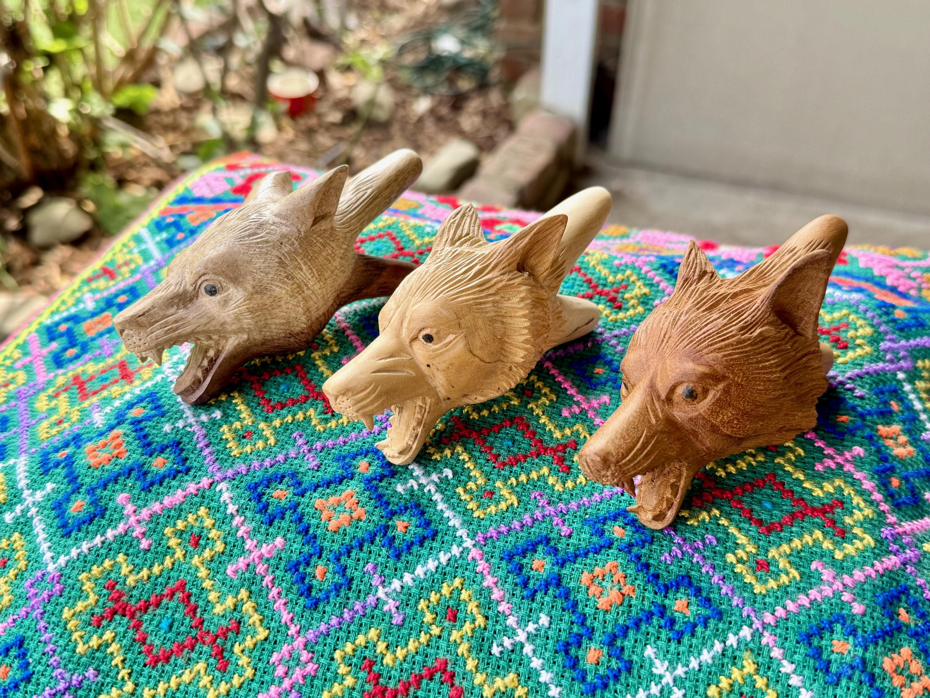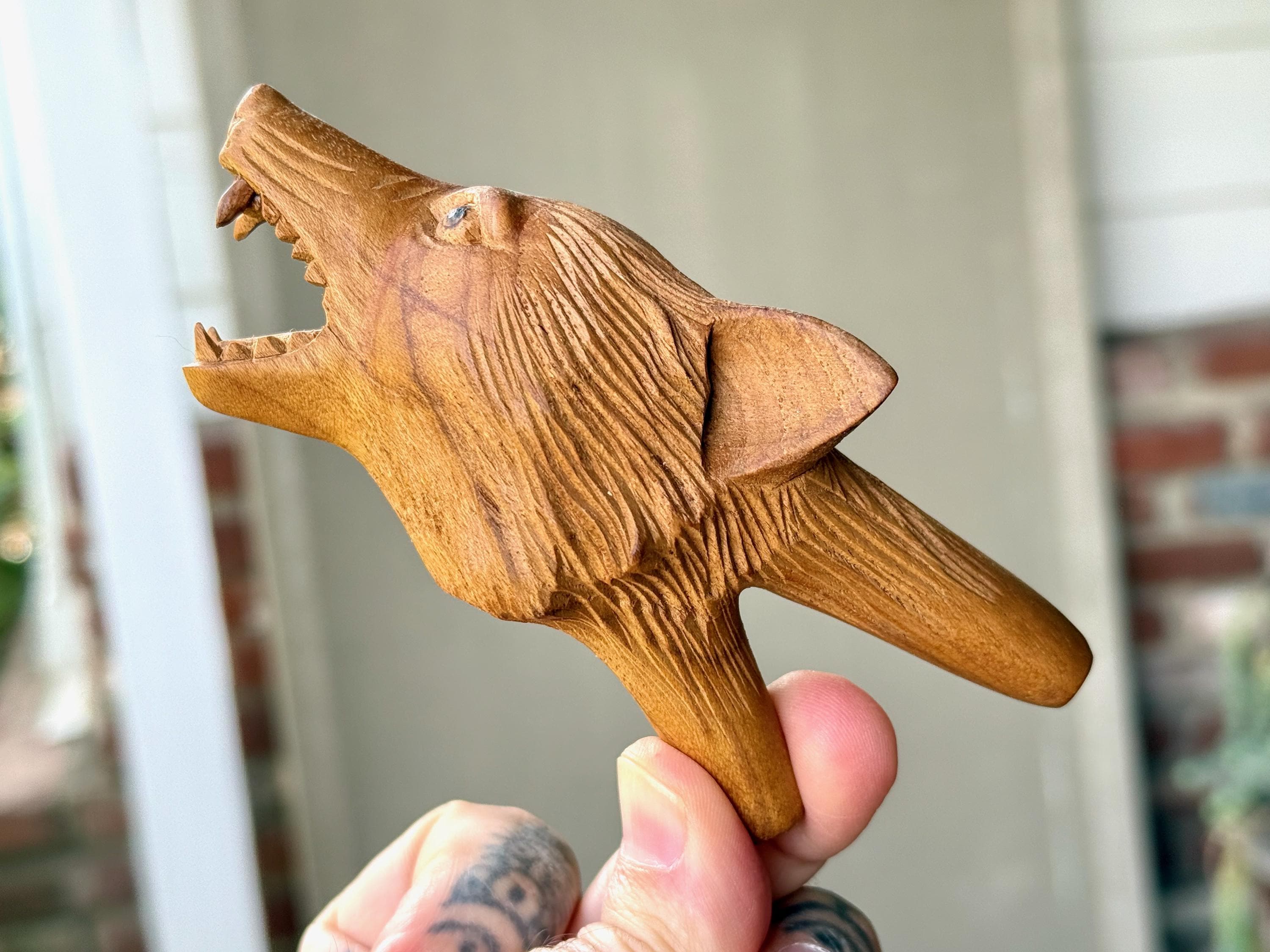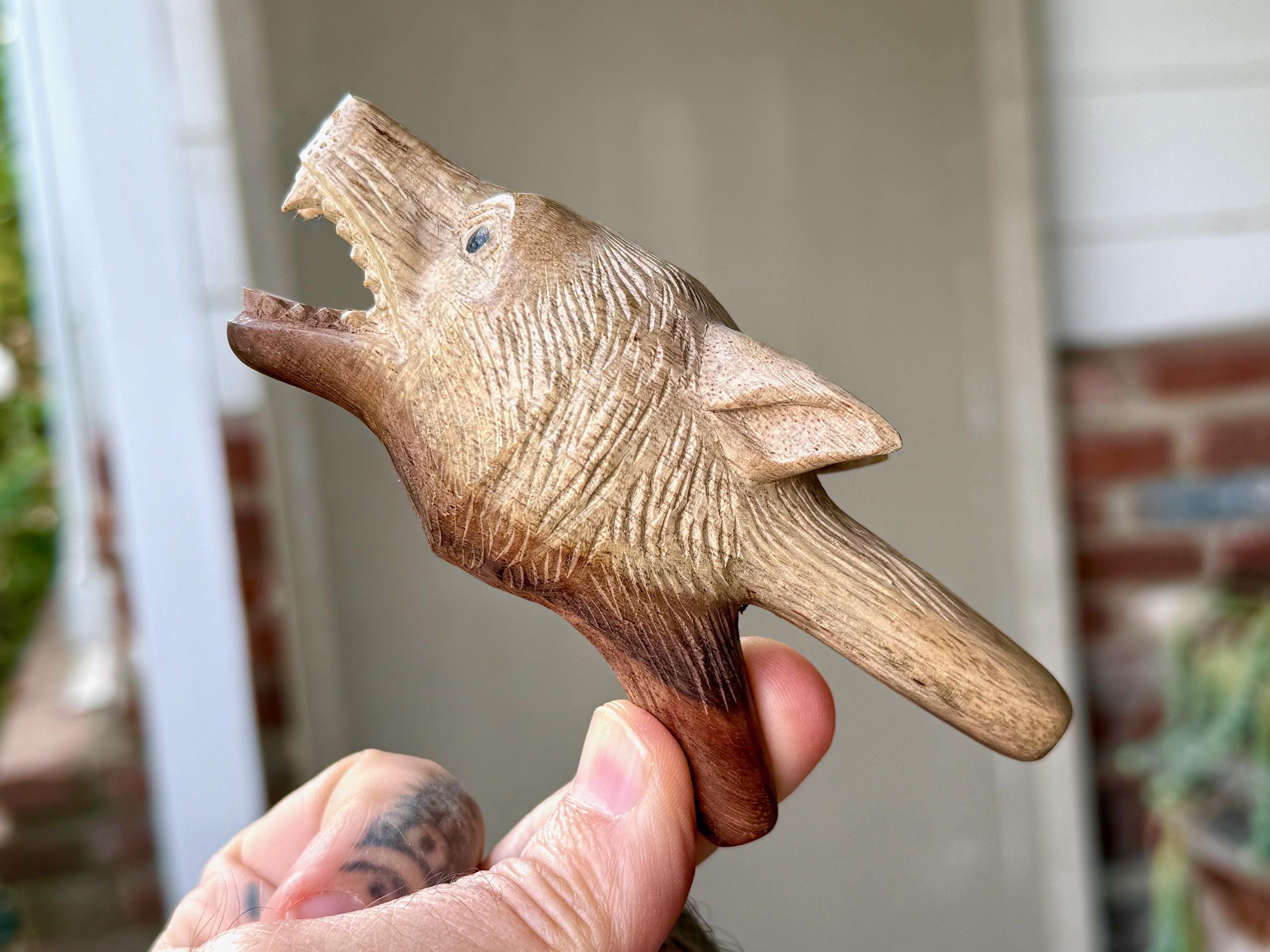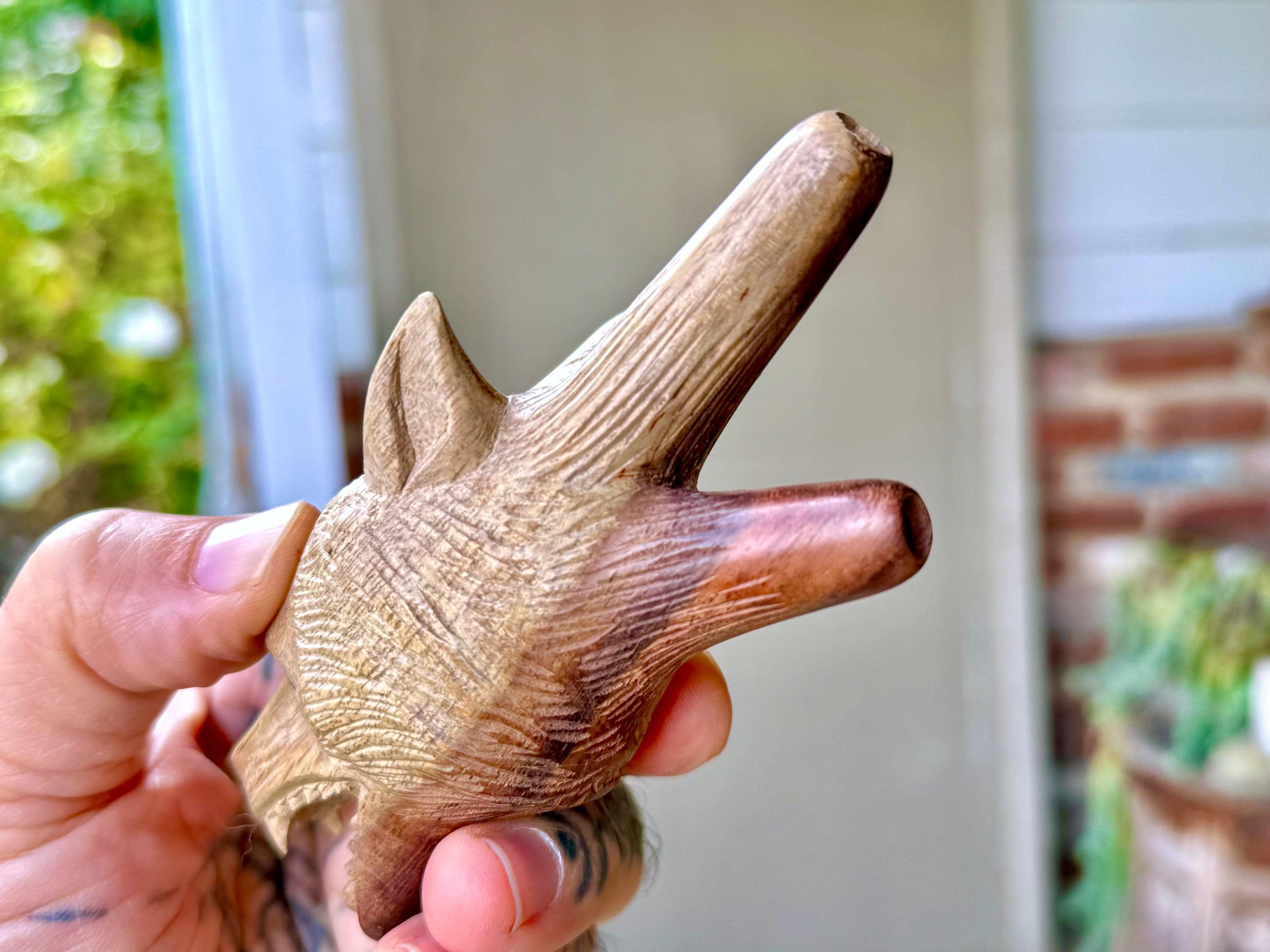 These Wolf Kuripe pipes were hand carved from solid, natural hardwoods. There are THREE different pipes to choose from. Simply select your preference from the dropdown menu.