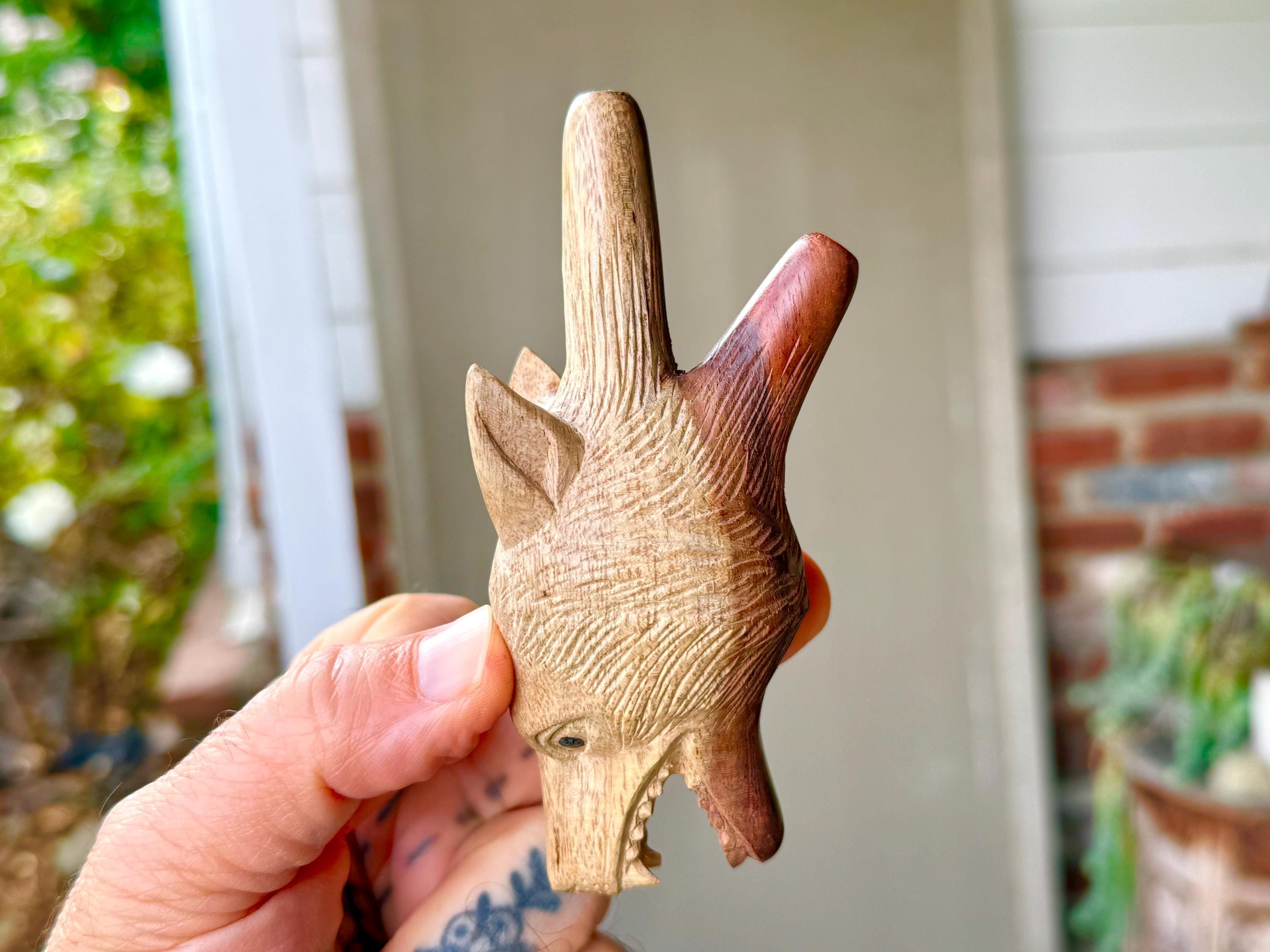 Masterful carving and elegant lines, combined with natural beauty of the wood grains really bring these pieces to life. The attention to detail is evident when you consider every single "hair" was carved by hand. Sacred medicine tools with excellent functionality as well.