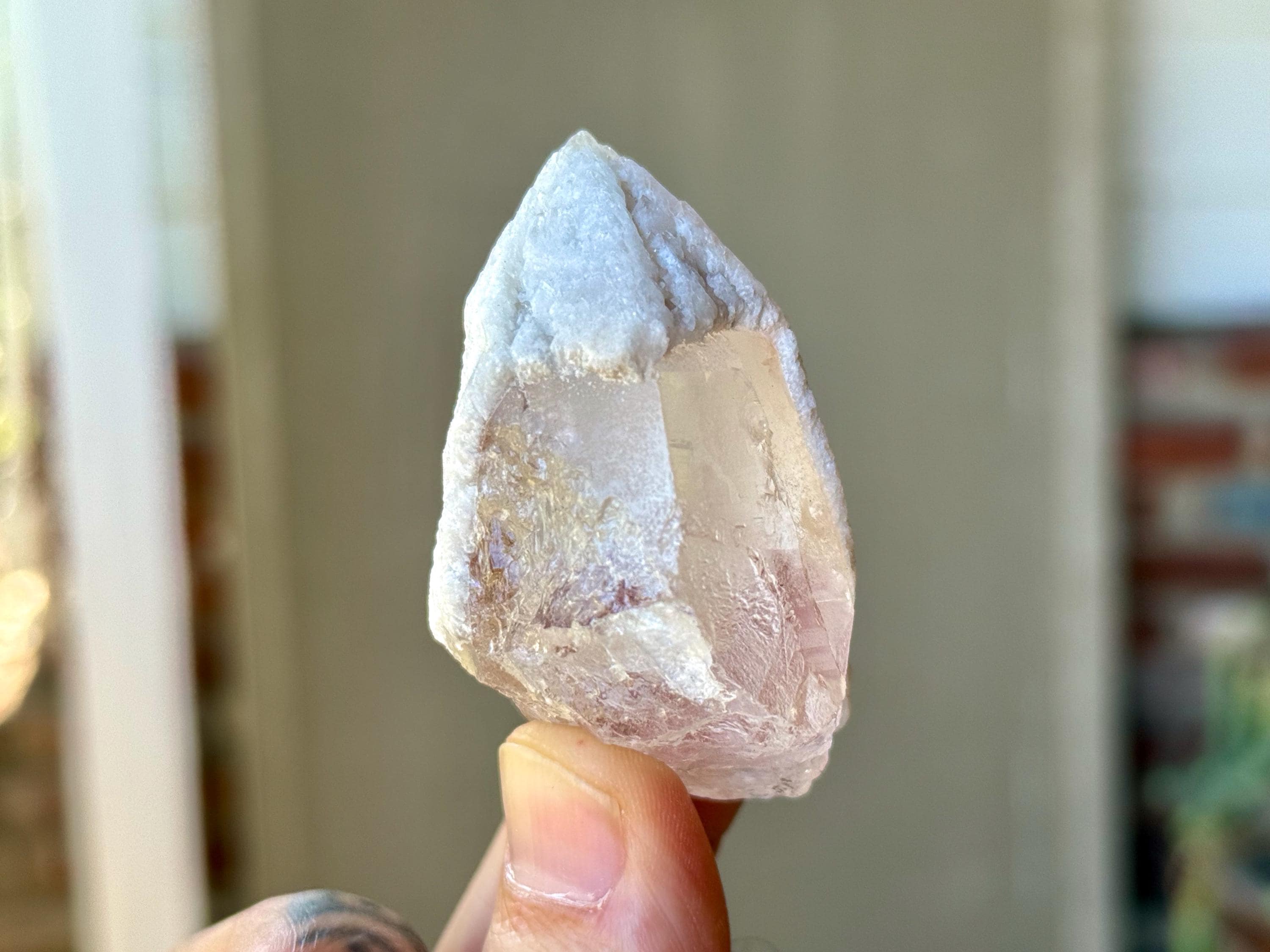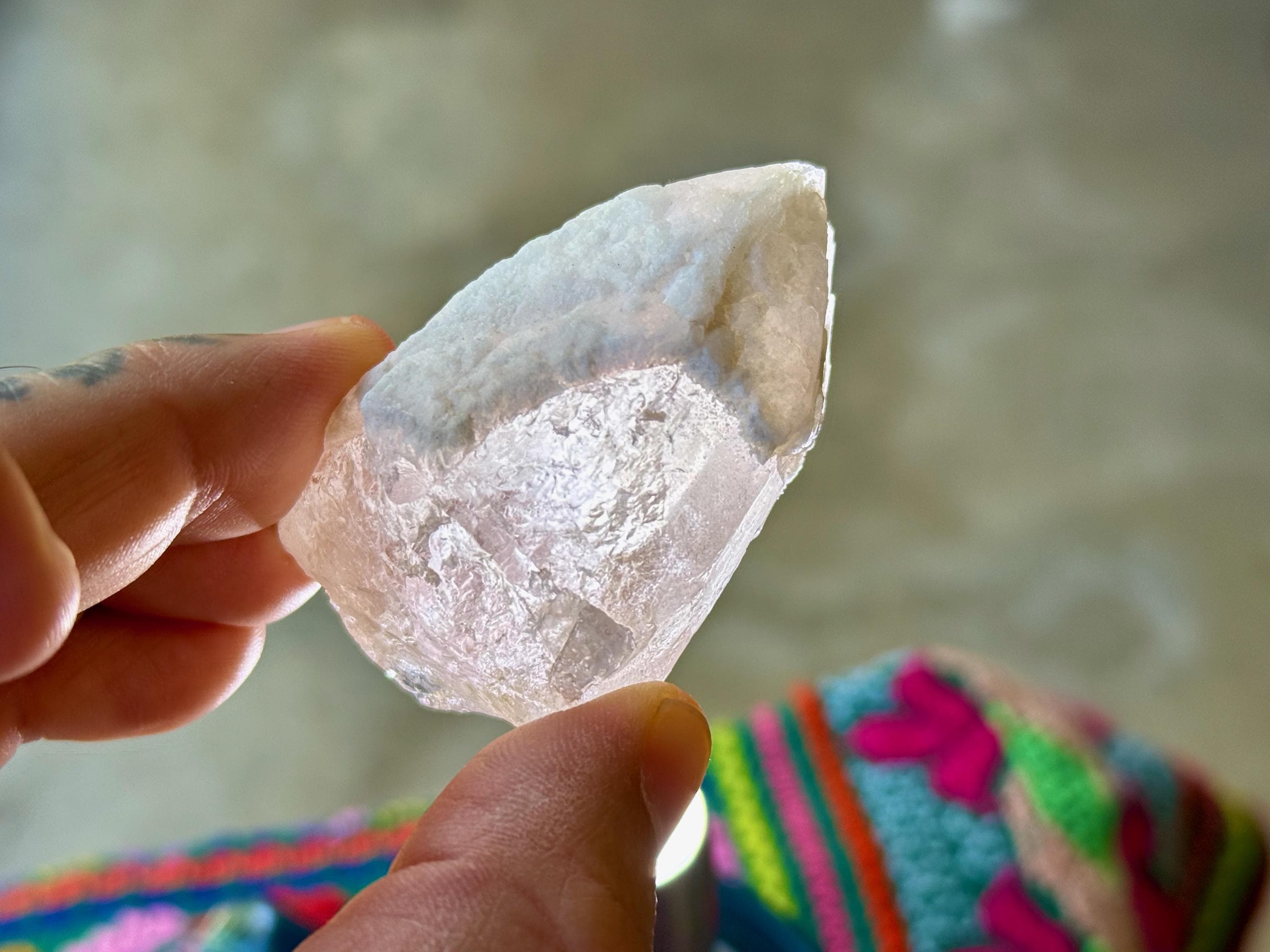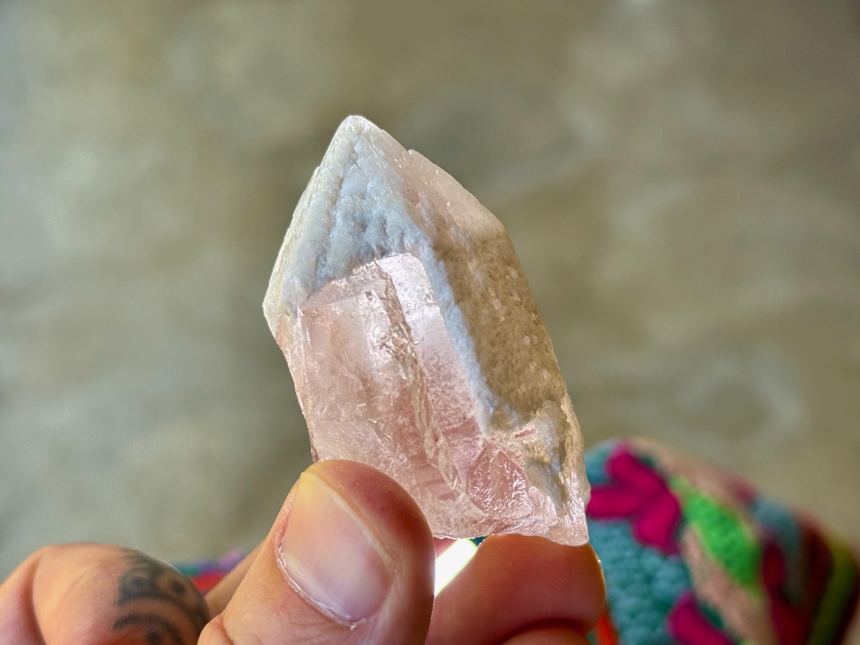 This beautiful Pink Dreamsicle Lemurian Snow Quartz comes from a 2025 find in the Serra do Cabral Mountains, Minas Gerais, Brazil.