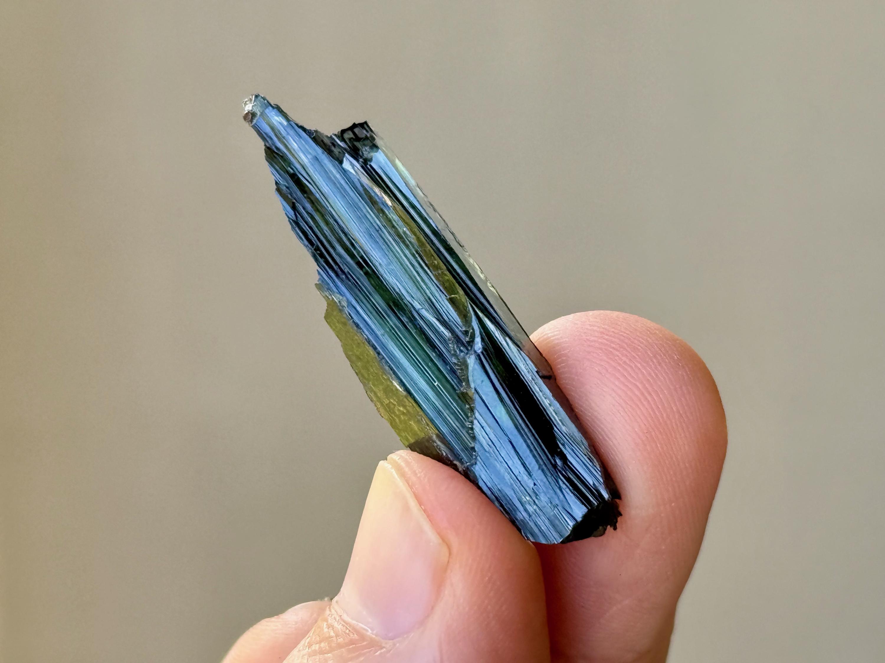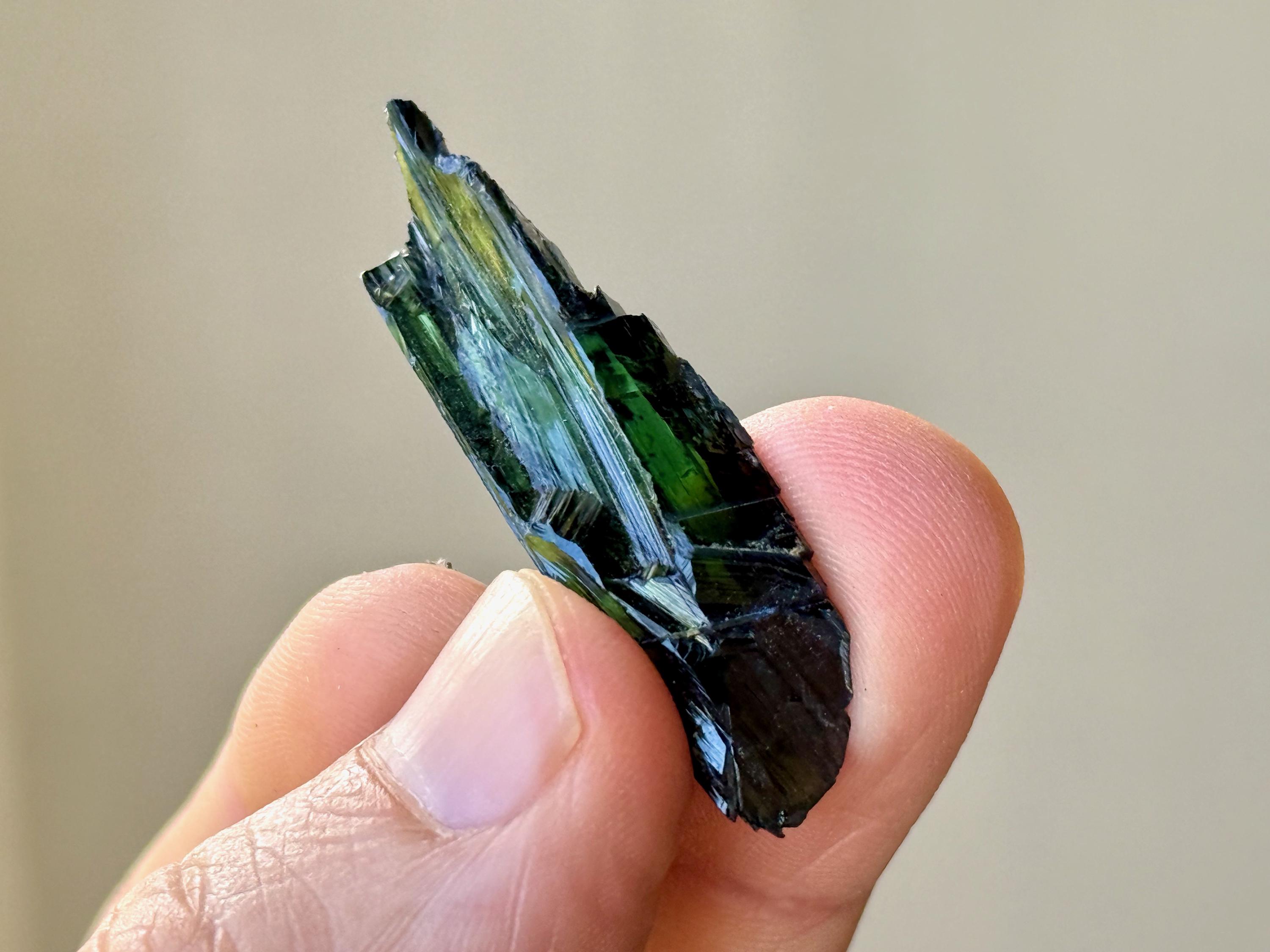 Gorgeous luster and a deep green color to this lovely Vivianite crystal. This piece is entirely Vivianite, with no matrix attached.