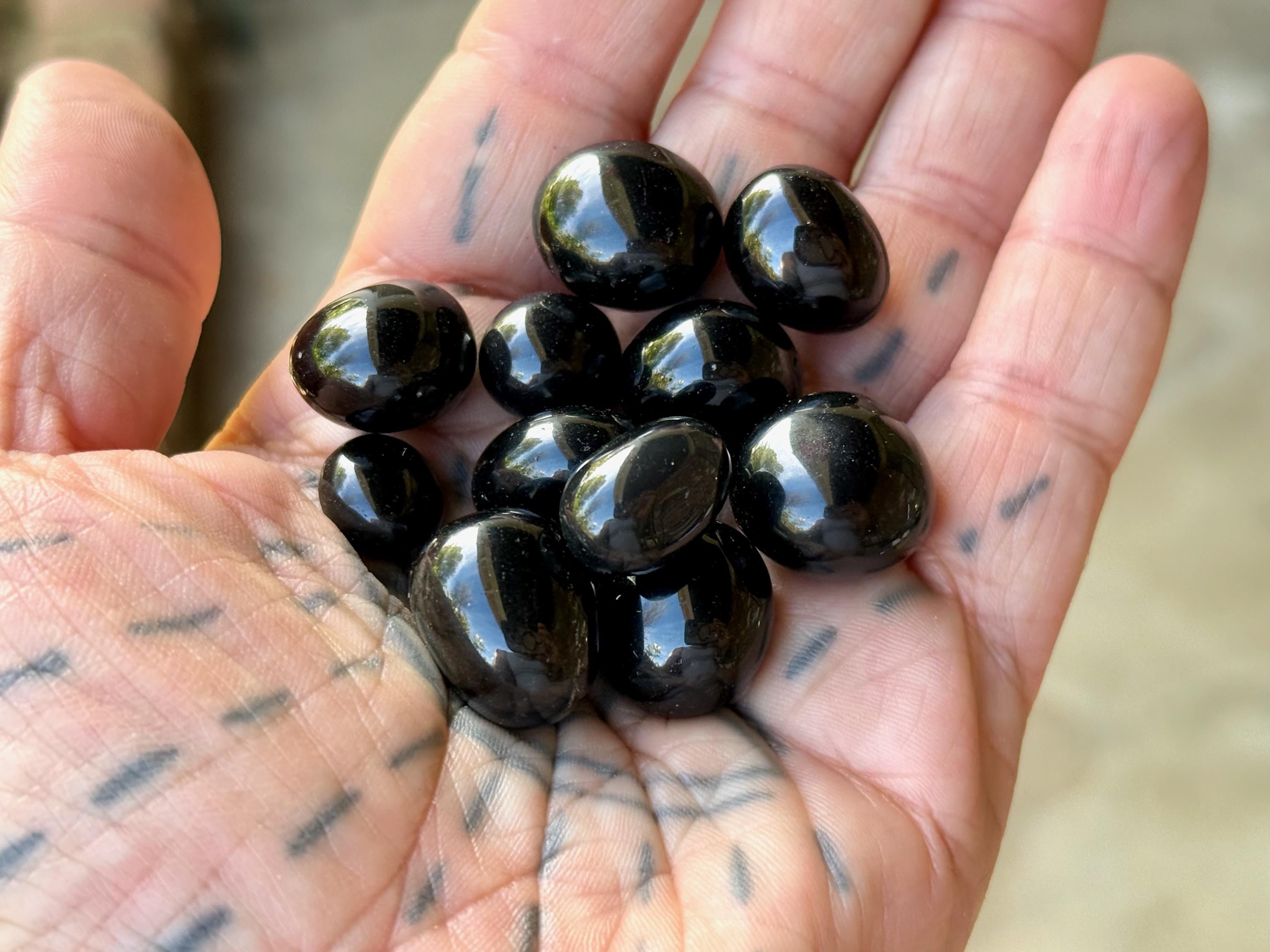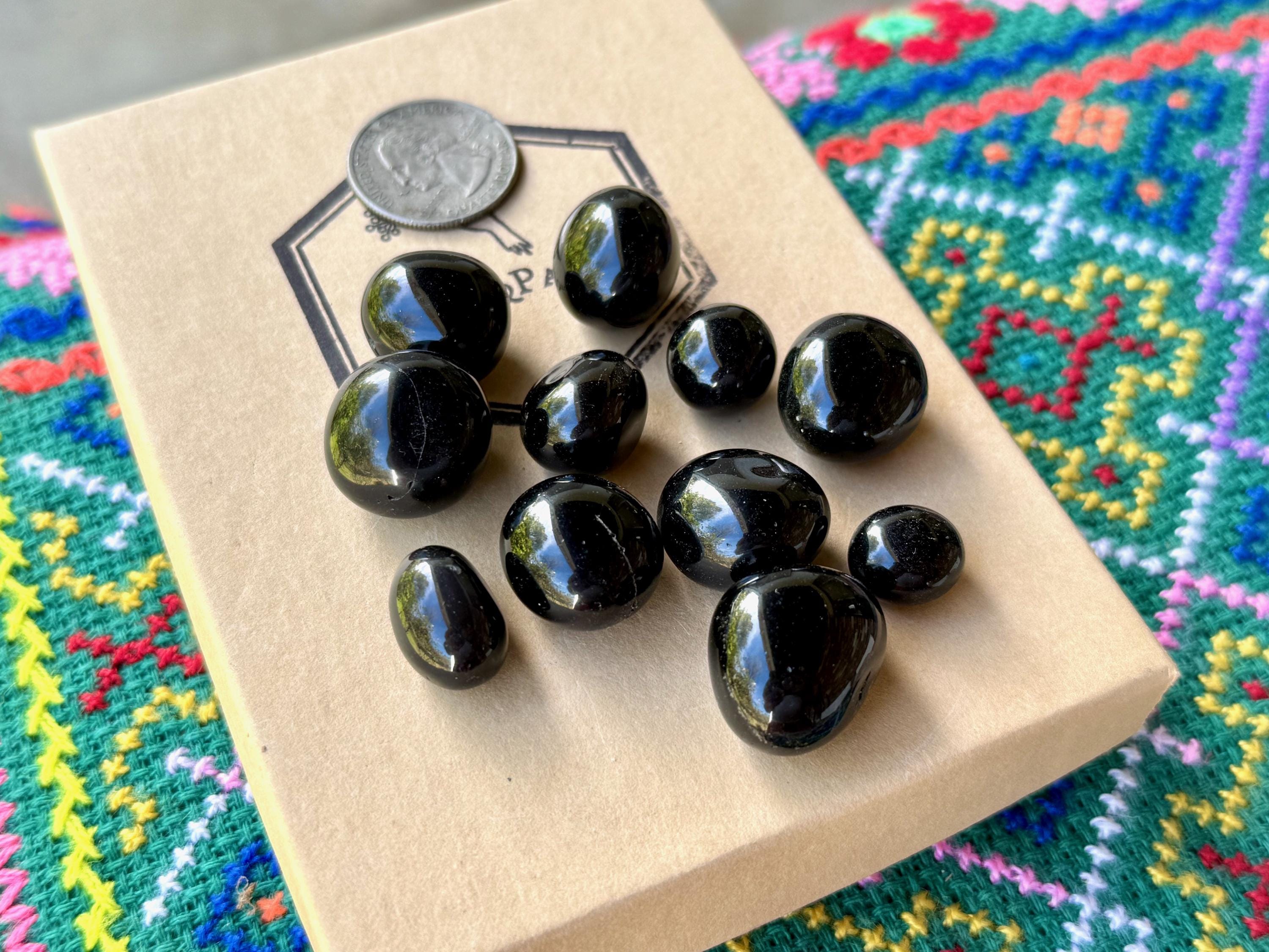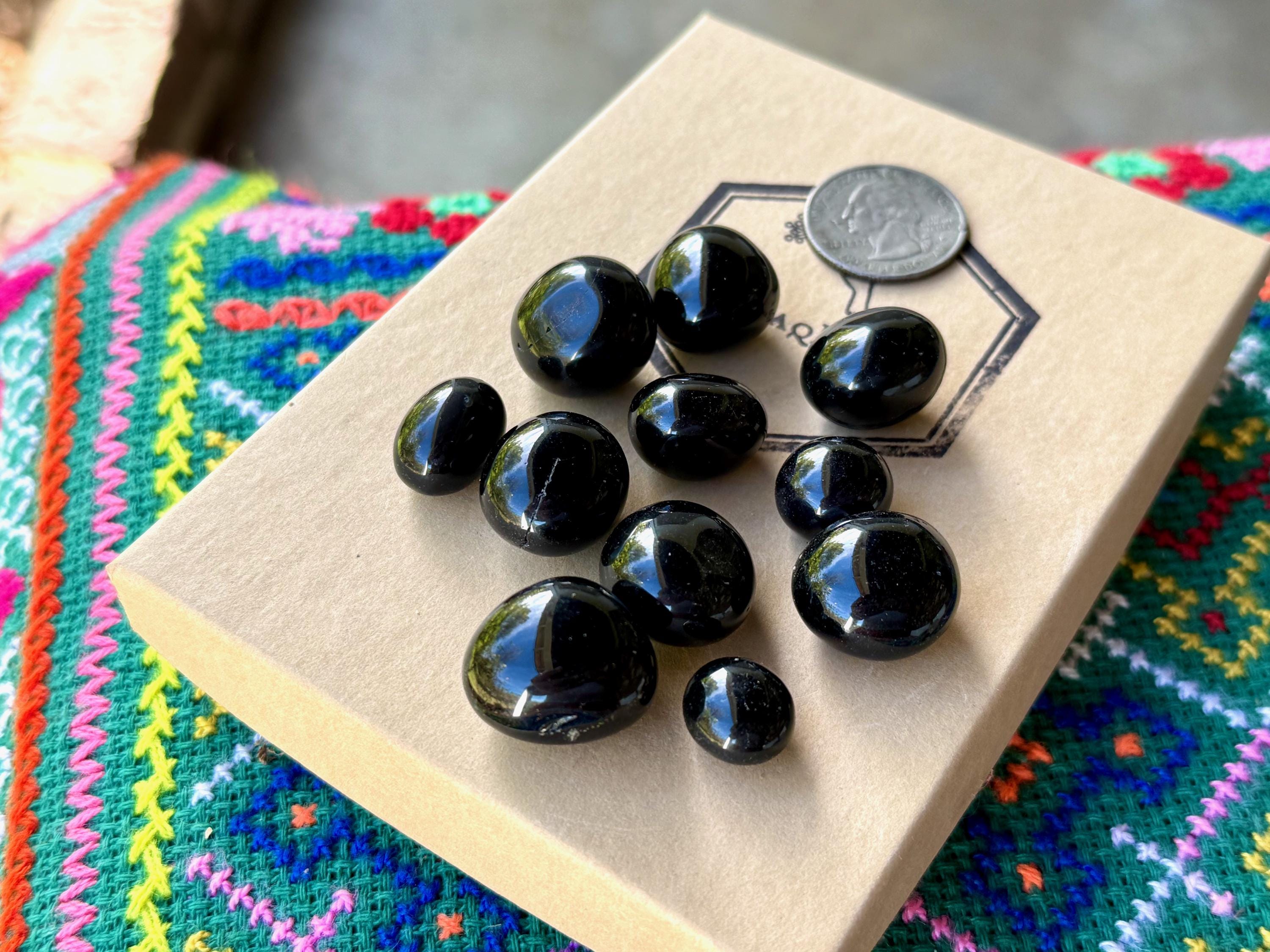 Wonderful luster and a variety of sizes to these tumbled polished Obsidian. A nice set for crystal grids or jewelry.