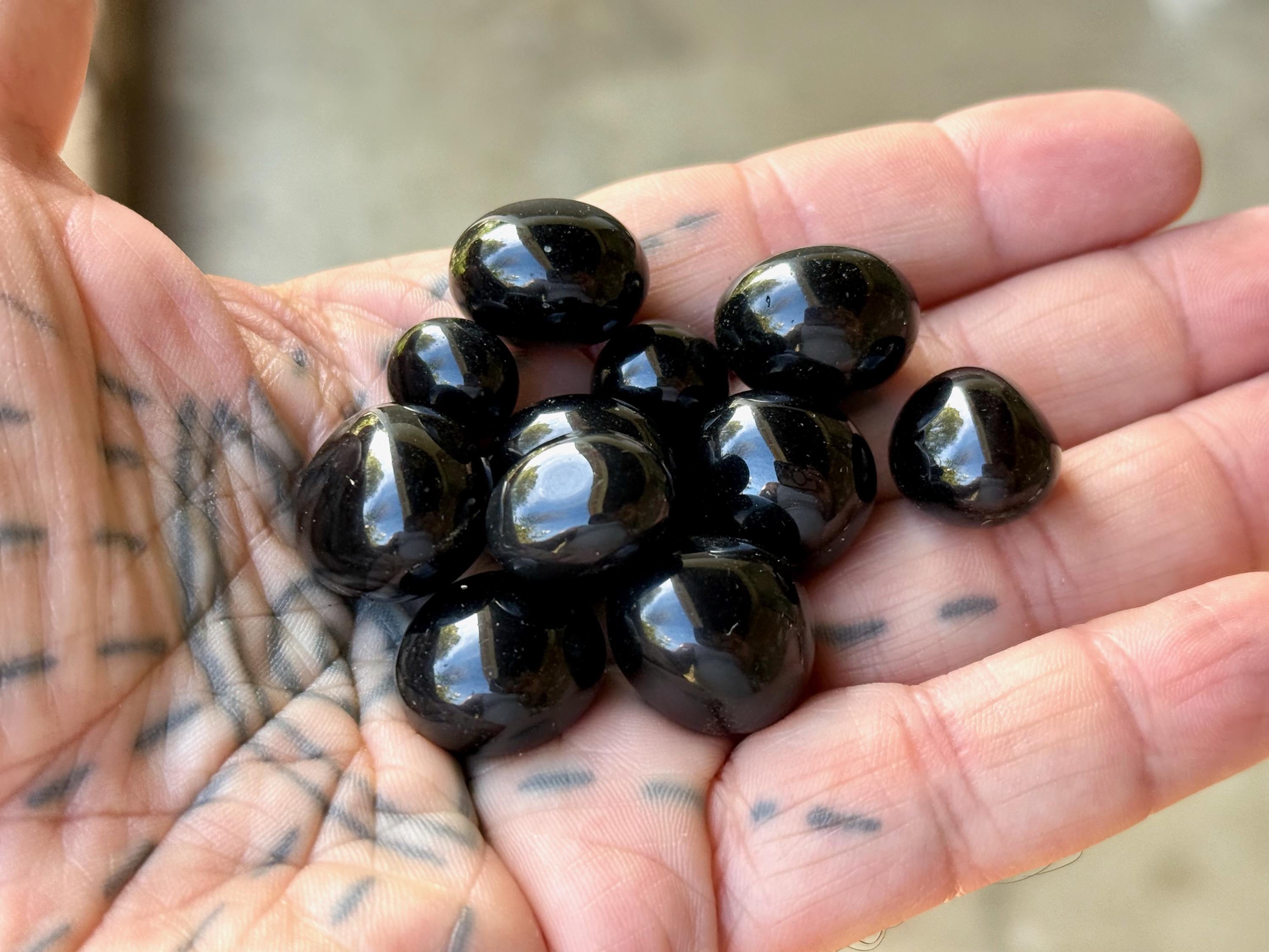 These Black Obsidian tumbles possess deep black color and smoothly polished exteriors.