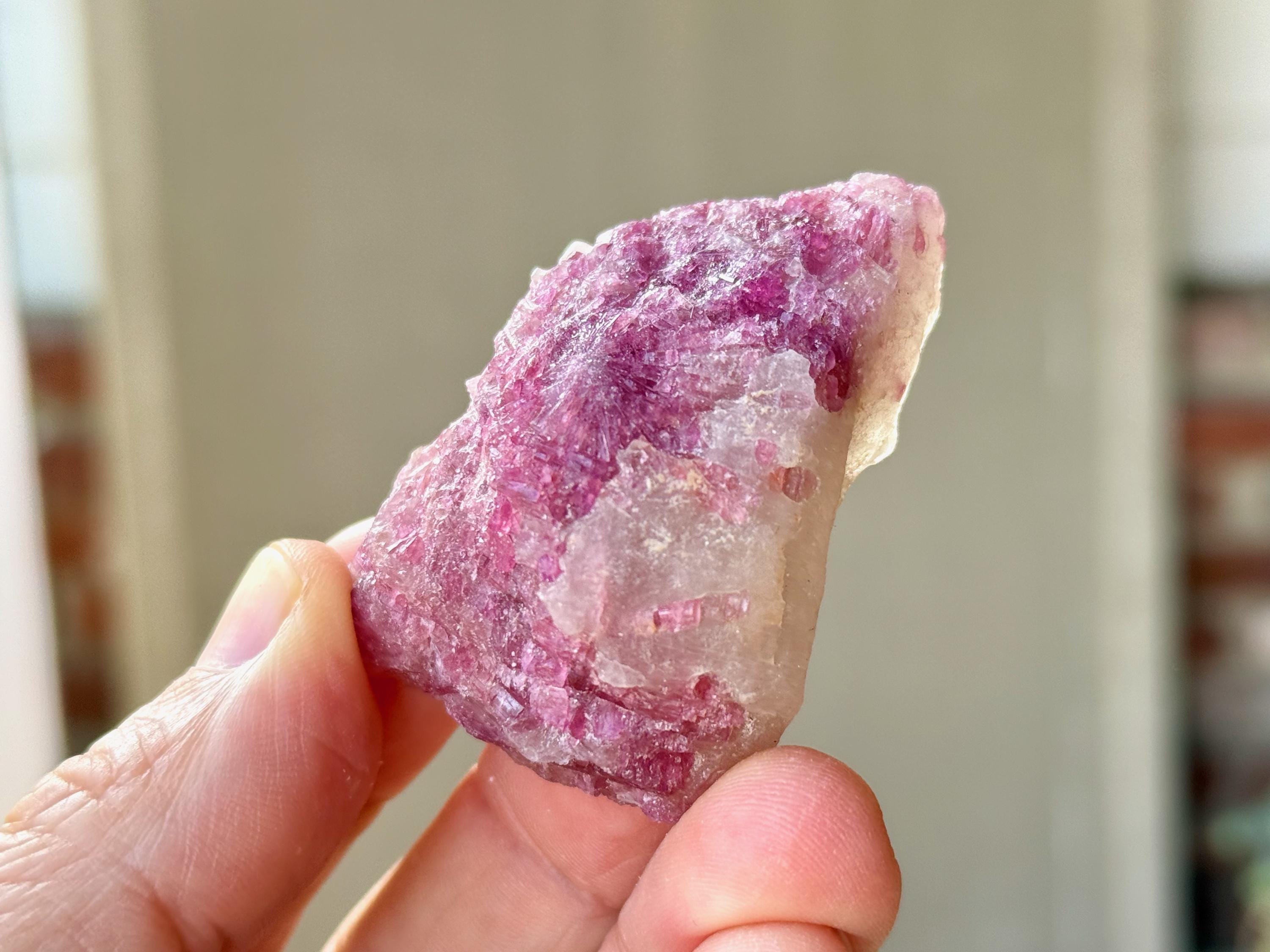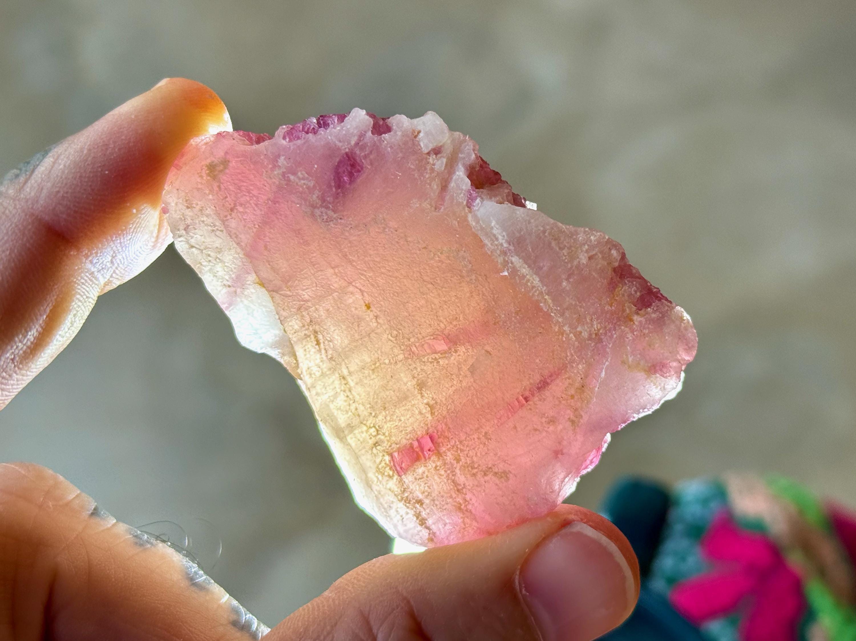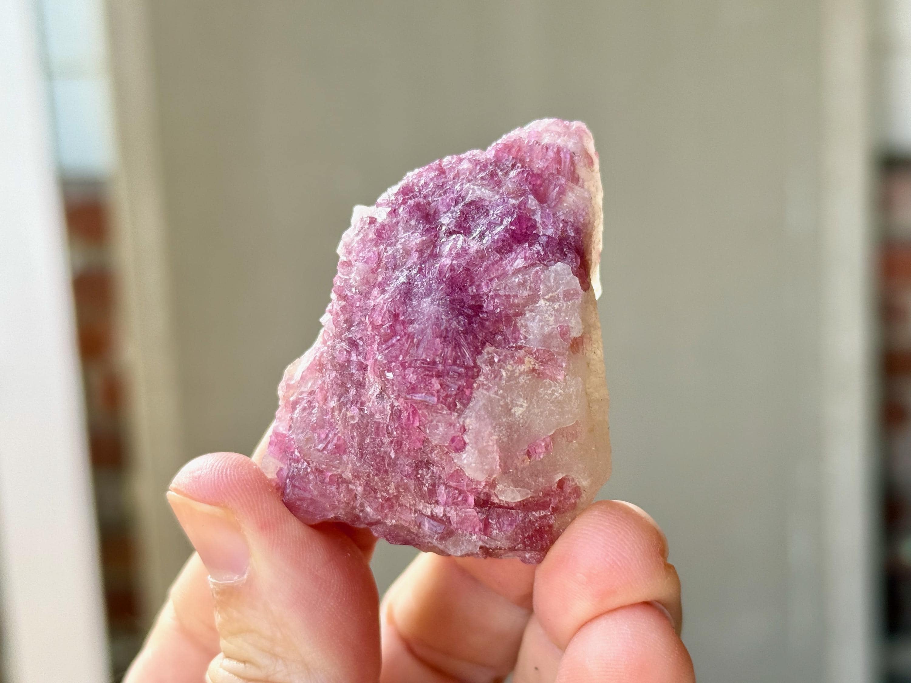 This vibrant Pink Tourmaline Quartz crystal comes from a recent find in the area of Coronel Murta, Minas Gerais, Brazil.