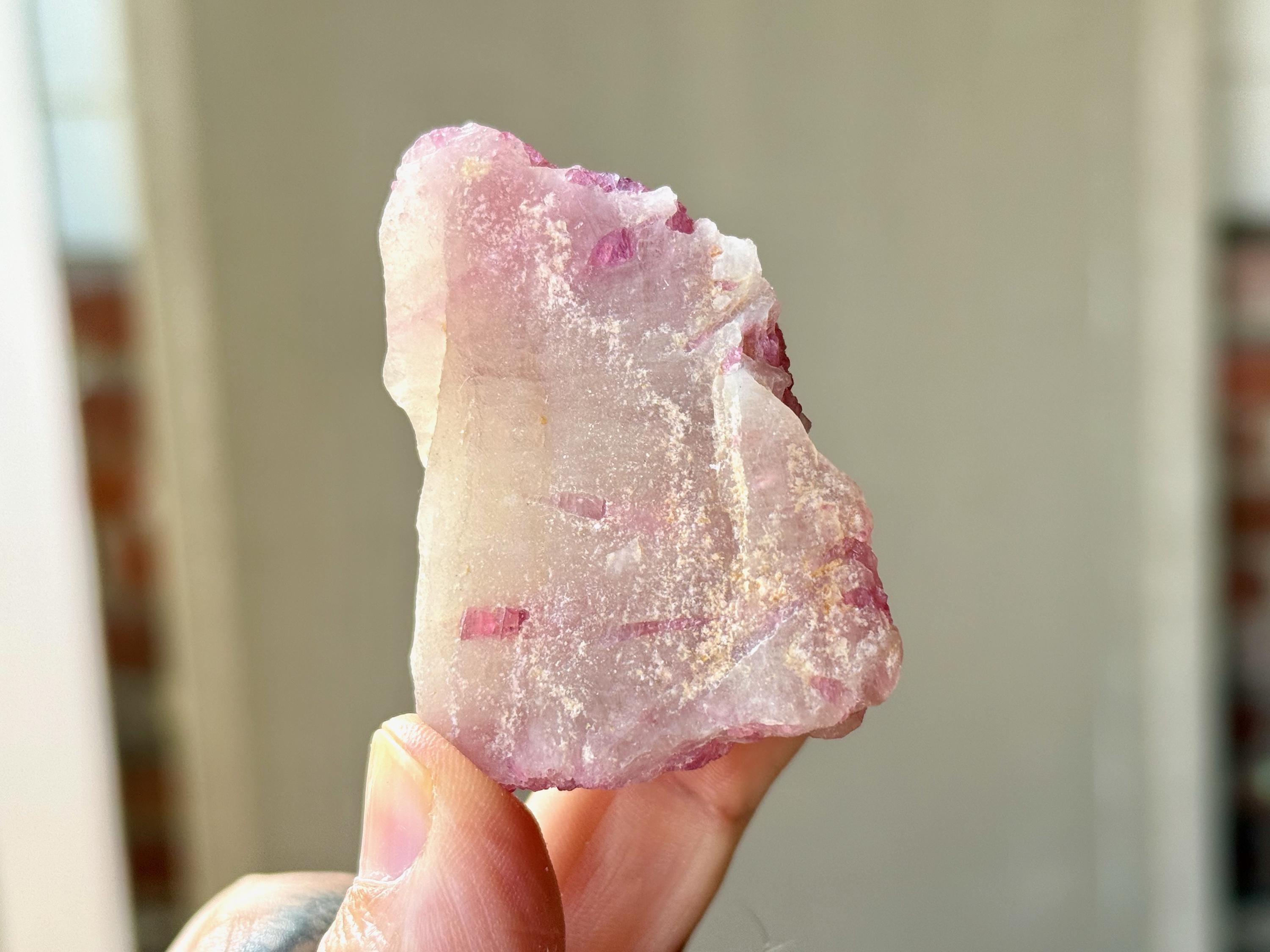 Pink Tourmaline is a wonderful Heart Chakra crystal, healing wounds of the heart and in doing so cleansing the entire energy body of destructive feelings and old wounds accumulated over time. It is a wonderful companion for doing work to releases guilt and anxiety, helping us connect to our emotions and achieve self-love. It can help those who may be emotionally numb to begin feeling passion and enthusiasm again, and stimulates happiness, peace, and joy.