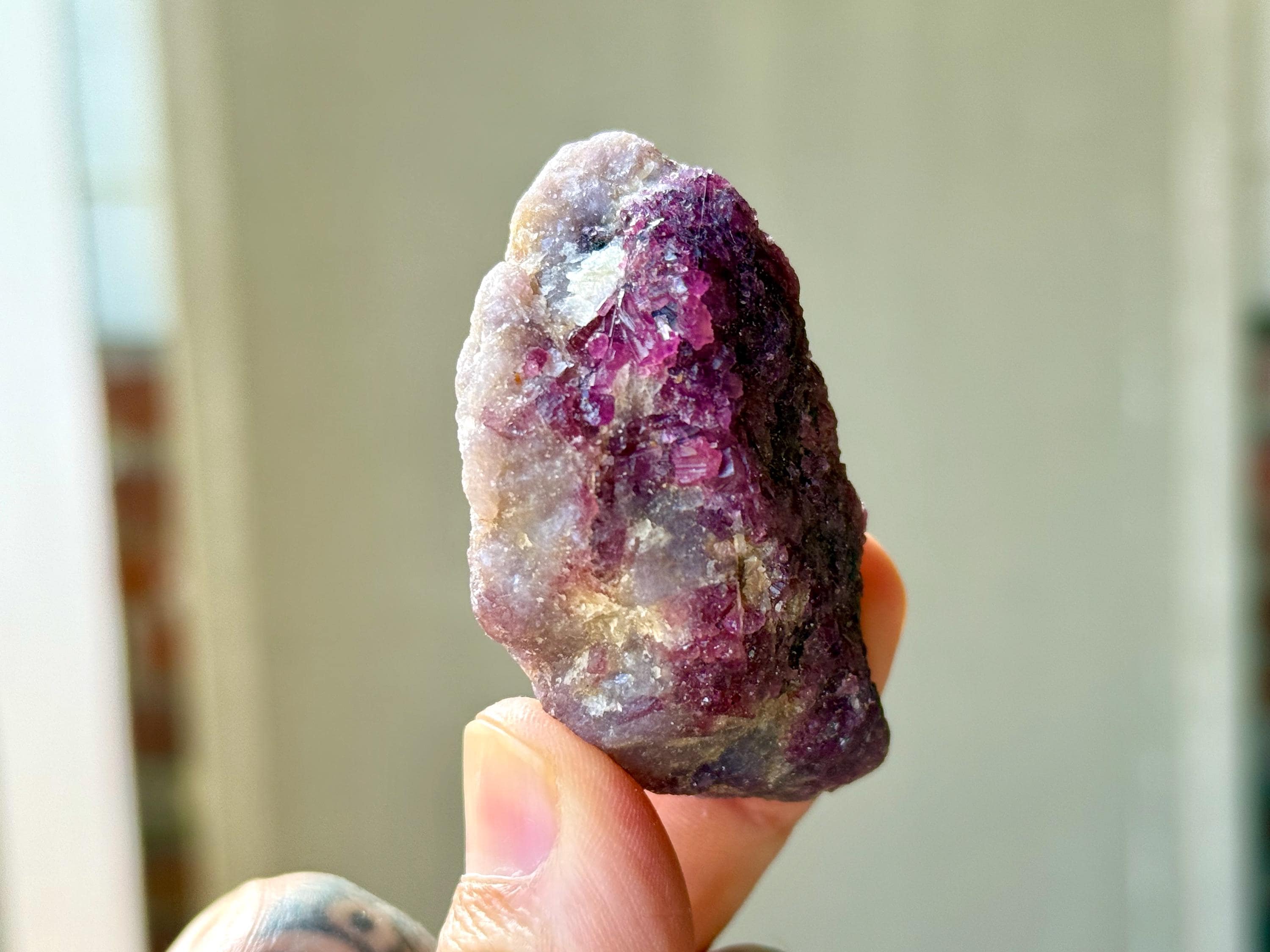 This vibrant Unicorn Stone Quartz with Pink Tourmaline and Purple Lepidolite comes from a recent find in the area of Coronel Murta, Minas Gerais, Brazil.