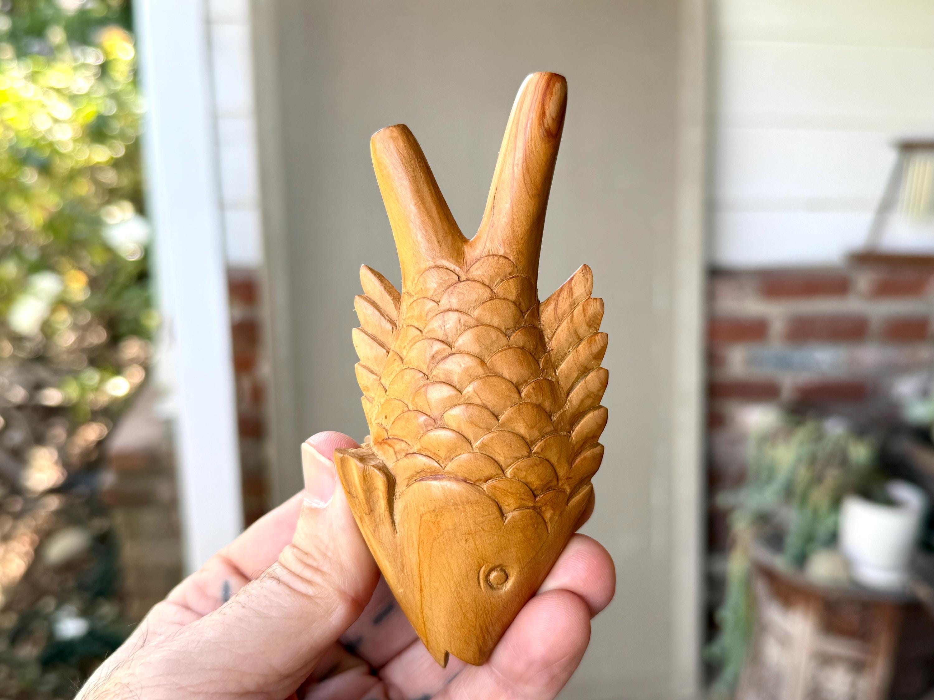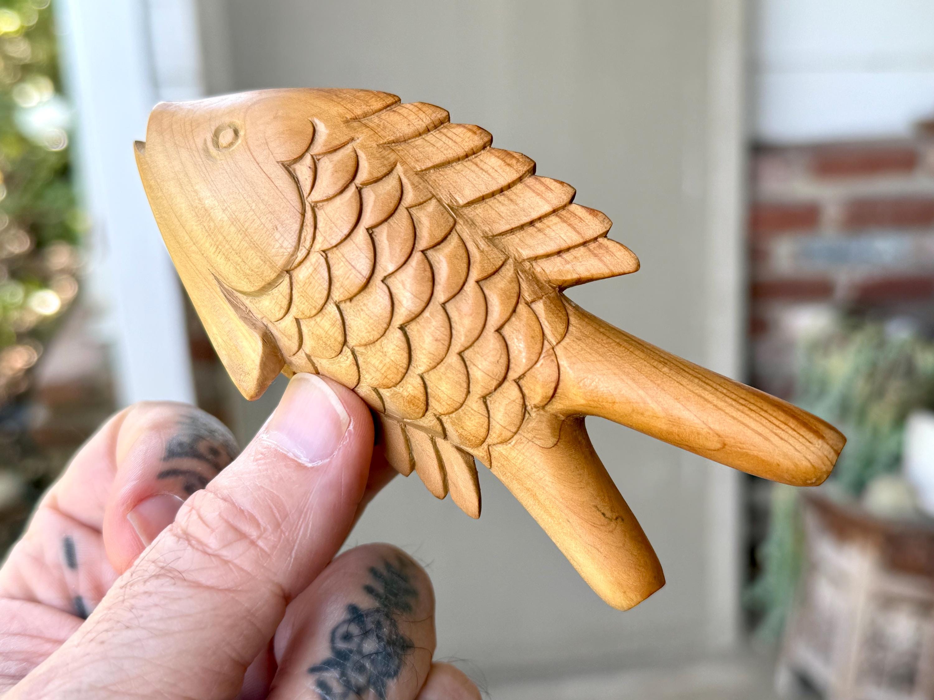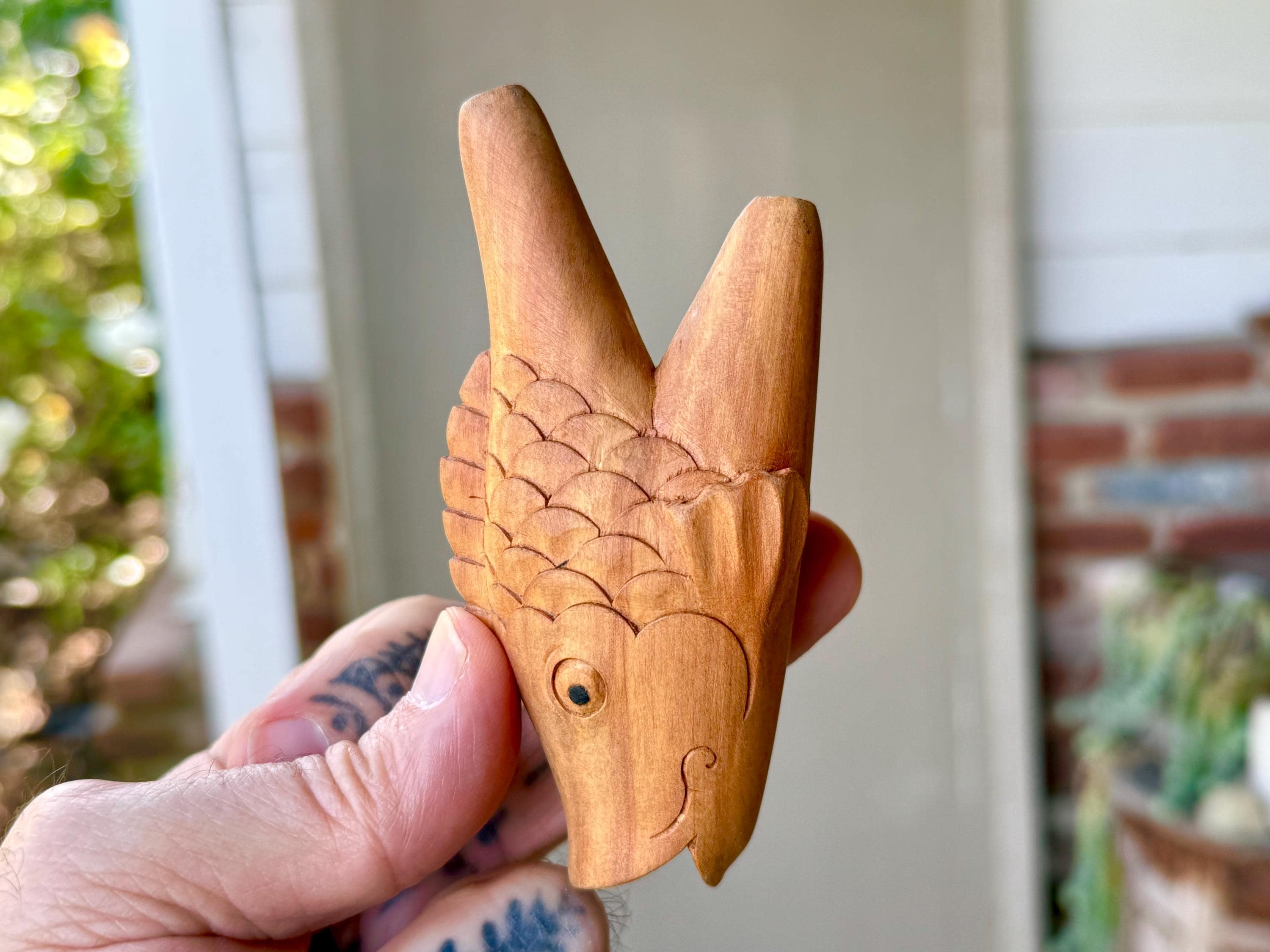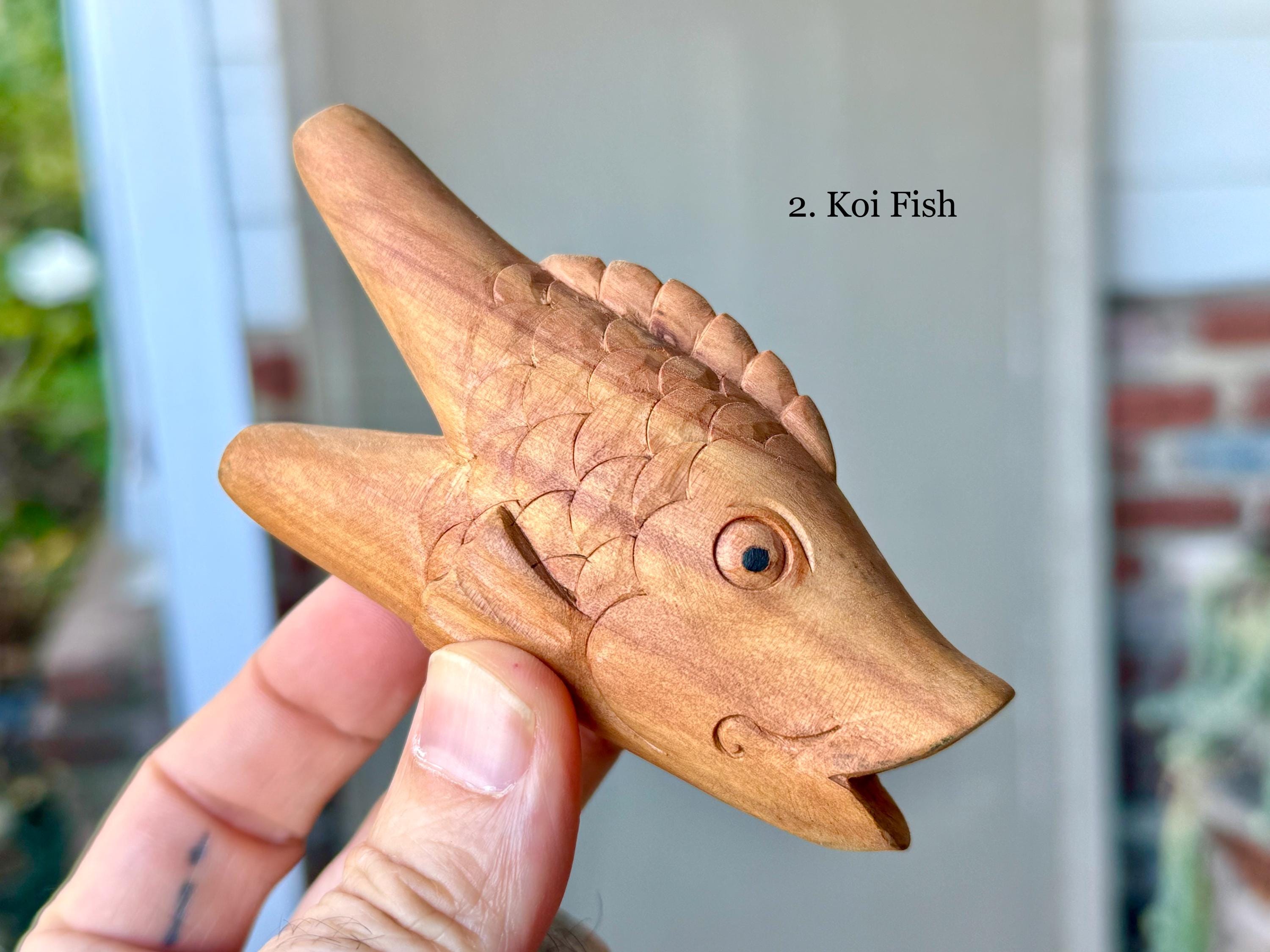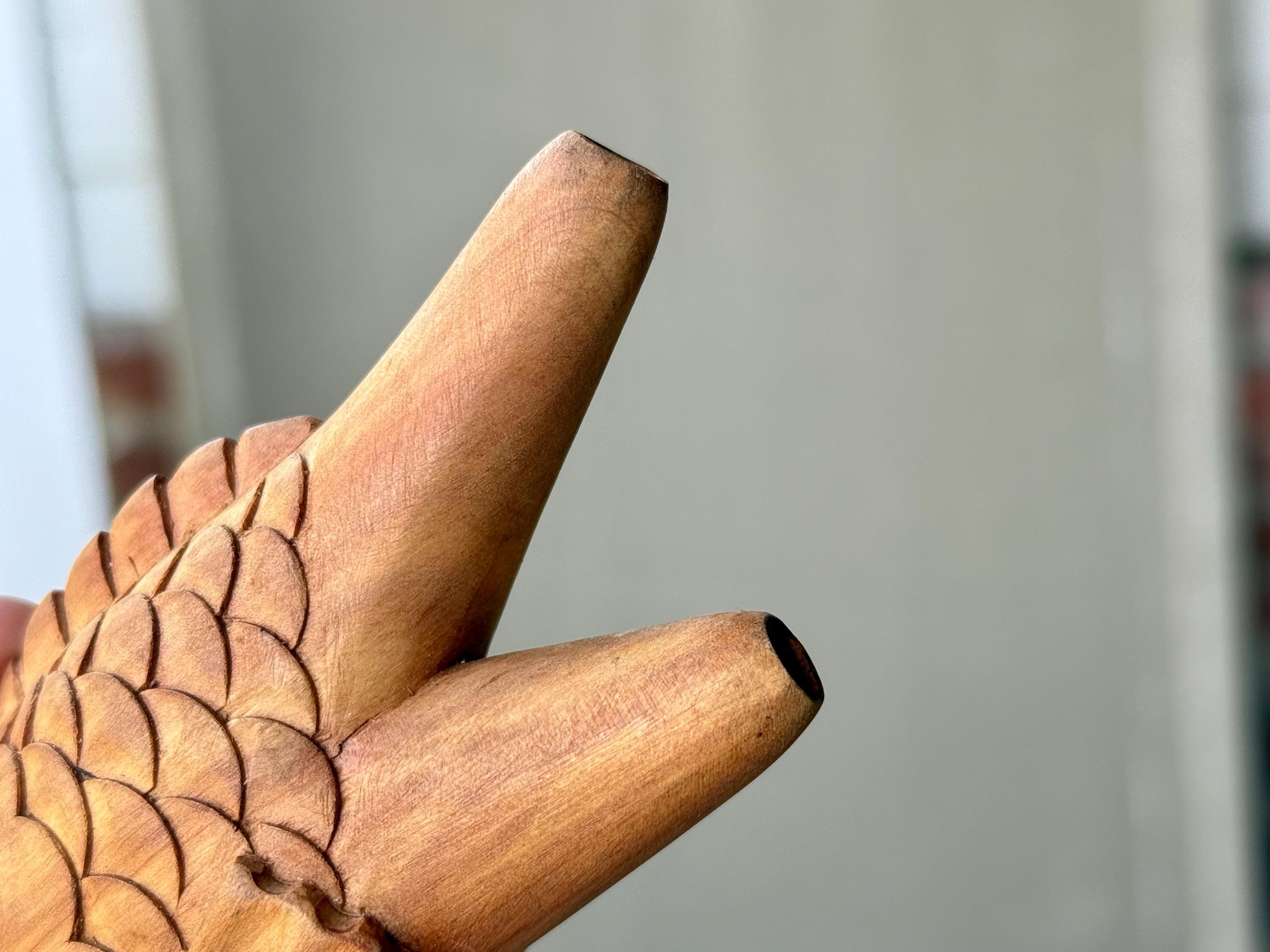 These adorable Fish Kuripes exhibit marvelous craftsmanship, with each scale carved by hand. The wood grain is warm and beautiful, and their functionality is excellent. Gorgeous tools for ceremony or home practice.