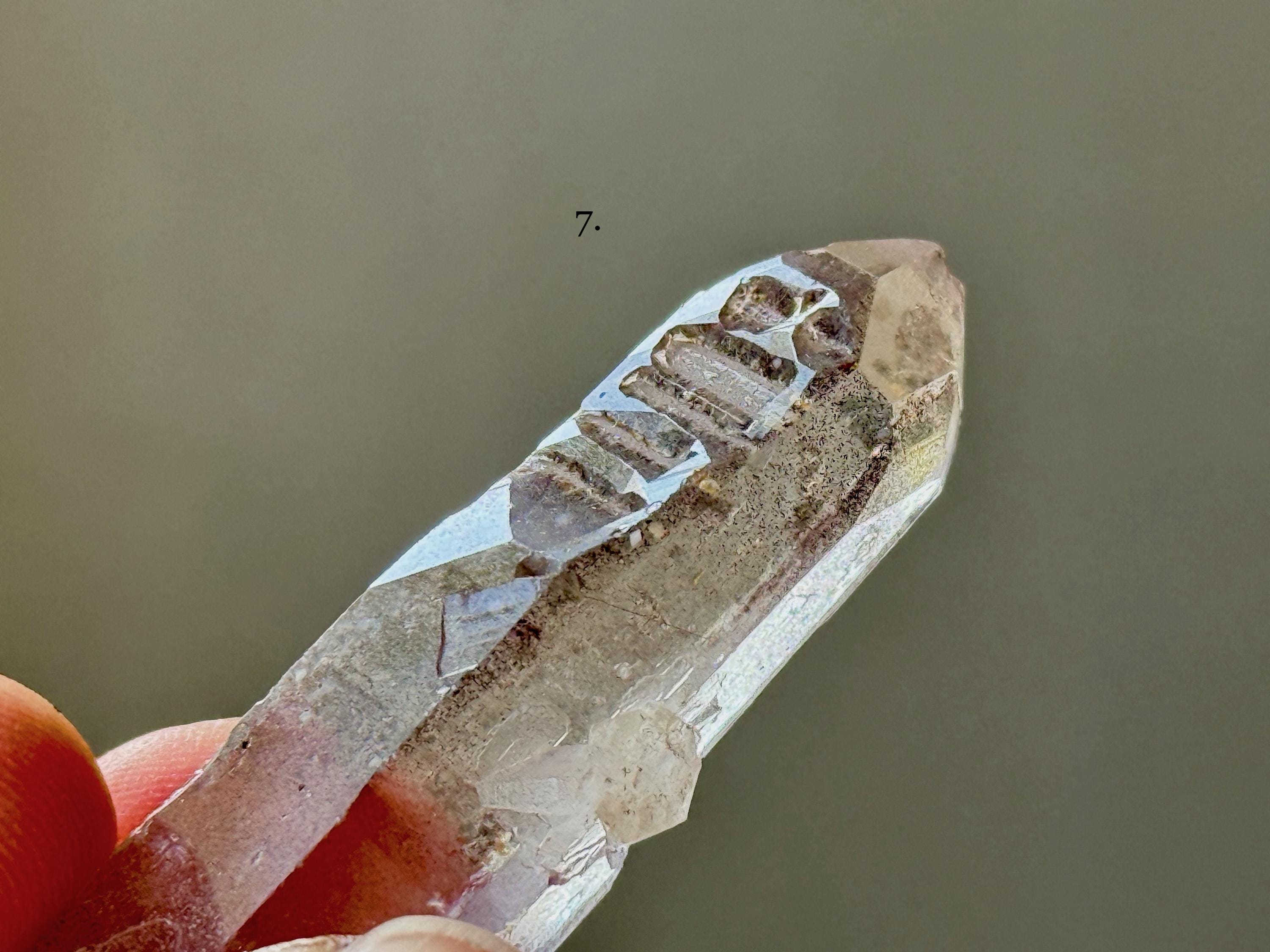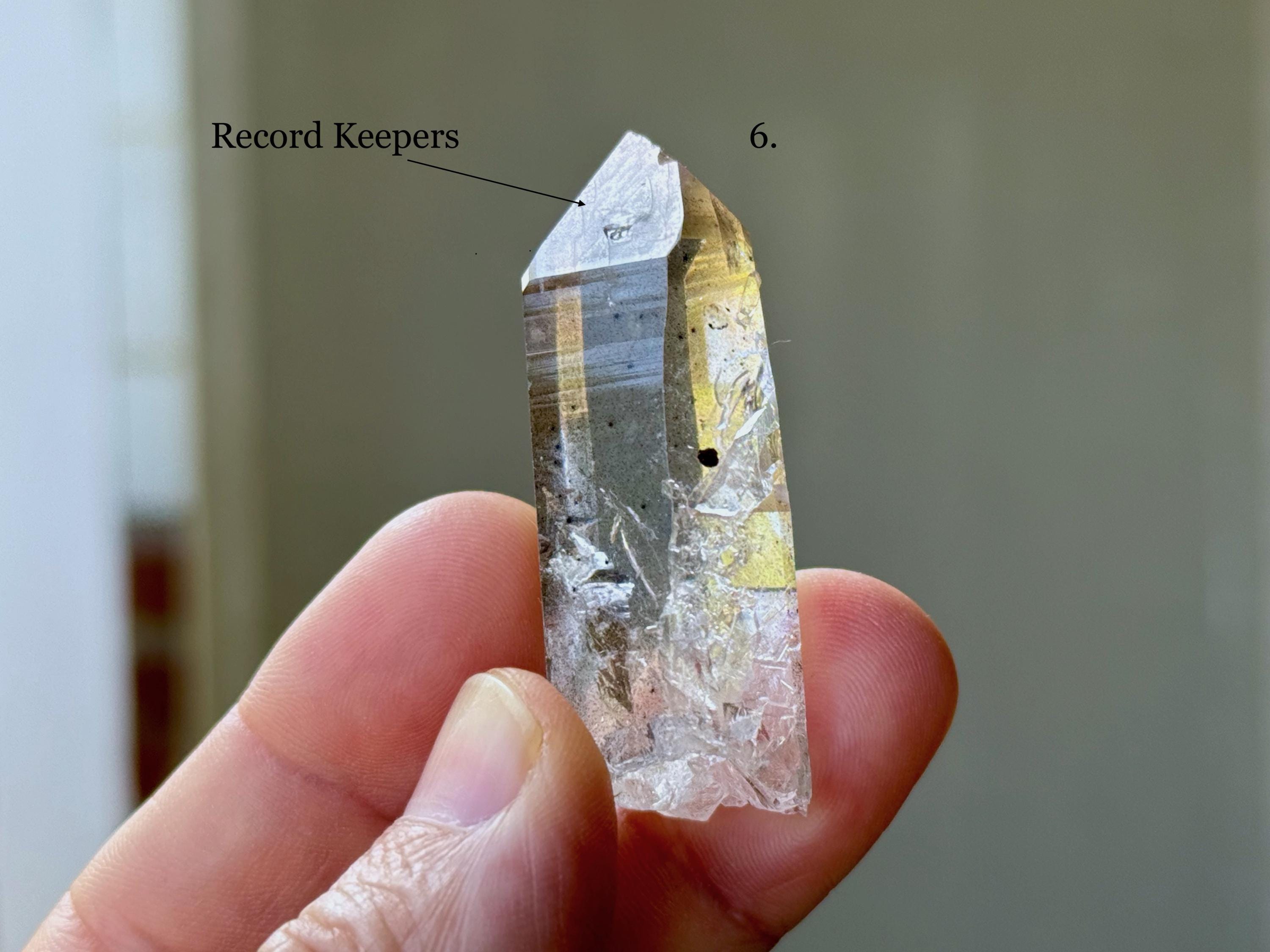 Water clear clarity, brilliant luster and deeply imprinted "glyphs" to each of these Sirian Starbrary Quartz. Some, though not all, have slightly rounded facets and/or extra facets. A few have Record Keepers, as indicated in the photos.